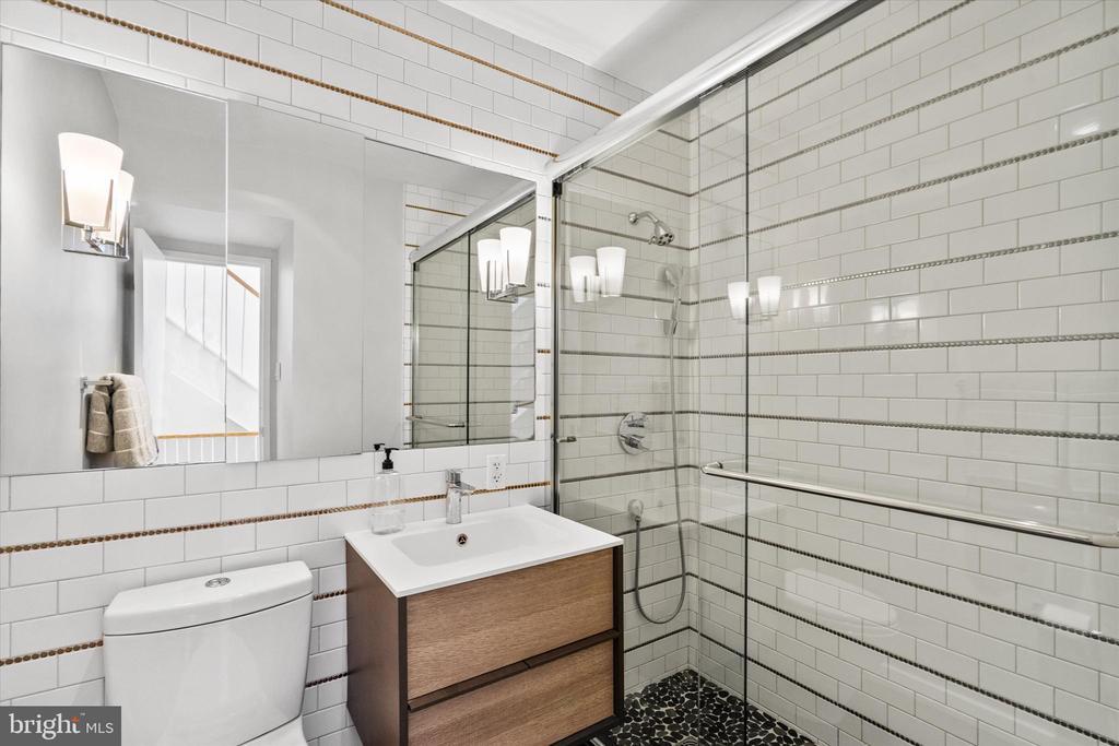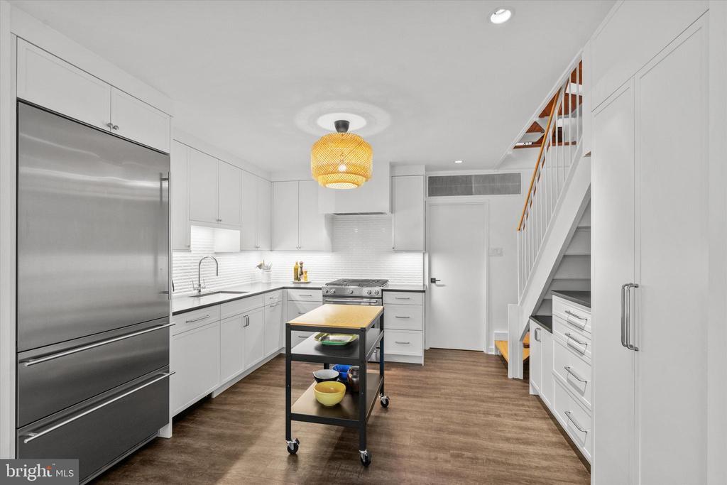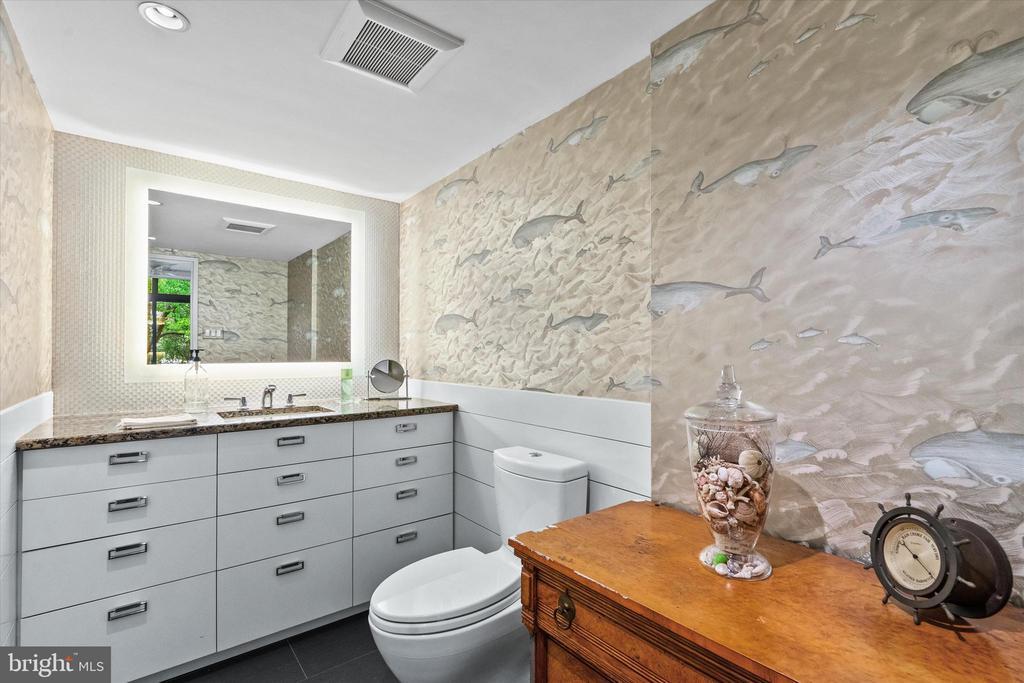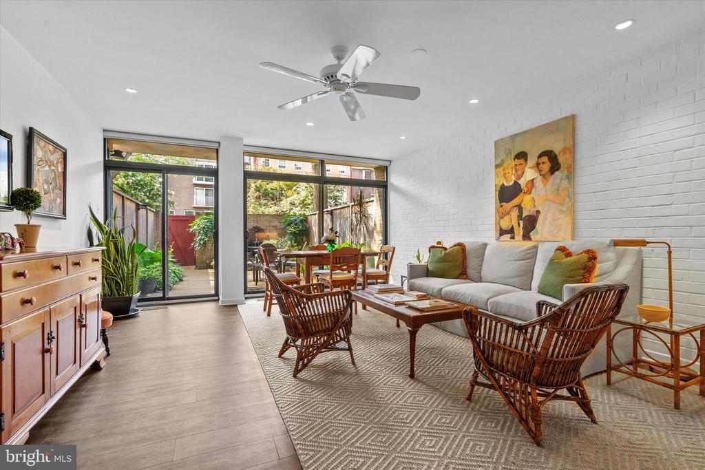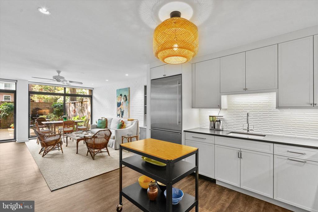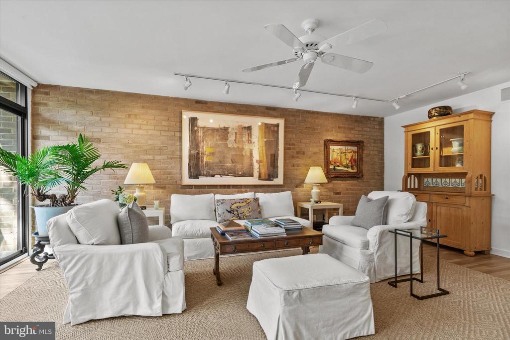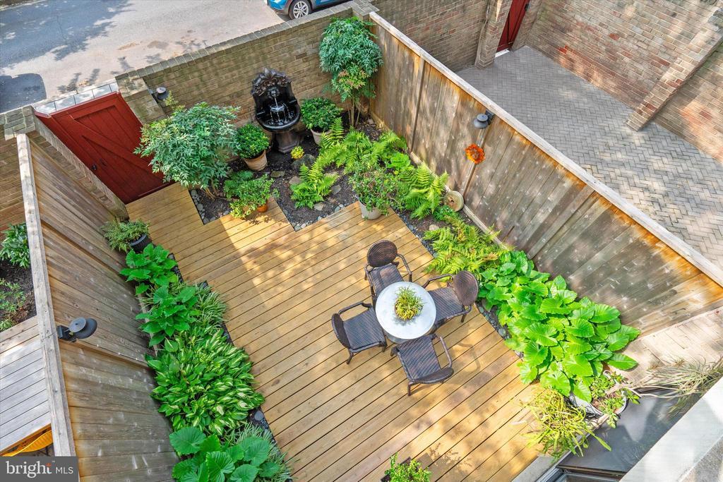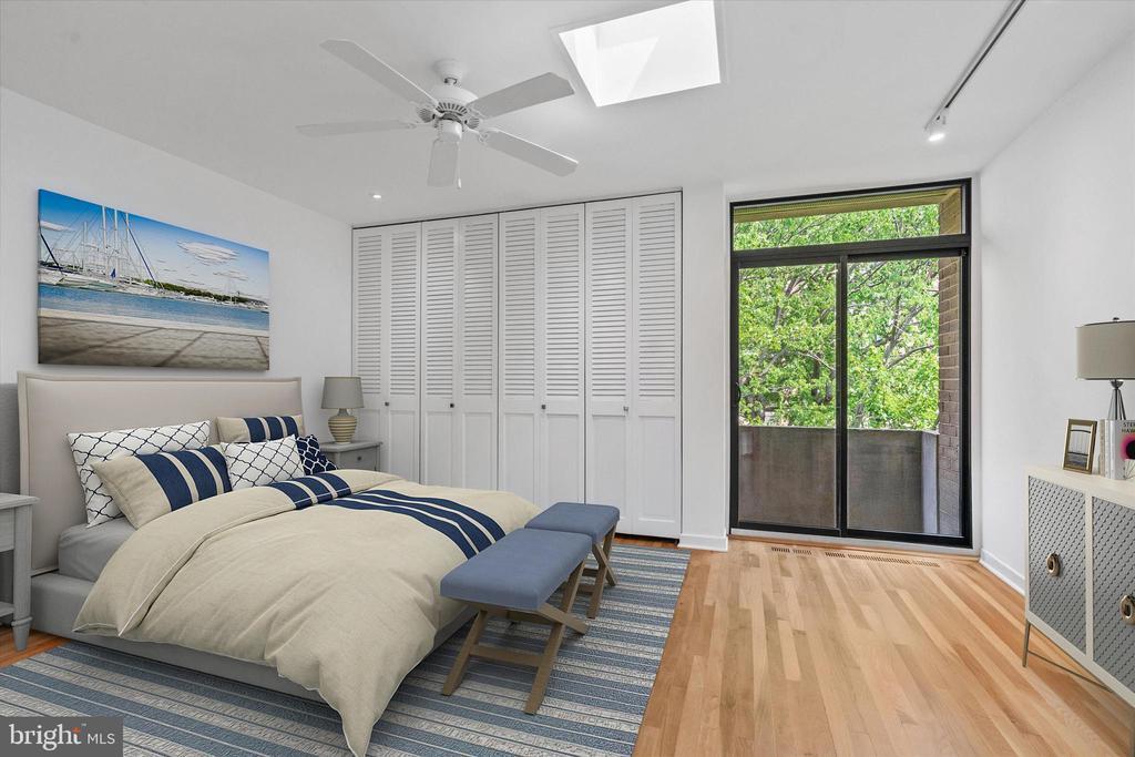 OUTSTANDING OPPORTUNITY! Rarely does this largest model Mid-Century Modern Tiber Island townhouse come available (there are only about a dozen), and this gem has been thoughtfully and thoroughly renovated from top to bottom by a professional designer. Four levels of pristine living space include multiple living areas, a den/office, four very generous bedrooms and three and one-half sparkling bathrooms. The kitchen offers leathered granite counters and premium appliances and opens to the family/dining room with views of the south-facing landscaped terrace with fountain. Every room has a balcony or terrace and the expanses of glass that are characteristic of MCM architecture. Tiber Island is listed on the District of Columbia Inventory of Historic Sites as well as the National Register of Historic Places due to its outstanding architecture and urban planning with its monumental plaza and numerous gardens. Just one-half block to parkland and Washington Channel. Metro and the vibrant Wharf with its many attractions are also very close by, yet the setting of 407 N St SW is tranquil and verdant. Condo fee includes exterior structural maintenance, water and sewer, Xfinity internet, cable & phone. One garage parking space. Community pool memberships available.