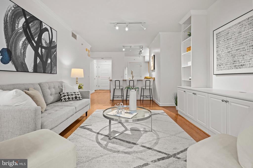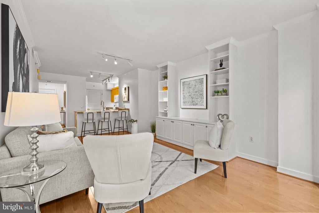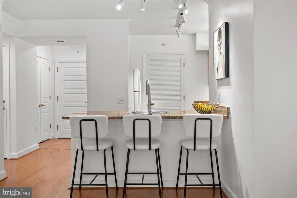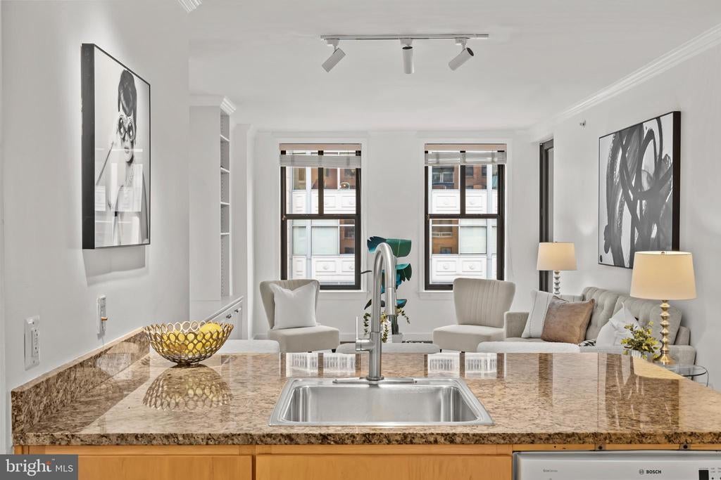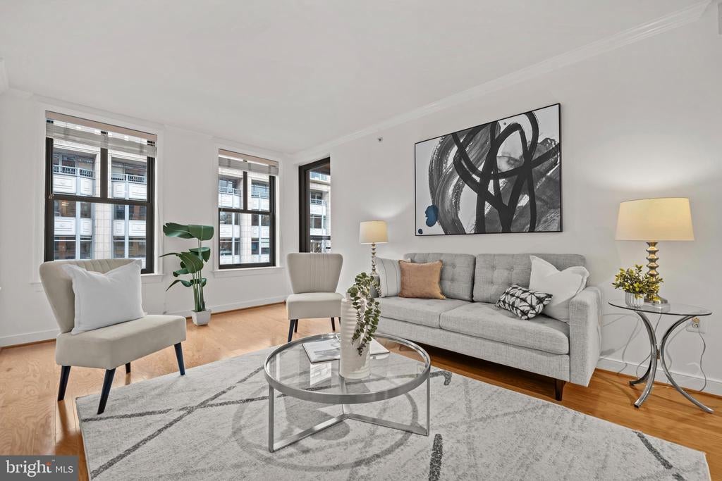 FOR SALE: Bright, South-Facing, 6th Floor, 1 Bedroom, 1 Bathroom, 1 Balcony Home is now For Sale. This home has Wall to Wall Wood Flooring and Granite Kitchen Countertops. THE BUILDING INCLUDES: A 24/7 concierge, a newly updated private twenty seat home theatre room, and in the basement there is a live professional performance theater (The Wholly Mammoth Theater), there are two fitness centers, a community room, a conference room, a library, a rooftop barbeque area with 2 gas grills, a rooftop garden, a quiet landscaped courtyard with an ornamental water fountain, a computer room with a laser printer, shredder, scanner, and high-speed Wi-Fi internet access throughout all the common areas. There is an underground 400 spot parking garage directly under the condo with direct elevator access to the home. Parking spots are available to rent for $285 per month and AVIS/BUDGET car rental agencies are located on the P1 garage level. There is also private resident storage available to rent on garage level P3. THE HOME IS LOCATED: in the vibrant Penn Quarter Neighborhood, with its many restaurants and bars, movie cinemas (E Street Theater & Regal 14) and Playhouses (Woolly Mammoth Theater, the Lansburgh Shakespeare Theater, and the Sidney Harmon Theater). The home is located within blocks of the National Mall, Smithsonian Museums (Air & Space, Natural History, American History, African American, Native American) and the National Galleries of Art (the Sculpture Garden, the Portrait Gallery, Modern Art, Hirschhorn Gallery, the Botanical Garden). The home is also close to Chinatown, and the Capital One Arena, and many Metro Stations and the 395 and 695 Underpasses for easy transit in and out of the city.