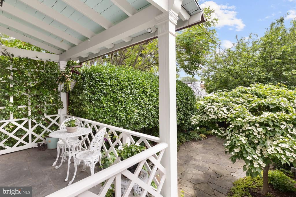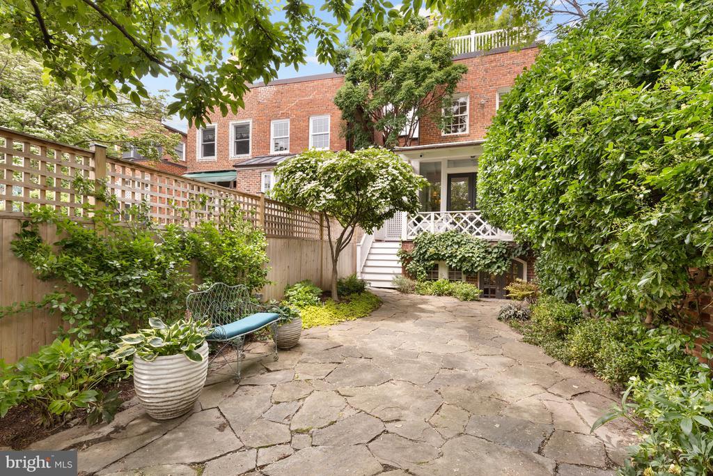 OPEN HOUSE CANCELLED. Beautifully Renovated and Maintained this Federal-Style home offers hardwood floors, large rooms, multiple decks overlooking a Lush Garden, Quaint Stone Terrace and Detached Two-Car Garage. Enter the Main Level through the deep Foyer opening to a spacious Living Room with Fireplace and Deck providing a cozy Outdoor Seating Area and access to the Garden below. Formal Dining and Renovated Gourmet Kitchen, Top-of-the-Line Appliances providing Filtered Water and a Breakfast Bar complete the Main Level. The Second Level features a large Primary Bedroom with En-Suite Bath, Second Bedroom, Full Bath and Custom-Built Office providing access to the Upper Level. The Top Floor, a roomy Loft-Style Studio/Bedroom, with Full Bath opening to large Roof Deck overlooking the Garden with views of the Village. The Lower Level provides a potential In-Law Suite with Kitchen Area, Separate Bedroom, large Laundry and Storage and two points of egress. Additionally, a sophisticated Security System provides cameras at both front and back entrances and the alley.