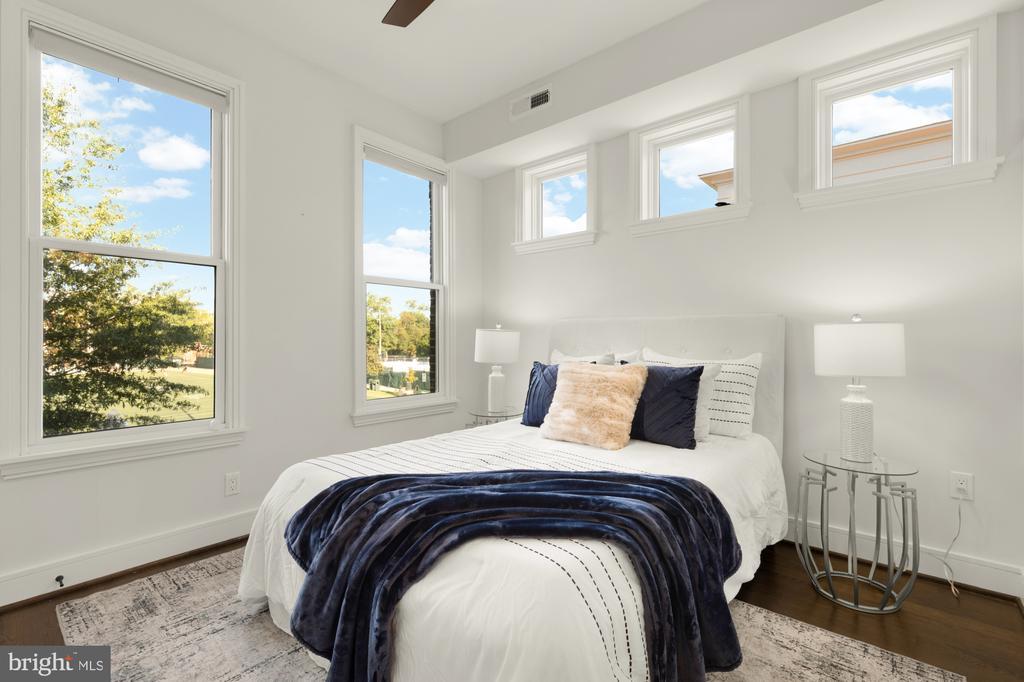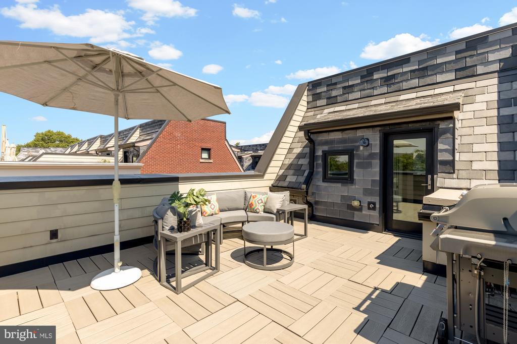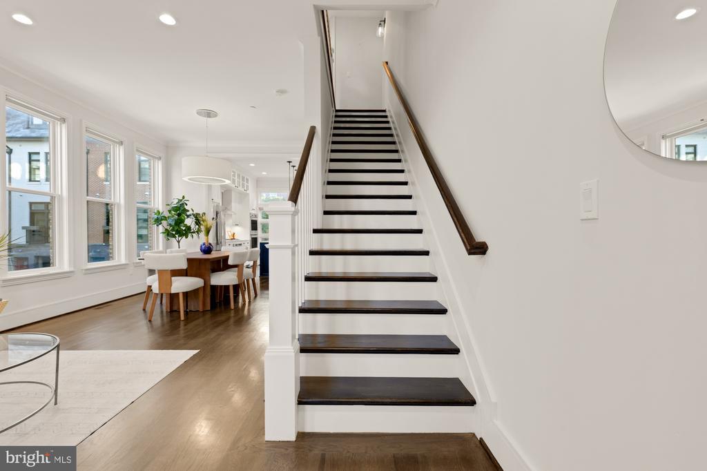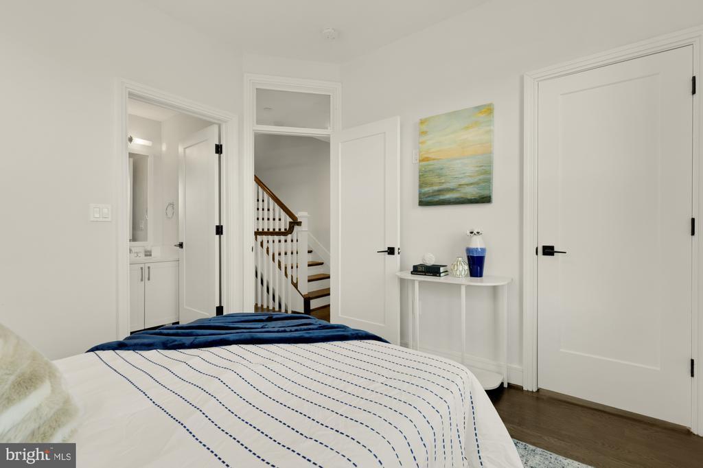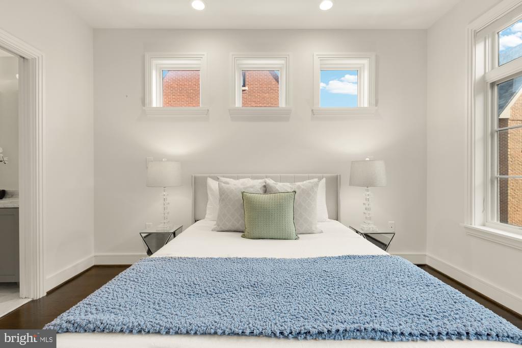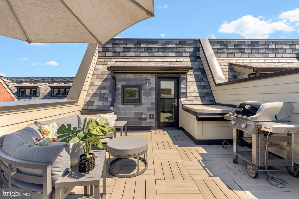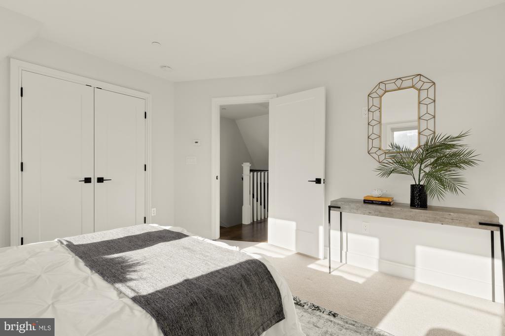 Designer End-Unit Townhome with Rooftop Capitol Views Welcome to 412 13th Street SE, a rare Buchanan Park residence blending modern tastes, timeless detail, and unbeatable proximity to Eastern Market and Barracks Row. Constructed in 2017 by McCullough Construction, LLC, with design excellence by Maurice Walters Architect Inc., this residence harmoniously combines quality materials and finishes with contemporary luxuries across four levels. Step inside to discover nearly 10-foot ceilings, oak hardwood floors, and refined crown molding, creating an atmosphere of timeless elegance. Oversized JELD-WEN wood windows allow natural light to pour into every corner and include motorized shades. The main level boasts an open-concept layout including a bright living area with a bonus bank of windows and space for a large dining room table and a powder room. This inviting space flows into a gourmet chef’s kitchen, equipped with Bosch & Thermador appliances, quartz countertops, and bespoke cabinetry, including a pantry. A generous island with seating and floor-to-ceiling windows with a Juliet balcony make this space ideal for both day-to-day living and entertaining. The upper floors feature 3 bedrooms with en-suite baths, adorned with Waterworks fixtures and marble finishes, ample closets complete with custom designed systems. A flexible den on the lower level and a full bath offers space that can adapt to a guest suite, media area, home office, or fitness room. Additional features include a spacious garage with ample storage. The home's expansive roof terrace is a charming tree-top retreat offering sweeping westward views of the U.S. Capitol, Library of Congress, and Watkins school’s sports fields. With a natural gas hookup and hose bib, this outdoor space is perfectly equipped for grilling, gardening, or enjoying a serene evening under the stars. The home's brick exterior, wrought iron-fenced yard, and landscaped grounds reflect the unified elegance of the Buchanan Park community. Ideally located just blocks from Safeway, Eastern Market, Lincoln Park, Trader Joe’s, The Roost, and the vibrant Barracks Row restaurant corridor, with the Potomac Ave and Eastern Market Metro stations mere minutes away — this is Capitol Hill living at its finest. Experience unparalleled luxury, convenience, and architectural excellence in this remarkable residence.