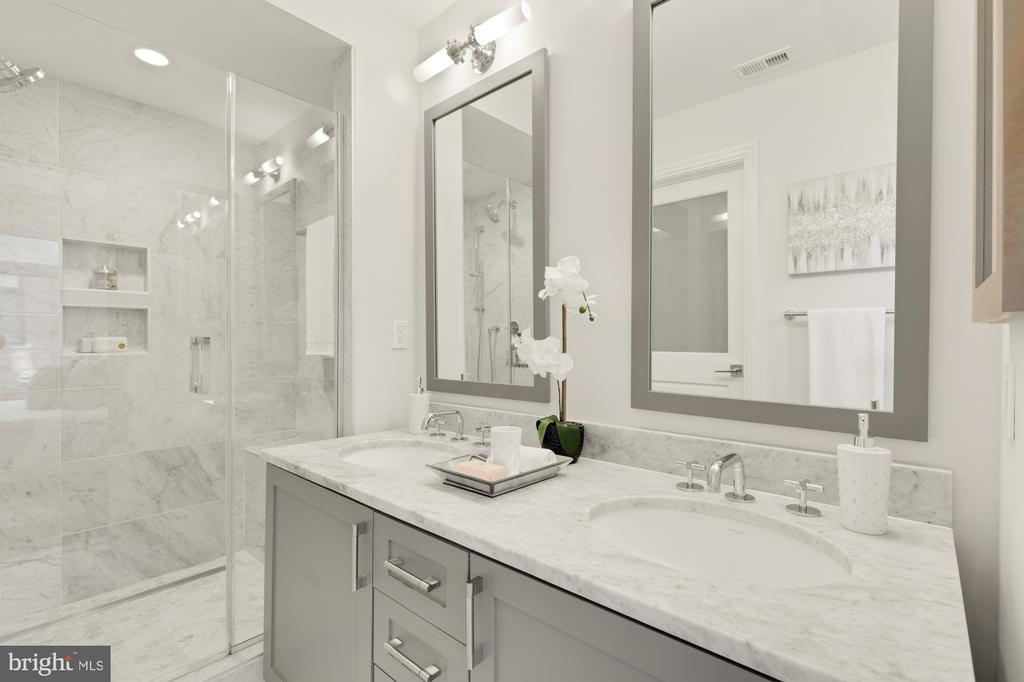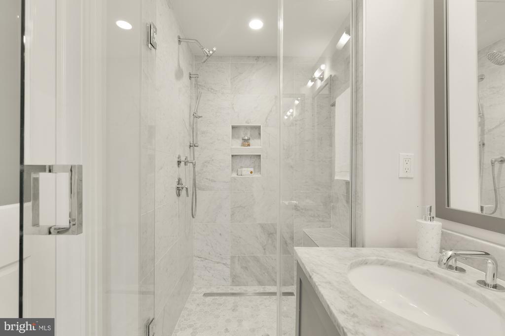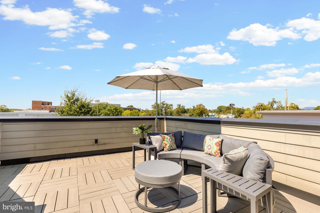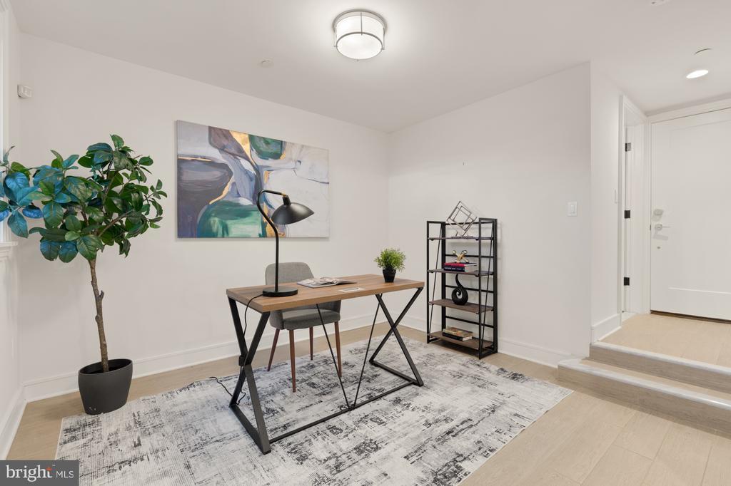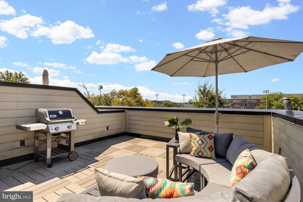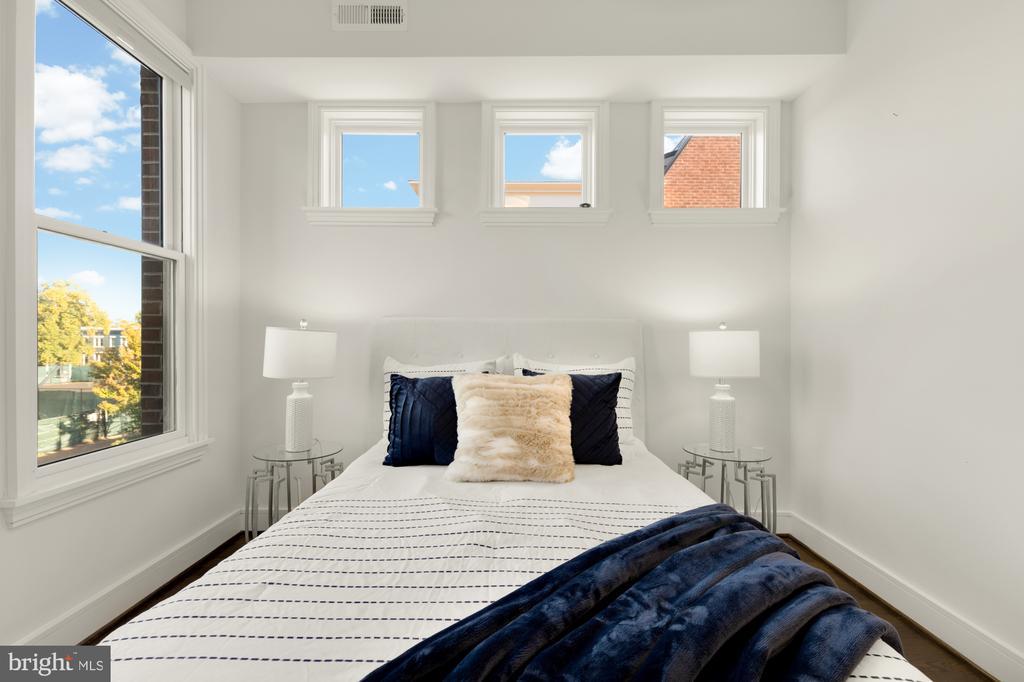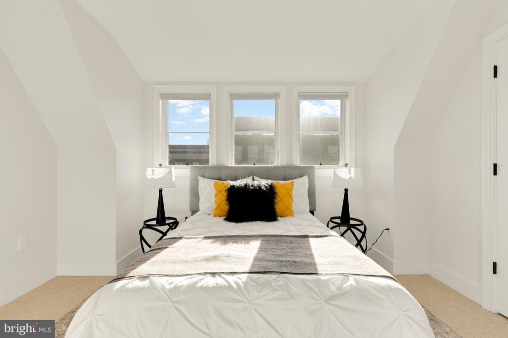 Designer End-Unit Townhome with Rooftop Capitol Views Welcome to 412 13th Street SE, a rare Buchanan Park residence blending modern tastes, timeless detail, and unbeatable proximity to Eastern Market and Barracks Row. Constructed in 2017 by McCullough Construction, LLC, with design excellence by Maurice Walters Architect Inc., this residence harmoniously combines quality materials and finishes with contemporary luxuries across four levels. Step inside to discover nearly 10-foot ceilings, oak hardwood floors, and refined crown molding, creating an atmosphere of timeless elegance. Oversized JELD-WEN wood windows allow natural light to pour into every corner and include motorized shades. The main level boasts an open-concept layout including a bright living area with a bonus bank of windows and space for a large dining room table and a powder room. This inviting space flows into a gourmet chef’s kitchen, equipped with Bosch & Thermador appliances, quartz countertops, and bespoke cabinetry, including a pantry. A generous island with seating and floor-to-ceiling windows with a Juliet balcony make this space ideal for both day-to-day living and entertaining. The upper floors feature 3 bedrooms with en-suite baths, adorned with Waterworks fixtures and marble finishes, ample closets complete with custom designed systems. A flexible den on the lower level and a full bath offers space that can adapt to a guest suite, media area, home office, or fitness room. Additional features include a spacious garage with ample storage. The home's expansive roof terrace is a charming tree-top retreat offering sweeping westward views of the U.S. Capitol, Library of Congress, and Watkins school’s sports fields. With a natural gas hookup and hose bib, this outdoor space is perfectly equipped for grilling, gardening, or enjoying a serene evening under the stars. The home's brick exterior, wrought iron-fenced yard, and landscaped grounds reflect the unified elegance of the Buchanan Park community. Ideally located just blocks from Safeway, Eastern Market, Lincoln Park, Trader Joe’s, The Roost, and the vibrant Barracks Row restaurant corridor, with the Potomac Ave and Eastern Market Metro stations mere minutes away — this is Capitol Hill living at its finest. Experience unparalleled luxury, convenience, and architectural excellence in this remarkable residence.