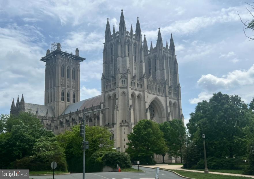 Perched on the top floor with unobstructed Cathedral views, this 2BD/2BA residence is a rare find directly across from the Bishop’s Garden, with plenty of rental parking available just across the street. Flooded with natural light, the home showcases gleaming hardwood floors, elegant crown molding, and custom wood shutters throughout. The bright living room flows into a cozy dining nook, while the refreshed kitchen features new tile flooring, added shelving, granite countertops, and abundant cabinetry. The spacious primary suite offers a renovated en-suite bath and walk-in closet, while the second bedroom—with its own en-suite bath and dual closets—provides comfort and flexibility for guests or a home office. Nestled in the building’s most private corner, with no neighbors above or beside, you’ll enjoy quiet living with every modern convenience at your fingertips. Right outside your door, Cathedral Commons places GIANT, Wegmans, CVS, and Starbucks within easy reach, alongside beloved dining destinations like Raku, 2Amys, Cactus Cantina, and Barcelona Wine Bar. The community itself is pet-friendly, offering a private dog park—a true rarity in DC—along with a picnic area, green spaces, grills, and a firepit for residents to enjoy. With secure bike storage, Metro bus and rail access nearby, and close proximity to Woodley Park, Glover Park, Tenleytown, AU, and Georgetown, you’ll have the best of the city and its surrounding neighborhoods at your doorstep. Condo fee includes all utilities except electricity. Please note: the building does not have an elevator.