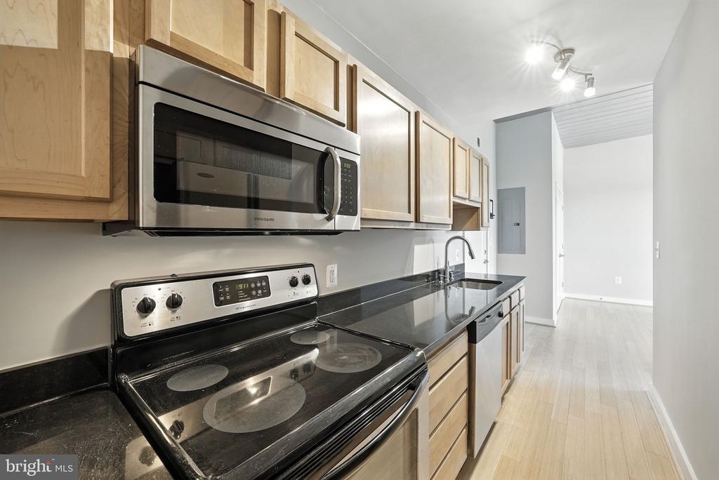 Step into this bright and modern 1BR/1BA condo in the vibrant and growing Brightwood neighborhood. Designed with an industrial-chic loft aesthetic, this home features 10-foot ceilings, large windows, and sweeping views of downtown DC, filling the space with natural light and energy. Enjoy sleek bamboo floors, an open-concept living and dining area, and a modern kitchen with stainless steel appliances and black stone countertops, perfect for cooking, entertaining, or relaxing at home. The spacious bedroom offers plush carpeting, a generous walk-in closet, and a peaceful retreat. The spa-inspired bath features Italian marble, a deep soaking tub, and a wide vanity. An in-unit washer and dryer adds everyday convenience. Head to the expansive rooftop terrace to take in panoramic views, including the Washington Monument and Virginia skyline. It’s the perfect place to enjoy your morning coffee, sunset views, or DC’s fireworks. The Lofts at Brightwood is a secure, well-maintained building with a modern lobby, elevator, package concierge, and shared rooftop spaces. Just steps from grocery stores, restaurants, and retail, and two blocks from Rock Creek Park, with easy access to Silver Spring and downtown DC, this home offers the best of both city living and neighborhood charm. *There is a monthly special assessment of $650. Seller will pay the remaining balance of this assessment in full at closing (per the terms of the sales contract). Once paid, the buyer’s monthly HOA fee will be reduced accordingly.