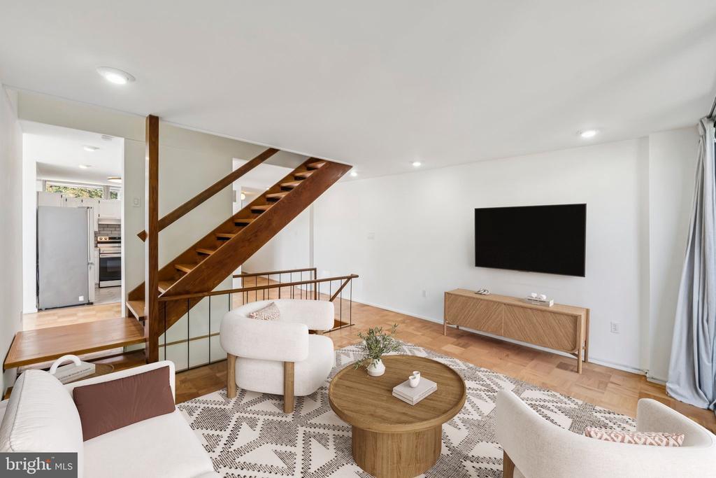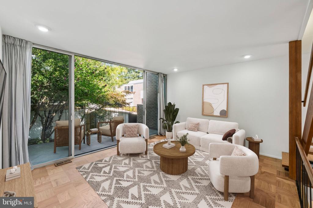 This beautifully maintained barrel-roof END UNIT townhome offers a three-level, three-bedroom + bonus room, and two-bath oasis in the celebrated River Park community of Southwest DC. Designed by Charles Goodman, the residence showcases his signature mid-century modern style while blending seamlessly with modern updates. Inside, the main level features an open and airy layout with expansive windows that fill the space with natural light. Well-kept wood floors flow throughout, creating warmth and continuity. The updated kitchen includes modern finishes and appliances, while both bathrooms have also been renovated with clean, contemporary design. Upstairs, two spacious bedrooms provide comfort and flexibility with an abundance of natural light from the extra high barrel roof ceilings, while the lower level features a third bedroom plus a versatile bonus room — perfect for a den, home office, gym, or creative studio — along with additional storage. Step outside to your private backyard retreat, framed by lush greenery and multiple seating areas that make it easy to relax or entertain outdoors. As a member of River Park, you’ll enjoy a host of amenities, including an outdoor pool, fitness center, playground, picnic areas, and 24/7 front desk services, all within an 11-acre gated community. The co-op structure simplifies ownership by covering most utilities and maintenance, combining the benefits of a house with the convenience of condo living. Ideally located just blocks from The Wharf, Safeway, Waterfront Metro, Nationals Park, and Arena Stage, this home offers quick access to dining, entertainment, and major commuter routes. A move-in ready end-unit home with updated finishes, generous light, and private outdoor space — this River Park townhome checks every box. Schedule a tour today! BREAKDOWN OF MONTHLY FEES: Seller's TOTAL monthly payment to River Park is $3,374.03. The breakdown is: - The monthly co-op fee ("carrying charges") is $1,692.27 / month. This covers taxes, heating, cooling, water (hot and cold), sewage, trash disposal, groundskeeping, and maintenance of the standard features of the unit. It does not include electricity for the unit. - In addition to the regular monthly fees there is a special assessment charge which is $1,295.76 / month. - Underlying mortgage is $201/month. The underlying mortgage will be paid off at the end of this year. - The current fee for parking is $185/month