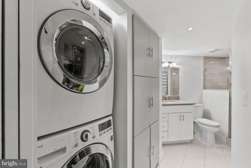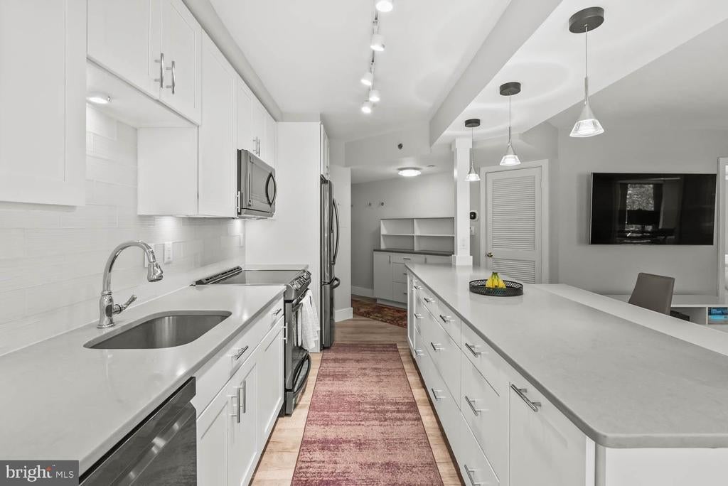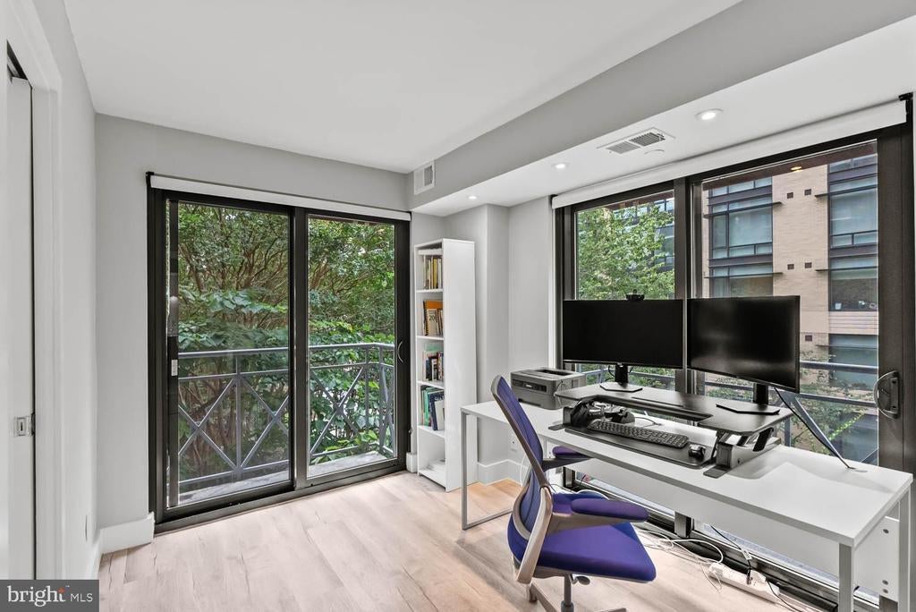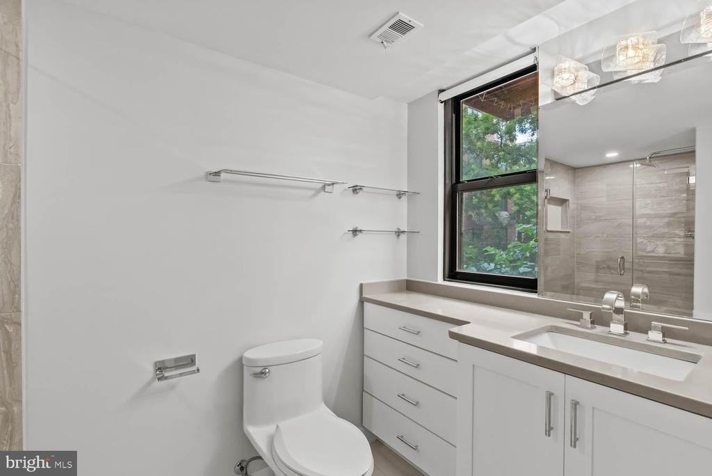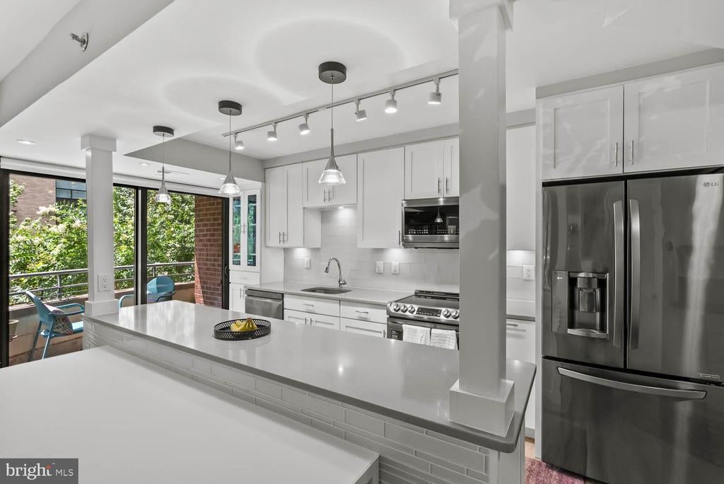 Welcome to this Completely Renovated, Sun-Lit Corner Unit | 2 Bed | 2 Bath | 806 SF | Multiple Private Balconies w/ Courtyard & Garden Views | Limited Rental Parking Available. Unit Highlights & Recent Updates Include: a full to-the-studs renovation completed in 2018, southern & eastern exposures, a walk-through kitchen with quartz countertops, white shaker cabinets, polished chrome hardware, subway glass tile backsplash, stainless steel LG appliances, and a large island w/ pendant lighting, ample custom storage throughout the unit, recessed lighting, exposed oak luxury vinyl plank flooring, a spacious primary suite w/ ensuite bath, heated towel rack, frameless glass enclosed shower w/ storage niche, and a large walk-in closet, a smaller secondary bedroom ideal for an office or nursery with an ensuite bath featuring an expanded walk-in shower, and an oversized vanity with lots of storage, full-size LG washer & dryer, Shade Store window treatments, freshly painted in 2025, and a new Carrier HVAC system installed in 2024. Building Amenities Include: a large outdoor courtyard w/ a heated pool & patio grills, full access to the secret park, 2 elevators, garage parking, bike storage, part-time concierge, and professional on-site management & maintenance. With a Walk Score of 99, you're just steps from restaurants, shops, parks, metro stations, and more! With plenty of room to spread out inside and everything you need outside your door, this move-in ready condo checks all the boxes for comfort, convenience, and location.