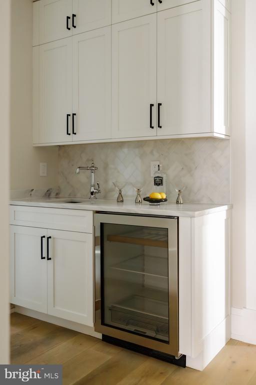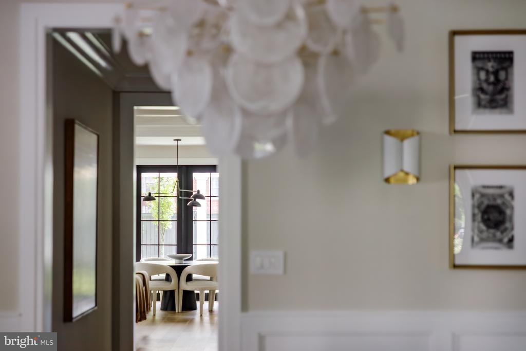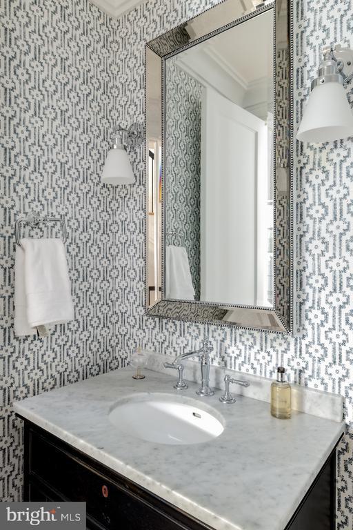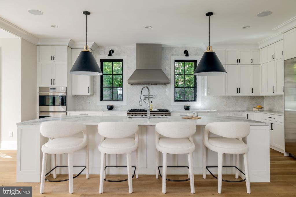 Set against the iconic backdrop of the National Cathedral in the heart of verdant Cathedral Heights, 3117 38th Street NW is a masterfully crafted modern farmhouse designed by GTM Architects in collaboration with MMg Development and built by Murillo/Malnati Homes. This distinguished team partnered with acclaimed landscape designer Lila Fendrick to deliver a residence that marries high design with luxurious livability, showcasing top-tier craftsmanship, seamless indoor-outdoor flow, and enduring style. Completed in 2019, the home spans nearly 8,000 finished square feet across four thoughtfully designed levels. A white brick faade, black-trimmed windows, flagstone walkways, and manicured landscaping create timeless curb appeal. The front portico opens to a gracious foyer with sightlines that extend to the rear terrace, setting a tone of openness and elegance. Crown moldings, gleaming hardwood floors, and abundant natural light provide a sophisticated yet welcoming atmosphere. The formal living room, with a gas fireplace and custom built-ins, overlooks the front garden. A tray ceiling and wainscoting in the adjacent dining room elevate formal gatherings. A marble-clad butler’s pantry with a beverage fridge connects seamlessly to the chef’s kitchen, which features custom stacked cabinetry, Wolf and Sub-Zero appliances, a full-height marble herringbone backsplash, and an expansive island with bar seating. The open-concept kitchen and adjoining family room serve as the heart of the home. Coffered ceilings, a marble fireplace, and dual sets of French doors open to a flagstone terrace beneath a full-width pergola, perfect for indoor-outdoor entertaining and framed by views of the Cathedral. Additional main-level features include a custom mudroom with built-in cubbies and side entry, access to a detached two-car garage with EV hookup, and a large walk-in pantry. A powder room and elevator complete this level. Upstairs, the primary suite occupies its own wing and includes a private rear deck with cathedral views. The spa-inspired primary bath features radiant heated marble floors, a freestanding soaking tub, a glass-enclosed shower, a wall-spanning double vanity, and a private water closet. A custom dressing room with golden backlit shelving and abundant storage completes the suite. Three additional bedrooms, one currently used as a home office, share two full bathrooms along with a large, fully equipped laundry room. The third level offers flexible living with two additional bedrooms, one styled as a game room with alcove seating, and a full bath. This space is ideal for guests, teens, or creative pursuits. The finished lower level includes high ceilings, a recreation room with integrated Sonos sound, a wet bar with a Sub-Zero beverage fridge, a custom wine room, a fitness studio, a powder room, and a second laundry area. A private guest or au pair suite features a kitchenette, bedroom, and full bath. Smart home systems include Legrand lighting, Honeywell Pro Series thermostats, integrated security with cameras and motion sensors, and multiple wall-mounted iPads for controlling lighting, sound, and surveillance. Outdoors, a flat, professionally landscaped lawn is pool-ready and features a built-in grilling station, an extensive stone terrace, ambient lighting, irrigation, and French drainage systems for year-round enjoyment. Steps from Massachusetts and Wisconsin Avenues, this premier location offers proximity to top-rated schools, lush parkland, and downtown DC. Elegant yet approachable, richly appointed yet supremely functional, 3117 38th Street NW is a rare offering that defines modern luxury living in Washington.