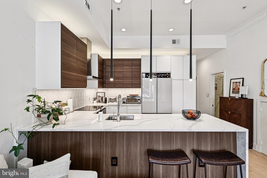 1328 Maryland Ave NE #2 offers the perfect blend of modern design and city convenience. This 2-bedroom, 2 full bathroom condo with secure, assigned secure parking has been thoughtfully designed for both comfort and style. Natural light pours through oversized windows into the open living and dining area, highlighting the high ceilings and inviting layout. The sleek kitchen is a showstopper with stone counters, custom cabinetry, a bold black tile backsplash, commercial-grade vent hood, and a gas range that makes cooking a joy. The two bedrooms provide flexible living options. One includes a full wall of custom built-ins, ideal for a home office or reading nook, while the other serves as a peaceful retreat. Convenience is built in with a full-size washer and dryer, secure gated parking large enough for an SUV, and a security system for peace of mind. Located where Capitol Hill meets the vibrant H Street Corridor, you will be surrounded by neighborhood favorites for dining, shopping, and nightlife, with easy access to parks and transit. This is a home that truly checks every box—style, functionality, and location.