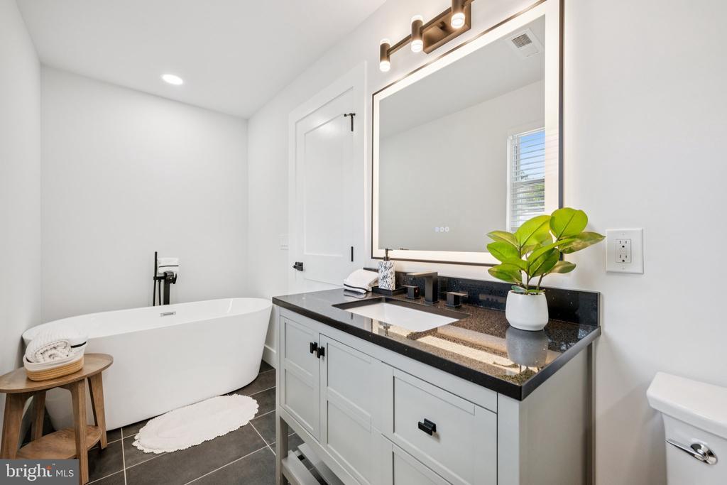 Welcome to 4928 Astor Pl SE, a stunning new construction home offering 6 bedrooms and 5 full bathrooms across three finished levels. The main level features spacious living and dining areas with high ceilings, along with a bedroom and full bath. The gourmet kitchen is the heart of the home, showcasing a roomy island with bar seating, quartz countertops, and stainless steel appliances. Upstairs, you’ll find 4 bedrooms and 3 full baths, highlighted by a luxurious primary suite with vaulted ceilings, a large walk-in closet, and a spa-inspired bathroom complete with a soaking tub and separate shower. All bathrooms throughout the home feature modern, sleek finishes with tasteful design. A fully finished basement with both private exterior access and interior access offers additional living space with another bedroom and full bath. The home also includes a one-car garage with interior access, extra driveway parking, and a large fenced yard that provides privacy and plenty of room for outdoor entertaining, gardening, or play. This location offers excellent convenience with easy access to public transportation, including the Benning Road Metro Station, and major commuter routes like I-295 and Pennsylvania Avenue SE. Just minutes away are Fort Dupont Park with its trails and recreation, the Skyland Town Center with grocery, retail, and dining options, and the Anacostia Riverwalk Trail for biking and outdoor activities. Downtown DC, Navy Yard, and Capitol Hill are also nearby, providing endless options for shopping, dining, and entertainment. This home combines modern living, functional spaces, and a prime DC location, making it an outstanding opportunity!