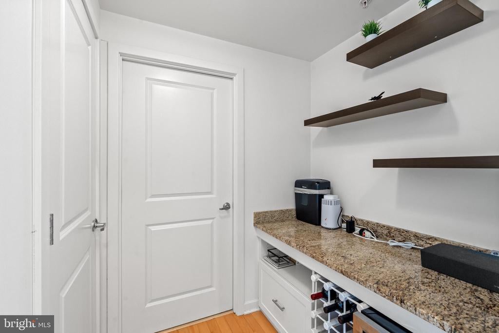 Welcome to Unit 1128 at The K at City Vista! This gorgeous condo is beautifully renovated, with an abundance of natural light and full of features: floor to ceiling windows, a butler's pantry, hardwood flooring throughout, and a Juliet balcony off the living area which overlooks a beautiful courtyard and unobstructed, soaring views of the city. The kitchen features an abundance of dark, modern flat front cabinets, granite counters, stainless-steel appliances, gas cooking, and an island with space for 2 people. The butler's pantry features granite counters, shelving, an 18-bottle wood wine rack, and a wine fridge. There is a spacious bedroom with two closets, including one large walk-in closet with custom built-in shelving, and an en-suite bathroom with a shower/soaking tub combo. The bedroom also has a nicely sized bump-out, which is perfect for personal exercise equipment or an armoire. There is also a stacked washer and dryer unit in the condo. There is one deeded garage parking space included with this condo and an extra storage unit located on G3. There are a number of amenities in this building including a luxurious rooftop pool and spa, 24-7 concierge, a resident lounge, library, courtyard, bike storage, and on-site management. Located in the heart of Mt. Vernon Triangle, The K at City Vista is convenient to all of the amazing restaurants in the neighborhood like Mandu, Ottoman Taverna, Baan Siam, Cucina Morini, Busboys & Poets, dLena, and Bar Chinois. You are also not a far walk to Penn Quarter, where you can enjoy dinner at Fiola, Rasika or Moon Rabbit, and then go for a long stroll along the Mall or Pennsylvania Avenue. Vida Fitness is in the building! One of the things that is so special about Mount Vernon Triangle is that it is convenient to all of the surrounding neighborhoods so you can spend your time bouncing from neighborhood to neighborhood and never run out of things to do. You are also a short walk to the Apple Store. Don't forget to check out the Mount Vernon Triangle Farmers Market on Saturdays. After a visit to the market, you can take a walk to Dolcezza at City Center for some delicious gelato to cool off and do some great shopping at all of the stores Downtown and at City Center. You are also centrally located to several Metro stops along the Red, Yellow, and Green Lines, which makes getting around the city easy and stress free. Checkout this home and neighborhood and love where you live! Condo fee includes Gas, sewer, water, trash, and snow removal. Condo is FHA and VA approved. Pets: 2 pets allowed, dog, cat, caged bird.