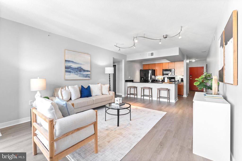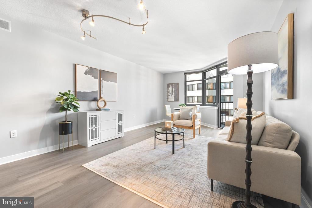 Modern City Living in Mount Vernon Triangle! Step into this spacious 818 sq. ft. one-bedroom condo with a sleek, open floor plan and brand-new flooring throughout. The oversized kitchen peninsula with granite countertops, white cabinets, and gas cooking makes this home perfect for entertaining, while the in-unit washer/dryer adds everyday convenience. The bedroom retreat features a generous walk-in closet, and the bathroom offers a soothing soaking tub. Enjoy fresh air on your private balcony or head upstairs to the rooftop terrace with grills and sweeping panoramic city views. Additional highlights include: Garage parking (space #83), Concierge service, Fitness center, and Pet-friendly community. Nestled on tree-lined streets in the highly walkable Quincy Court, you’re just steps from Metro, dining, shopping, and all the vibrance of downtown DC. This is more than a condo—it’s a lifestyle.