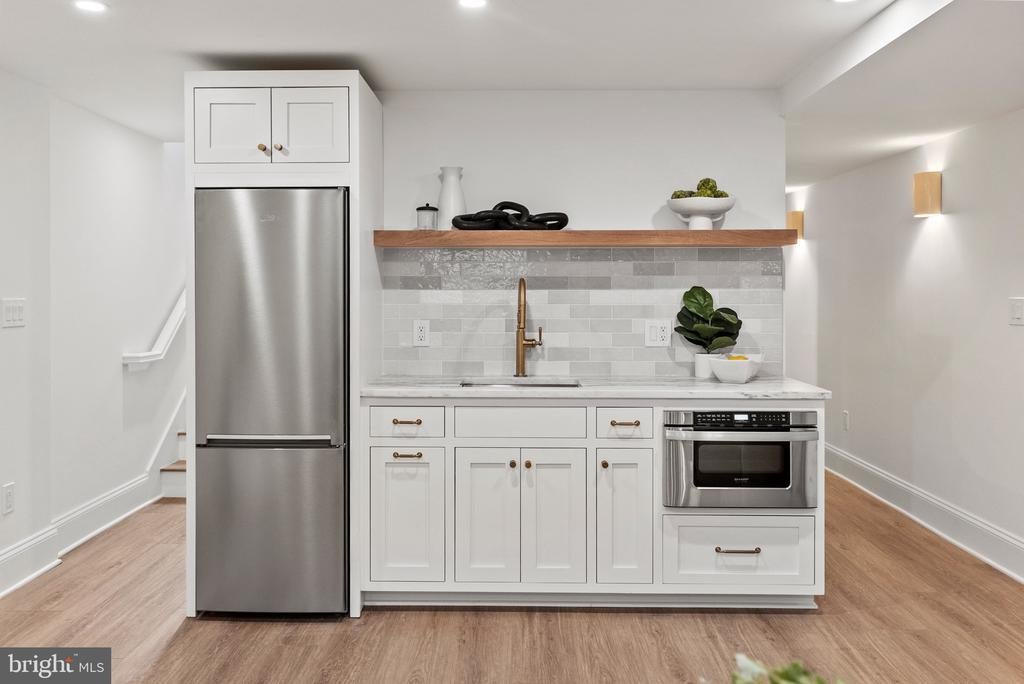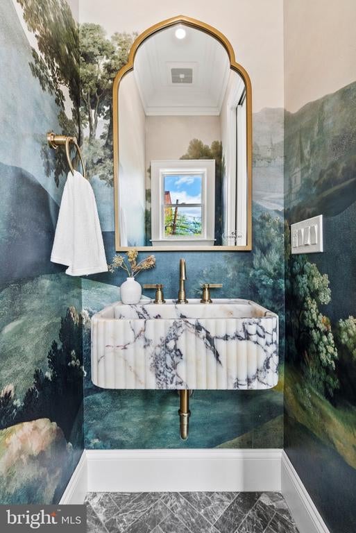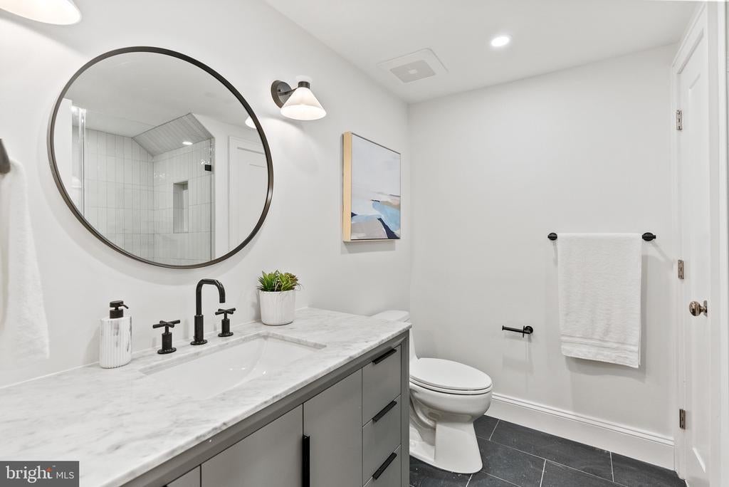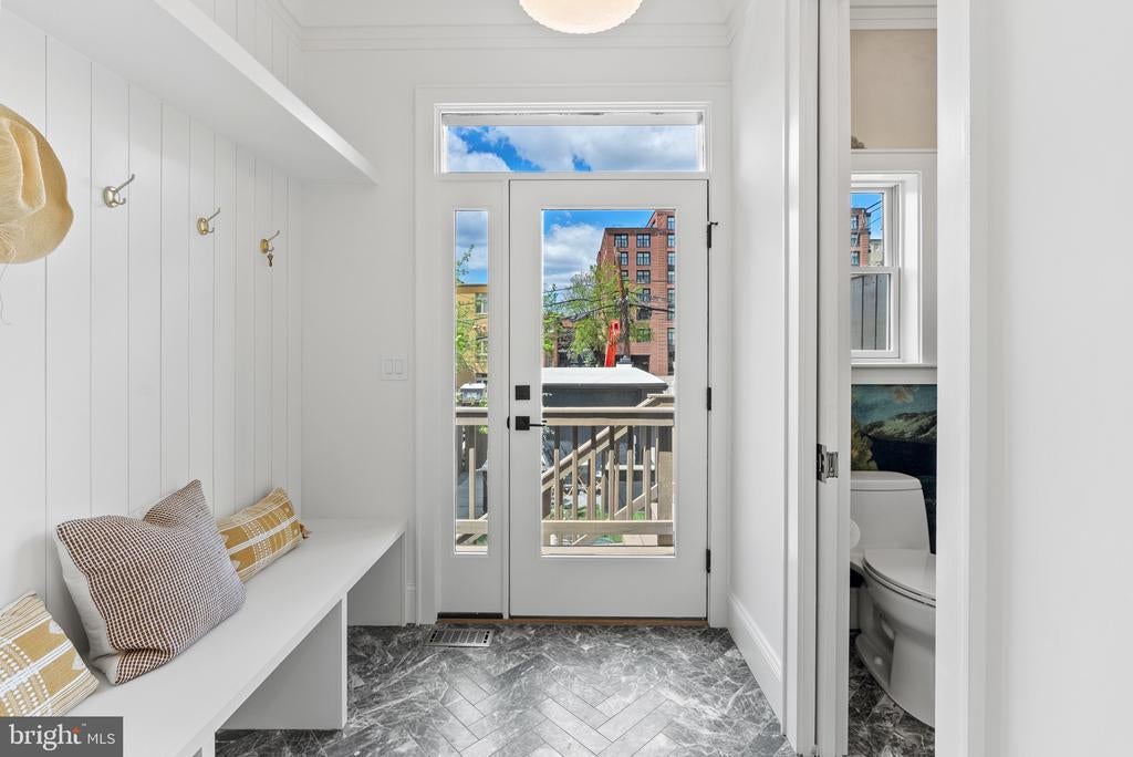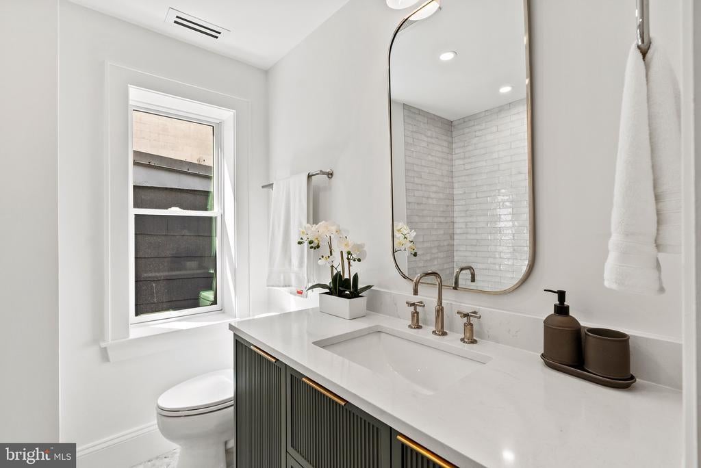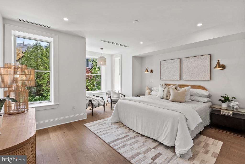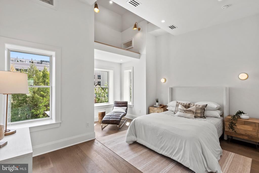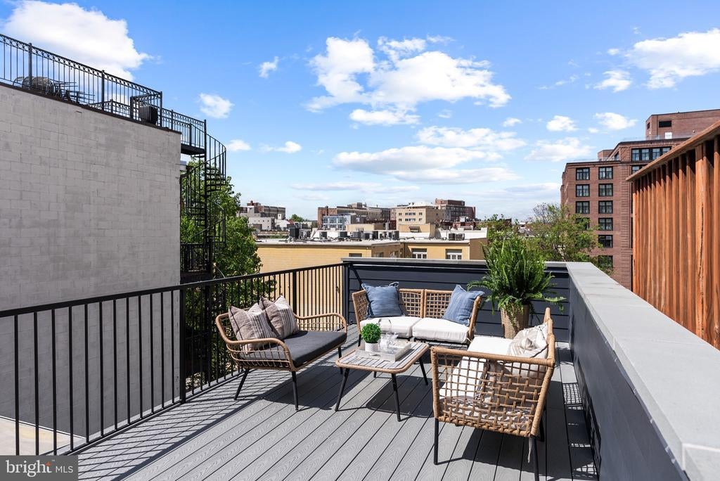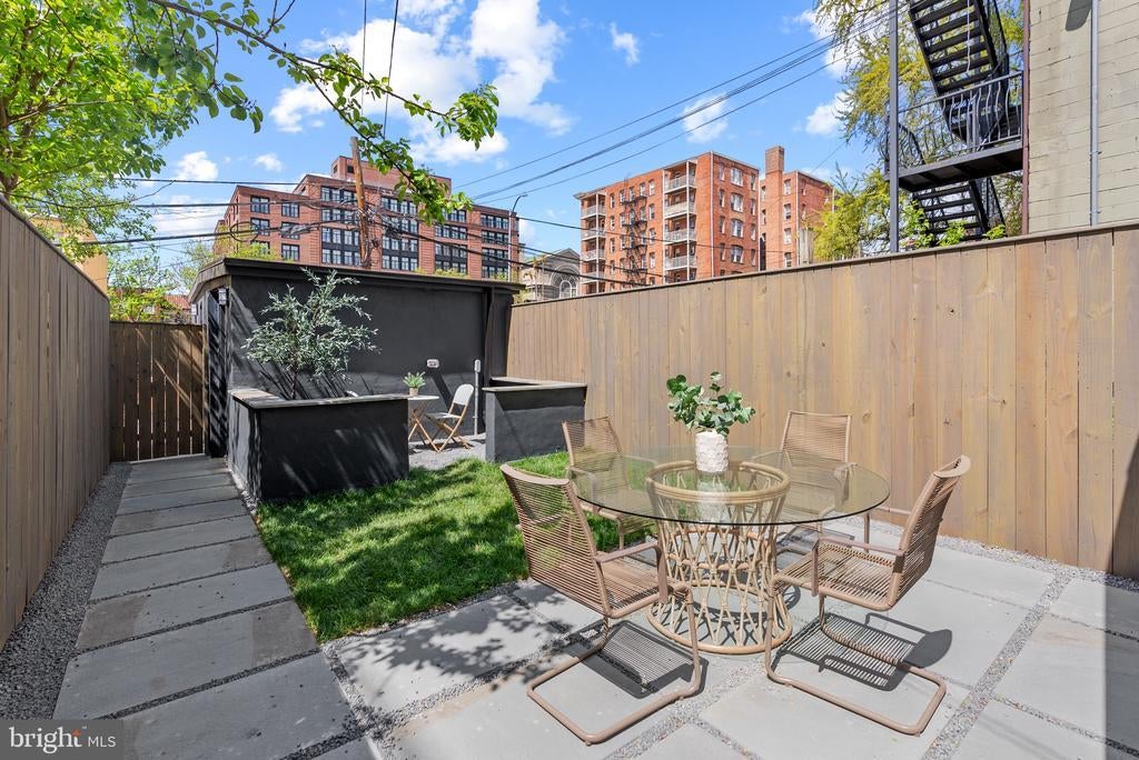 Historic Elegance Reimagined | This luxury full renovation by Ziba Management is a showstopper Victorian rowhome in the heart of the city, where historic charm meets curated, high-end design. Set on a quiet, tree-lined block, the home's charcoal-painted brick faade and turreted roofline offer striking curb appeal and a hint at the refined craftsmanship found throughout. Inside, four levels of beautifully finished living space unfold with wide-plank white oak floors, tall ceilings, elegant millwork, and abundant natural light. The main level is anchored by a sculptural central staircase and features a gracious living room with arched built-ins and a marble gas fireplace, a formal dining space, and a custom chef’s kitchen with honed marble countertops, natural wood cabinetry, Thermador appliances, and custom hardware. An exquisite powder room with custom mural wallpaper and a fluted marble sink makes a bold impression. Upstairs, the primary suite offers treetop views and a spa-inspired bath with dual vanity, wet-room shower / soaking tub, and dramatic custom tilework. Additional bedrooms and bathrooms, each with their own unique finishes, provide generous space for family, guests, or home office use. On the top level, a lounge with wet bar opens to a private roof deck with expansive city views—perfect for entertaining or relaxing above the trees. The fully finished lower level includes a well-appointed kitchenette/bar, living room, bedroom, and full bath with private entry, which is ideal for guests, an au pair suite, or rental potential. Out back, a fenced flagstone patio and yard lead to rare detached garage parking. Located between Adams Morgan, DuPont, Kalorama, and Mount Pleasant, you are truly in the center of it all! To name a few, The Line Hotel, Tail Up Goat, Tryst, so many other amazing restaurants, boutiques, and green spaces all at your doorstep!