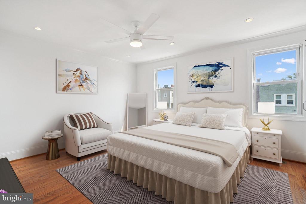 OPEN HOUSE Sun 10/19 from 1-3pm! Beautifully maintained Capitol Hill charmer located on a friendly block! Original renovation by locally renowned Dilan Homes. Lives SO MUCH BIGGER than the Sq Ft listed. As you arrive, you're greeted by an adorable front porch and small flower garden. Step inside to find a spacious living area anchored by newly installed custom bookshelves — the perfect blend of style and functionality — and a wide open floor plan. Enjoy pristine hardwood flooring and an updated kitchen with all stainless steel appliances. Natural lighting from the sliding glass door, kitchen, and living room windows gives this main level that cozy touch. Head upstairs and find TWO full baths and high ceilings throughout the upper level! The large main bedroom offers plenty of room for a king-size bed and sitting area, plus a fully remodeled closet with added space and gorgeous barn doors. REAL second and third bedrooms offer plenty of flexibility. Walk out back and find a beautiful fenced-in patio and deck — the perfect space for hosting, gardening, and relaxing. You are surrounded by parks, shops, and restaurants. Just a 10-minute walk to METRO, and close to Lincoln Park, H Street, Eastern Market, Union Market — the list goes on. Welcome home!
