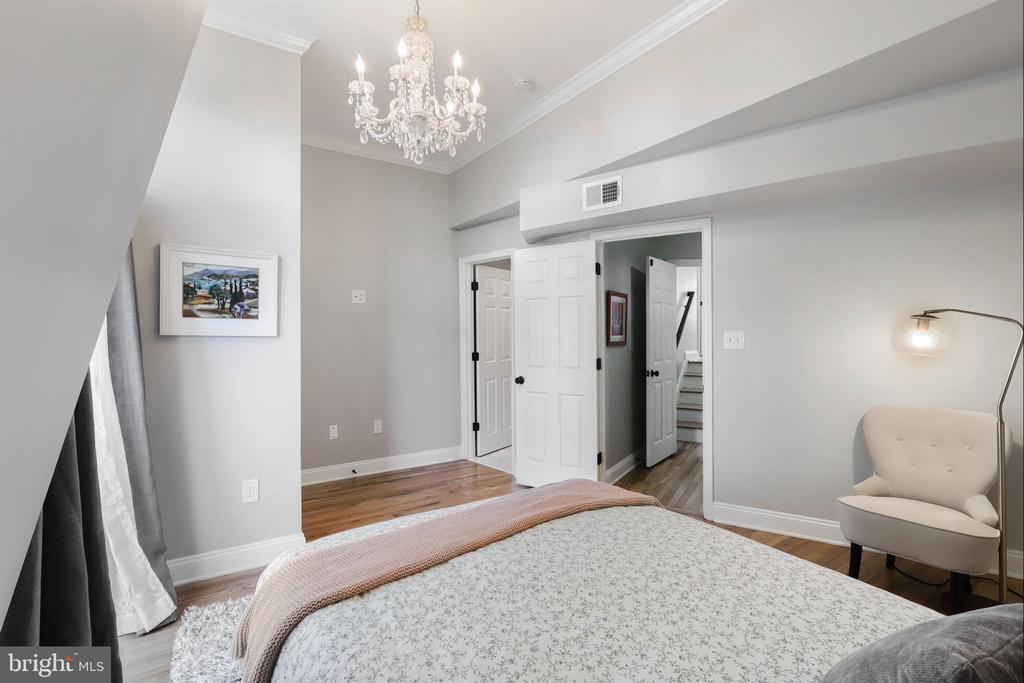 Entry Lvl BR, Tub Shower, Crown Molding, CeilngFan(s), Shades/Blinds, Wood Floors, Bathroom - Walk-In Shower
