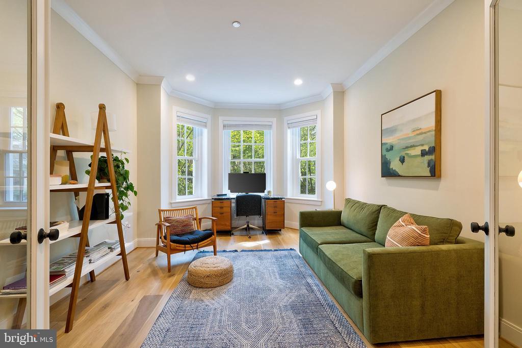 Open this Saturday and Sunday! Incredible renovation of this extra-wide, bayfront, Mount Pleasant stunner where beautiful original details meet high-end custom finishes and modern amenities. Completed in 2021 and perched on picturesque Lamont Street, this home truly has it all. Step in from the front porch and you are greeted by a welcoming foyer, real hardwoods, and 9.5-foot ceilings. The expansive main living level features a beautiful chef's kitchen with long peninsula and breakfast bar, a much-desired family room space right off the kitchen, a sunny dining area that overlooks the backyard, a large and open living room with exposed brick wall and custom millwork, a convenient powder room tucked around the corner, and a guest room/office with south-facing bay window. The bedroom level offers a king-sized primary suite with walk-in closet and the ensuite primary bathroom of your dreams (dual vanity, large tiled shower stall, plus a soaking tub), two additional bedrooms, the second full bathroom in the hallway, plus the laundry and storage room. Out back, discover a little green space and one large parking spot. To the front, enjoy a delightful porch with a view of Lamont. And all of this is in sought-after, historic, and charming Mount Pleasant, aka “The Village in the City!” Convenient to great restaurants and bars like Elle, Purple Patch, Martha Dear, La Tejana, and O.K.P.B.; local coffee shops; the neighborhood playground right at the end of the block; hiking trails in adjacent Rock Creek Park; Each Peach Market and the new Streets Market; one of the best farmers markets in the city; beloved Bancroft Elementary School (also in bounds for Deal MS and Jackson-Reed HS); the Metro; the Zoo; and all of DC at your fingertips. Welcome home!
