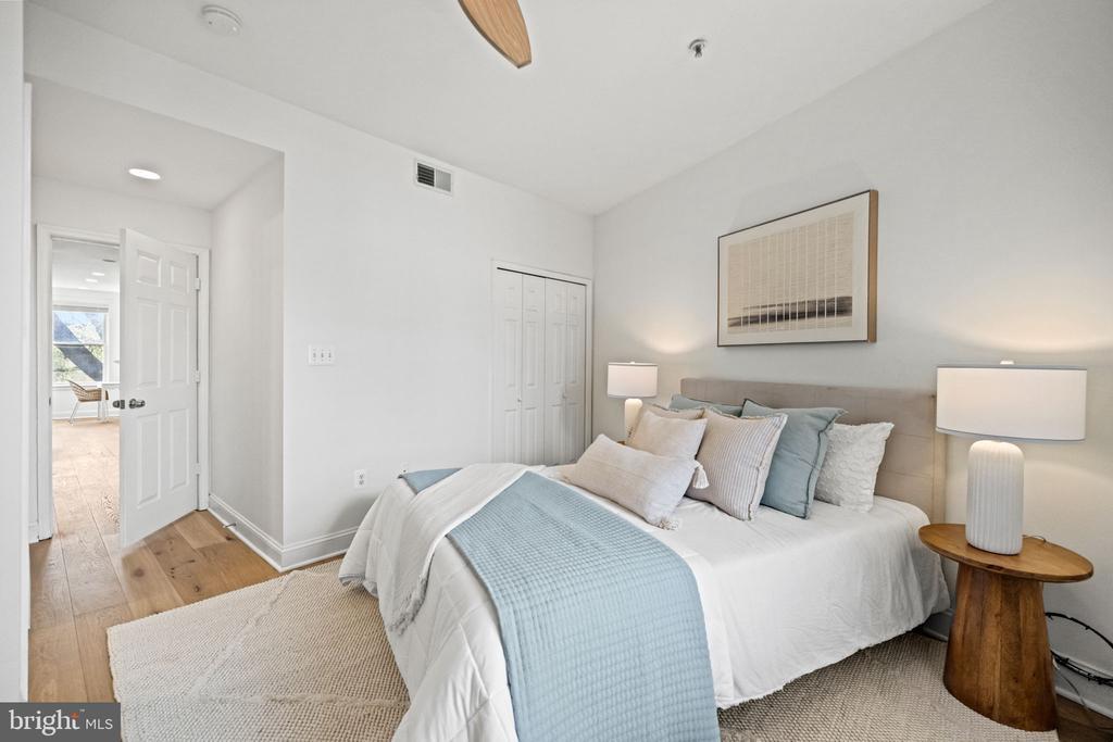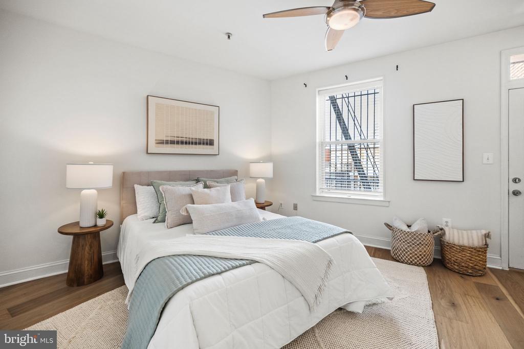 Perched two levels above the street, this sophisticated 2-bedroom, 2-bathroom condo offers a harmonious blend of comfort and style in the heart of the city. The spacious layout features a sun-drenched living area that captures gorgeous sun light, creating an inviting ambiance throughout. The gourmet kitchen is a culinary enthusiast's dream, boasting granite countertops, stainless steel appliances, gas cooking, a breakfast bar, and beautiful cabinetry. The primary suite includes a full bath and generous double-door closets, while the second bedroom is perfect for guests or a home office. LOCATION LOCATION LOCATION! Close to so many amazing things like The Red Hen, Boundary Stone, Bacio Pizza and the famous Big Bear Cafe! Recent enhancements elevate this home's appeal: brand new wood floors, renovated bathrooms, fresh paint, new window blinds and more. Additional features include in-unit laundry, and a cozy shared outdoor sitting area—ideal for morning coffee or evening relaxation.