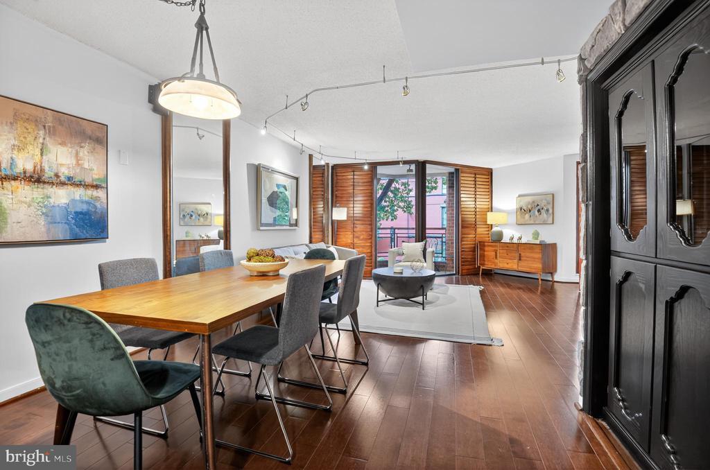 Welcome to the best of Foggy Bottom and the West End. This rare and beautifully maintained one-bedroom plus den condo offers 1,166 square feet of bright, open living space with timeless appeal. The home features gleaming hardwood floors and expansive floor-to-ceiling windows that fill the space with natural light. The kitchen is outfitted with custom cabinetry, granite countertops, and stainless steel appliances, including a custom, temperature-controlled wine hutch—perfect for entertaining or everyday luxury. The den, complete with built-in bookshelves, functions beautifully as a home office, reading room, or guest bedroom. The spacious primary suite includes an en-suite bath, a walk-in closet, and additional built-in storage. A full-size washer and dryer are conveniently located within the unit, and an assigned garage parking space is included. Full service secure building, with 24 hour concierge, on site management, large secluded terrace and fitness suite. Located just steps from premier dining, shopping, and transportation options, this condo offers easy access to George Washington University, Trader Joe’s, Whole Foods, and the Foggy Bottom and Dupont Circle Metro stations. With a Walk Score of 98, everything you need is just outside your door.