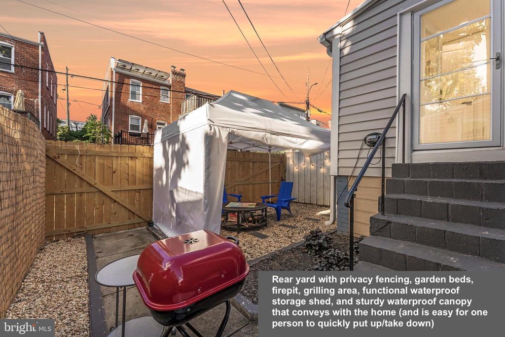 Awning(s), Extensive Hardscape, Secure Storage, Patio, Porch(es), Terrace, Porch-wraparound, Deck(s), Privacy Fence, Wood Fence
