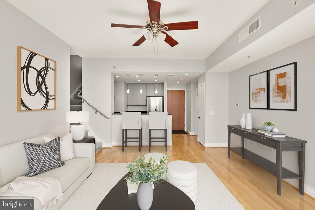 1BR+LOFT DEN I PRIVATE ROOF DECK I PARKING I Penthouse living at its finest in the sought-after Rhapsody! This exquisite two-level residence features a bright, open-concept layout, with south-facing floor-to-ceiling windows that flood the space with natural light and showcase breathtaking city and monument views. The main level includes a spacious living and dining area, a modern kitchen with stainless steel appliances, granite countertops, and gas cooking, plus a well-appointed bedroom and full bath. Upstairs, a versatile den leads to a private rooftop terrace—perfect for relaxing or entertaining. With the convenience of an in-unit washer and dryer and bonus assigned garage parking space, this home provides the perfect blend of style and practicality in the heart of the city. Condo fee includes Water, Trash, Sewer, Gas, Hot Water. Beyond your doorstep, the building offers top-tier amenities such as concierge, fitness room, package room, bike storage, and on-site management. Newly refreshed hallways and lobby! The expansive rooftop, complete with a grill area and breathtaking views of the District, is perfect for unwinding or hosting friends. Just across the street from Whole Foods and steps away from the Metro (Green/Yellow Line), you’ll have effortless access to all the city has to offer. Whether you're hopping on Capital Bikeshare, exploring the vibrant U Street Corridor, or enjoying the nightlife, dining, and shops along 14th Street and Shaw, you'll love the convenience and energy of this prime location. Square footage is estimated and based on 3rd party measurements.