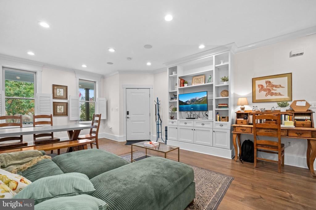 Built-Ins, Crown Molding, Entry Lvl BR, Recessed Lighting, Upgraded Countertops, Walk-in Closet(s), Shades/Blinds, Wood Floors