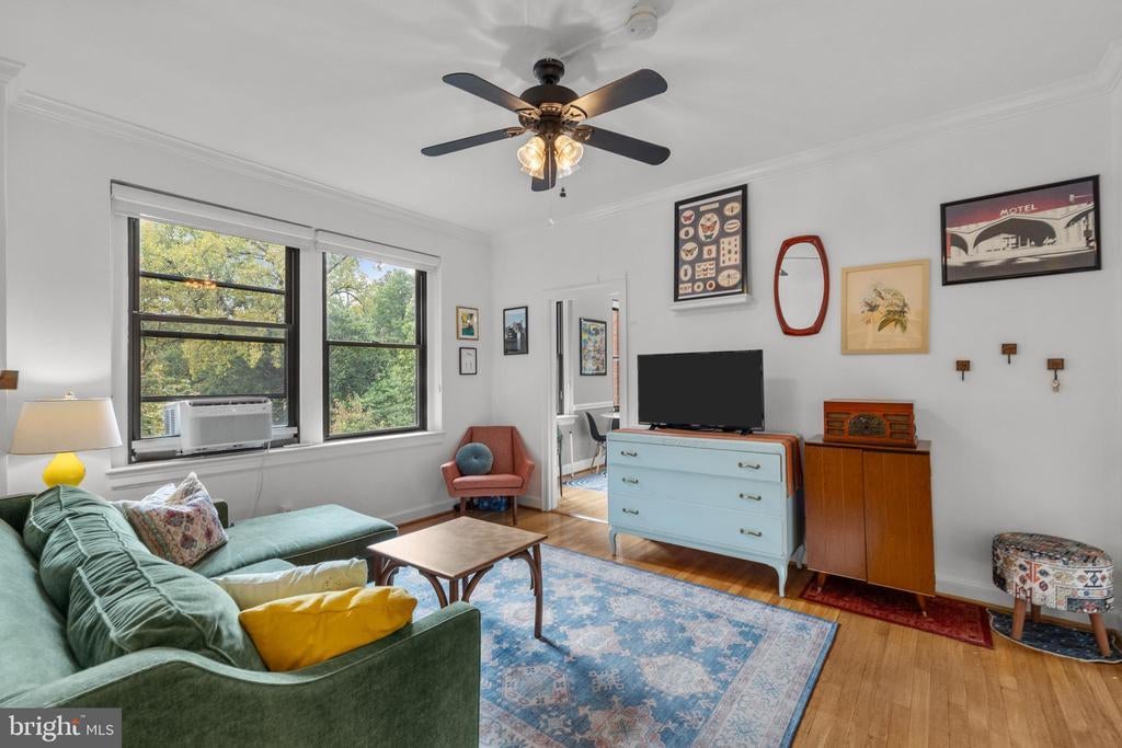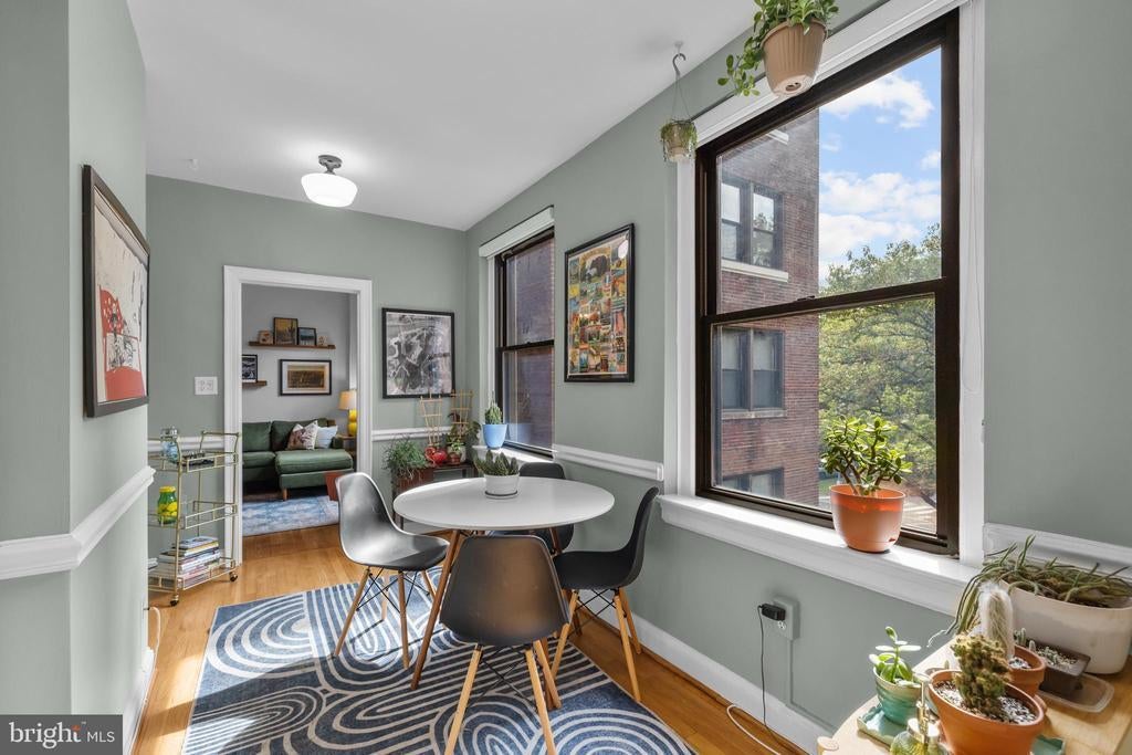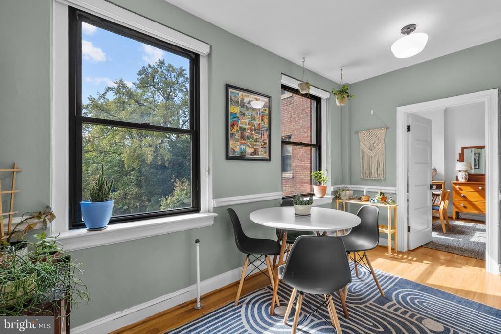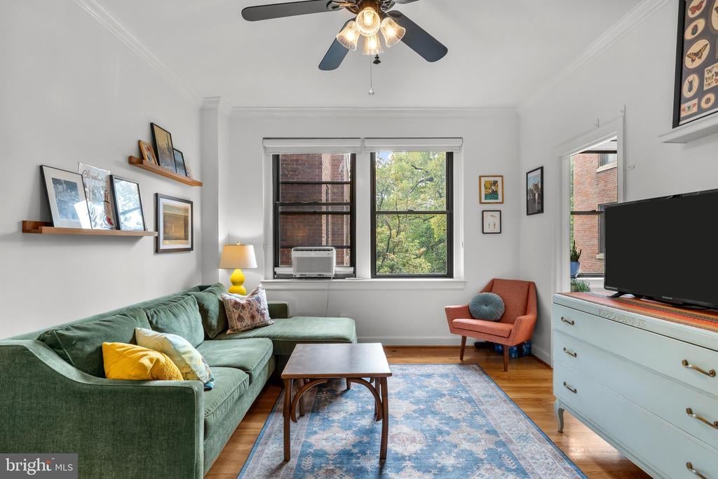 Sellers have requested that all offers be submitted by Mon @ 7:00 pm and reserve the right to accept one prior to that point. Welcome to Tilden Court, a classic 1930's building prominently situated on Connecticut Avenue just 2 blocks to the Van Ness metro. Classic original features like the 9-foot ceilings, crown molding, glass door knobs, arched kitchen openings, hardwood floors, and oversized windows were maintained after the building's conversion to condos in the early 2000s. With on-site building management, a well-equipped gym, large bike room, private storage units, a recently replaced boiler and a bright common area laundry room, the condo fee is extremely low at $.52 per ft ($390 per month / 751 sq ft) and even includes high speed internet from Astound. The only utility bill you are responsible for is electric. Living at Tilden Court also means you are just down the street from the new MOM'S Organic, have easy access to Rock Creek Park, and can enjoy a beautiful stroll down to Cleveland Park. Ok, ok enough about the beautiful building and amazing local amenities. This unit is truly unique in that it is 2 combined studios that have created an enormous chef's kitchen (with laundry hookup), an oversized dining room with sunny SW exposures and 2 full baths on opposites sides of the floorplan. In the bedroom, a custom Elfa walk-through closet leads to a classic ensuite bath. There is also an inviting office with built-in bookshelves that is just off of the light-filled living room and guest bath. This home is truly 1 of 1! Mortgage savings may be available for buyers of this listing.