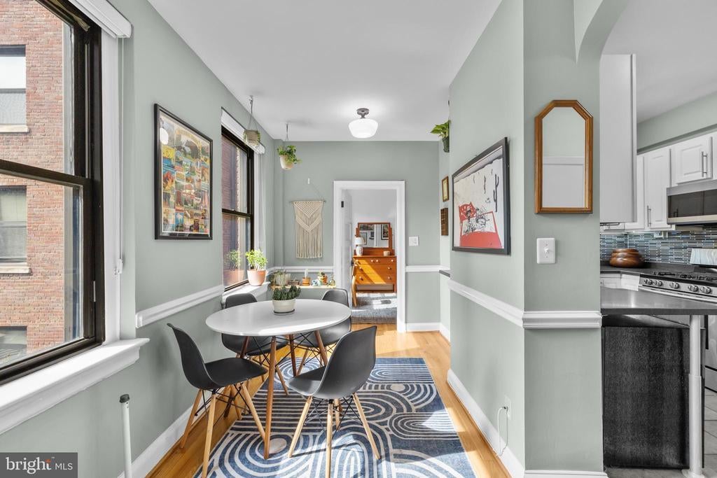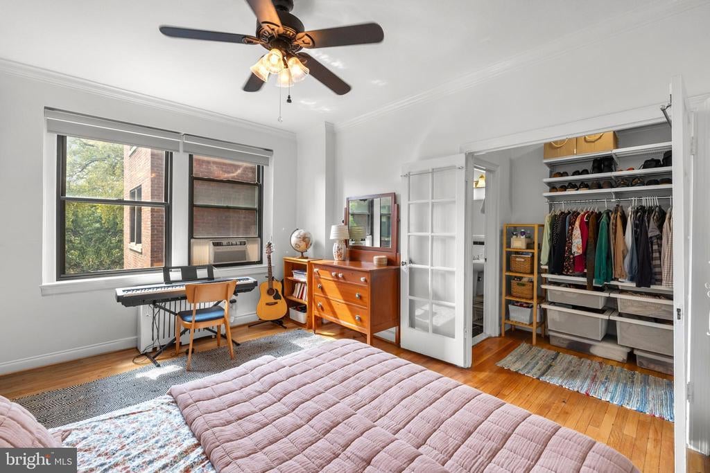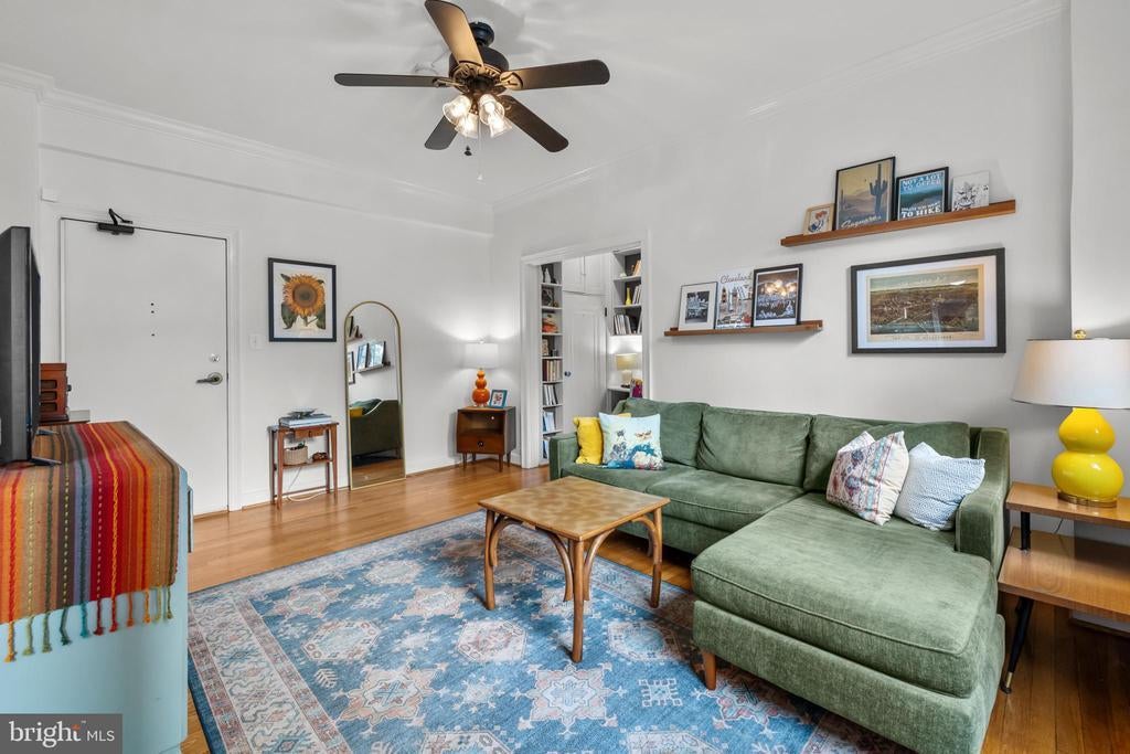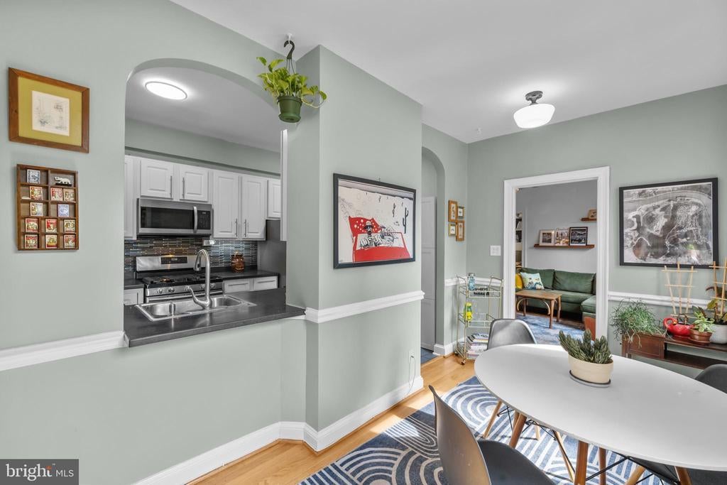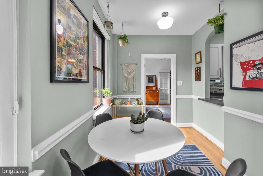 Sellers have requested that all offers be submitted by Mon @ 7:00 pm and reserve the right to accept one prior to that point. Welcome to Tilden Court, a classic 1930's building prominently situated on Connecticut Avenue just 2 blocks to the Van Ness metro. Classic original features like the 9-foot ceilings, crown molding, glass door knobs, arched kitchen openings, hardwood floors, and oversized windows were maintained after the building's conversion to condos in the early 2000s. With on-site building management, a well-equipped gym, large bike room, private storage units, a recently replaced boiler and a bright common area laundry room, the condo fee is extremely low at $.52 per ft ($390 per month / 751 sq ft) and even includes high speed internet from Astound. The only utility bill you are responsible for is electric. Living at Tilden Court also means you are just down the street from the new MOM'S Organic, have easy access to Rock Creek Park, and can enjoy a beautiful stroll down to Cleveland Park. Ok, ok enough about the beautiful building and amazing local amenities. This unit is truly unique in that it is 2 combined studios that have created an enormous chef's kitchen (with laundry hookup), an oversized dining room with sunny SW exposures and 2 full baths on opposites sides of the floorplan. In the bedroom, a custom Elfa walk-through closet leads to a classic ensuite bath. There is also an inviting office with built-in bookshelves that is just off of the light-filled living room and guest bath. This home is truly 1 of 1! Mortgage savings may be available for buyers of this listing.
