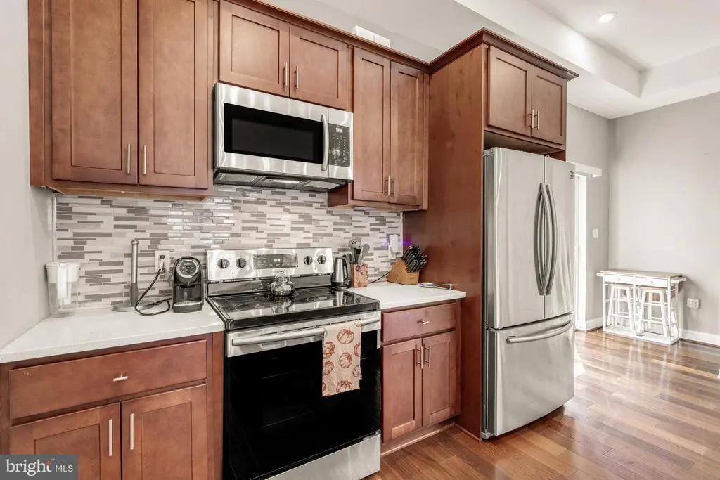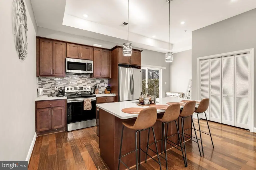 Beautifully updated home featuring 3 bedrooms and 2.5 baths. The open floor plan includes a spacious kitchen with a large island, stainless steel appliances, and quartz countertops. Upstairs, the primary suite is complemented by two additional bedrooms with generous closets and a full bath. The rear exterior offers a two-car parking pad and a private patio—perfect for outdoor entertaining. Ideally located near Metro, shops, restaurants , and just two miles from Nationals Park and The Wharf.