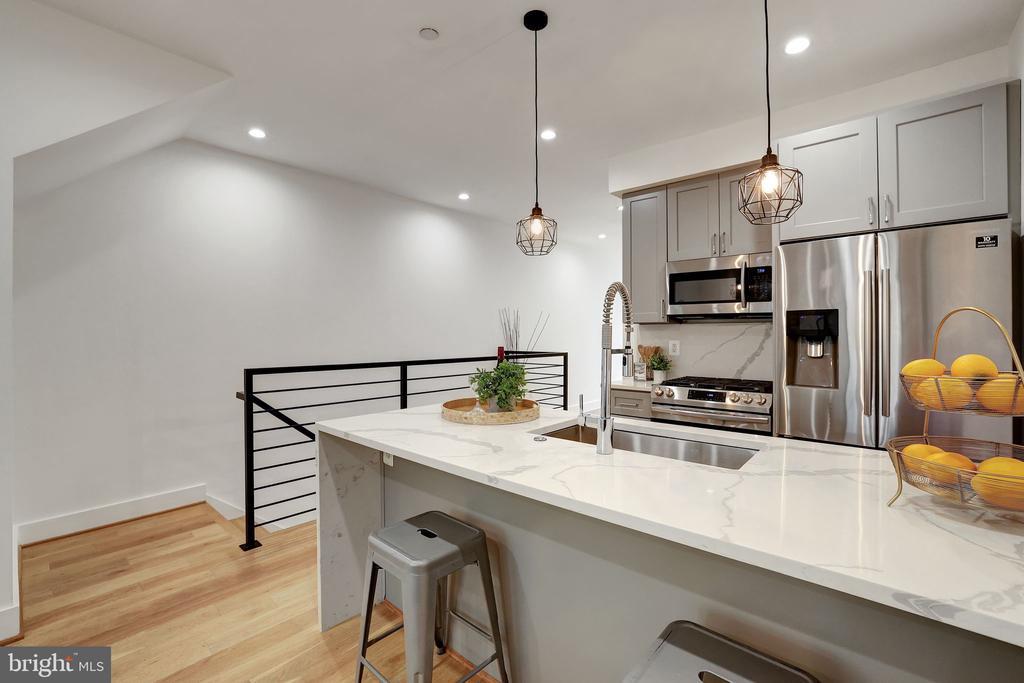 3BR/3BA two-level condo in Brookland with nearly 1,300 SF. Comps support values in the mid-$500s. Sold strictly AS-IS —Features include an open-concept main level with chef’s kitchen and waterfall quartz island, hardwood floors, recessed lighting, and tall windows for abundant light. The lower level offers two spacious bedrooms including a spa-like primary suite with dual closets, double vanity, and private bath. Updates include new HVAC, sump pump, smart thermostat, and roof reseal (2024). Low $266/mo condo fee. Prime location near Brookland-CUA Metro, Trader Joe’s, Monroe Street Market, Busboys & Poets, shops, dining, and parks. Outstanding opportunity in one of DC’s most vibrant neighborhoods.