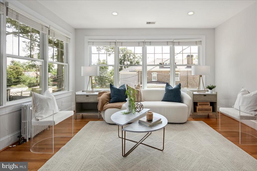 Welcome home to this beautifully updated eight bedroom, six bathroom home nestled in the heart of 16th Street Heights. This exquisite corner lot residence offers a harmonious blend of classic charm and modern sophistication creating a warm, welcoming space to call home. Walking up, you’re immediately greeted by a large front porch to welcome guest. The grand entry hall sets the tone for the home’s timeless elegance with original inlay hardwood floors and stunningly preserved moldings. The southern exposure lights up the house throughout with sunlight. A large formal living room with wood burning fireplace is just off the entry hall. Exquisite folding windowed doors separate the living room from the main dining room, which is the perfect spot for hosting dinner parties. The rear of the home was lovingly reimagined by Case Architects creating a culinary enthusiasts chef's kitchen equipped with a six-burner gas range, stainless steel appliances, island with room for seating, and ample space for entertaining in the adjoining family room. Off the kitchen is the rear door that leads you to private backyard oasis and the two off-street parking spaces. A full bathroom is tucked just off the hallway of the main level. Ascending the wrapped stairwell to the second floor landing, you reach four of the homes bedrooms and three full bathrooms. Two large connecting bedrooms are on the front of the home and have access to the renovated hall bathroom. A hall linen closet provides ample additional storage. To the rear of the home is a third bedroom with a private ensuite bathroom. The spacious updated primary suite completes this level and is the dream retreat for a peaceful night’s rest. An entry hallway to the bedroom houses a stackable washer and dryer on one side and a large primary bathroom with double sinks, additional cabinet storage and walk-in shower with dual showerheads on the other. The expansive primary bedroom offers room for a king-sized bed and sitting area and features a huge walk-in closet. Continuing to the third level, you find two generously sized bedrooms with an updated full bathroom. There is attic storage on this level as well. The main levels have dual zone heating and cooling. The lower level of the home was recently renovated creating a separate rental unit for extra income (previously rented for $2,495/month) or could function as an in-law or au-pair suite (interior access to the home remains with access through a lockable door). A private side entry door leads to two additional bedrooms, a full bathroom with custom tile and an open concept living space with full kitchen outfitted with stainless steel appliances and white quartz countertops. Split units heat and cool this space and a separate washer and dryer unit are located on this level as well. This home is located just steps away from the peace and tranquility of Rock Creek Park. Take a stroll through the many groomed trails or hone your tennis skills at Rock Creek Park Tennis Center. With access to both Rock Creek Parkway, 16th Street and Georgia Avenue, you can easily commute in and out of the city. The S-2 and S-4 bus lines are also just a few steps away from your front door. Centrally located close to the shops and grocery stores of Mount Pleasant, Petworth, and the newly constructed Parks at Walter Reed. Saturday mornings you can stroll to the Uptown Farmers market, grab coffee at Zeke’s or end the evening with a meal at Moreland’s Tavern or Atxondo’s.