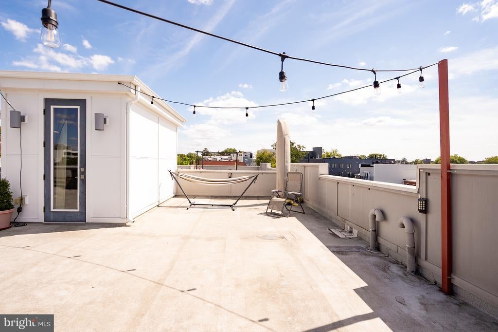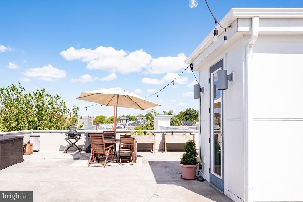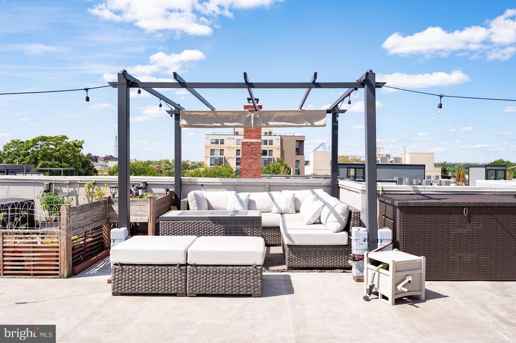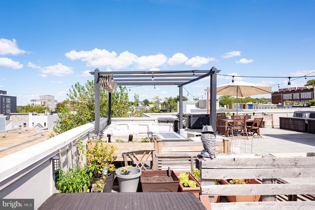 Penthouse Corner Condo with Expansive Private Rooftop Oasis Welcome to this stunning penthouse corner unit featuring soaring ceilings, gleaming hardwood floors, and a bright, open layout designed for modern living. The stylish kitchen is fully equipped with stainless steel appliances, granite countertops, and an Elfa closet pantry for organized storage. Both bedrooms offer their own en suite baths, generous closets upgraded with Elfa systems, and plenty of space for comfort and functionality. An internal staircase leads to the show-stopping private rooftop terrace—an entertainer’s dream—complete with a pergola, fire pit, standing hammock, lounge seating with storage boxes, and plenty of space for dining and entertaining under the city skyline. An additional balcony off the main level provides a second outdoor retreat. Enjoy the convenience of central A/C, in-unit washer/dryer, and dedicated off-street parking. Perfectly located just blocks from the Georgia Ave–Petworth Metro, you’ll be surrounded by some of DC’s most popular dining and nightlife. Walk to Park View hot spots, the vibrant 11th Street restaurant row, and all the energy Columbia Heights has to offer. This is city living at its finest—luxury, convenience, and a private rooftop sanctuary all in one.