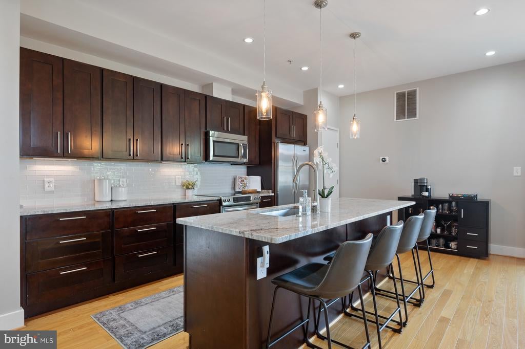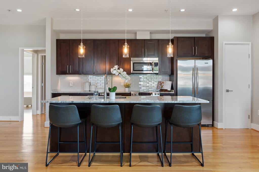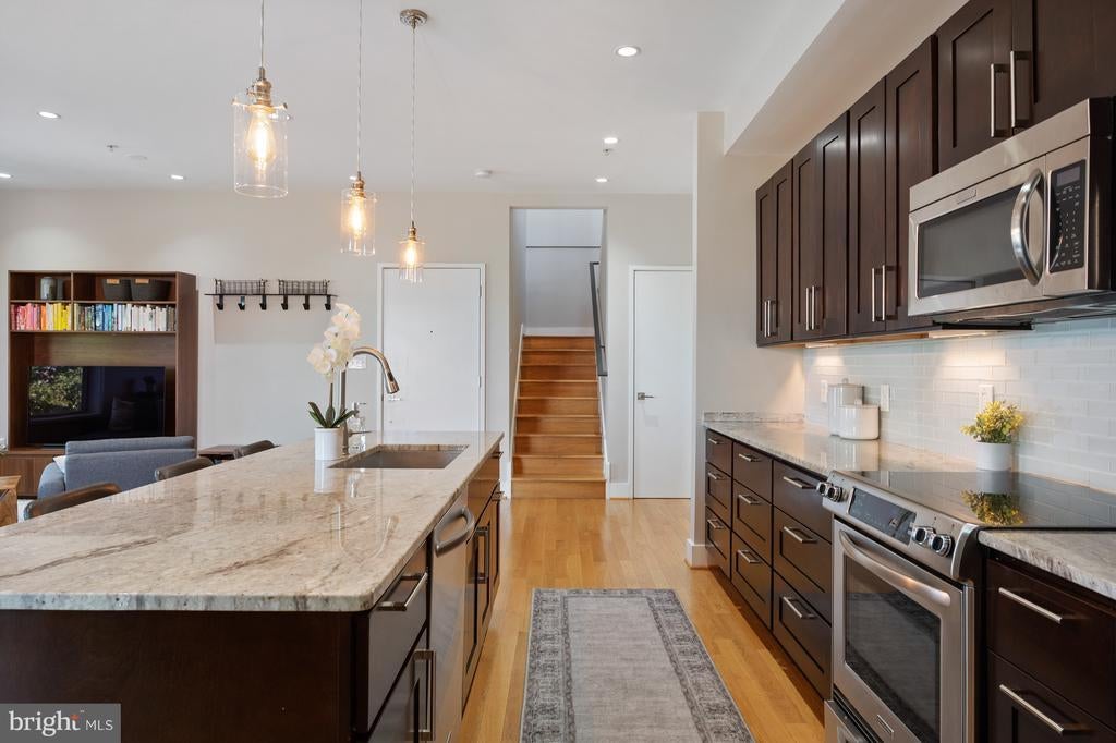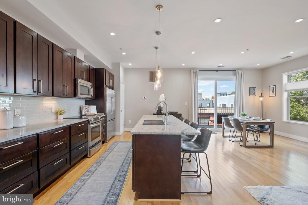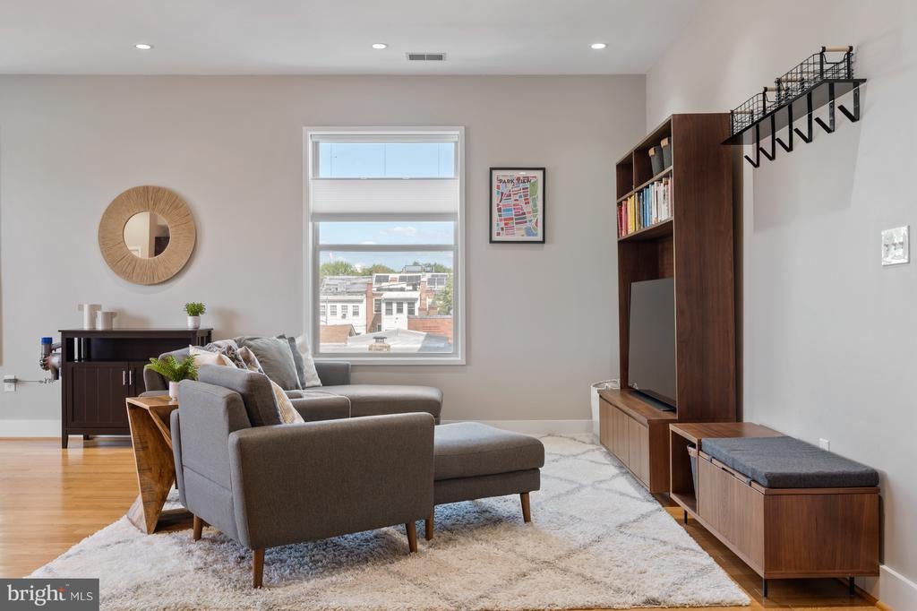 Penthouse Corner Condo with Expansive Private Rooftop Oasis Welcome to this stunning penthouse corner unit featuring soaring ceilings, gleaming hardwood floors, and a bright, open layout designed for modern living. The stylish kitchen is fully equipped with stainless steel appliances, granite countertops, and an Elfa closet pantry for organized storage. Both bedrooms offer their own en suite baths, generous closets upgraded with Elfa systems, and plenty of space for comfort and functionality. An internal staircase leads to the show-stopping private rooftop terrace—an entertainer’s dream—complete with a pergola, fire pit, standing hammock, lounge seating with storage boxes, and plenty of space for dining and entertaining under the city skyline. An additional balcony off the main level provides a second outdoor retreat. Enjoy the convenience of central A/C, in-unit washer/dryer, and dedicated off-street parking. Perfectly located just blocks from the Georgia Ave–Petworth Metro, you’ll be surrounded by some of DC’s most popular dining and nightlife. Walk to Park View hot spots, the vibrant 11th Street restaurant row, and all the energy Columbia Heights has to offer. This is city living at its finest—luxury, convenience, and a private rooftop sanctuary all in one.
