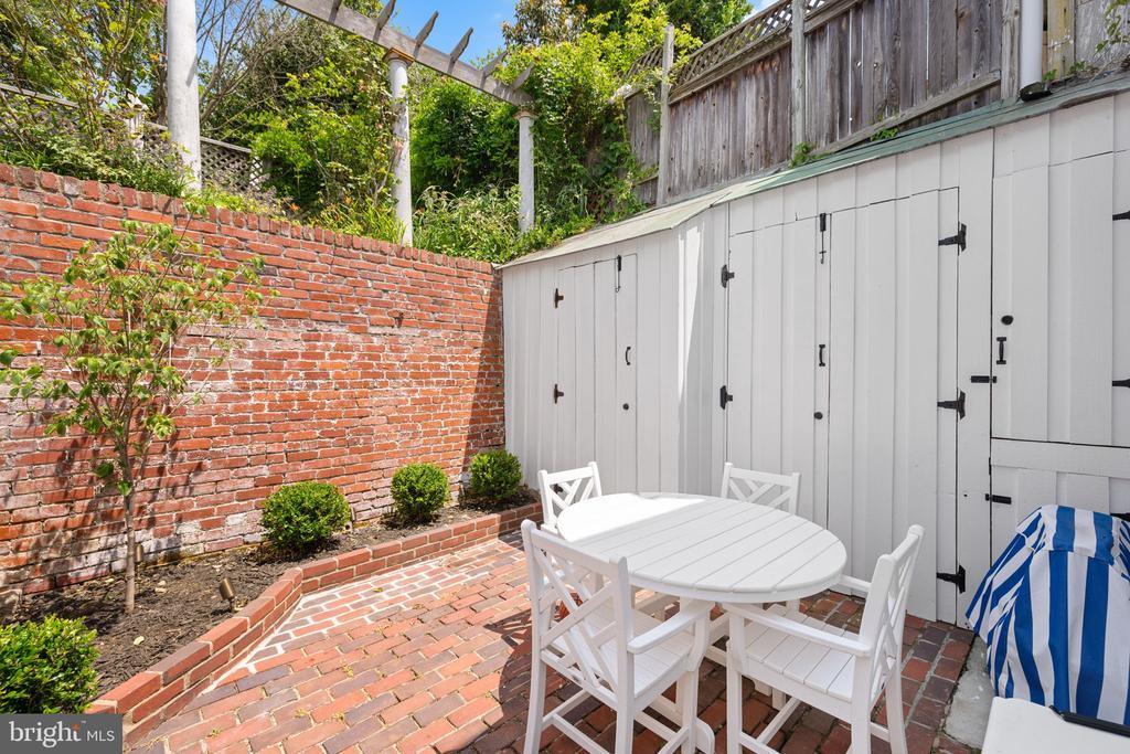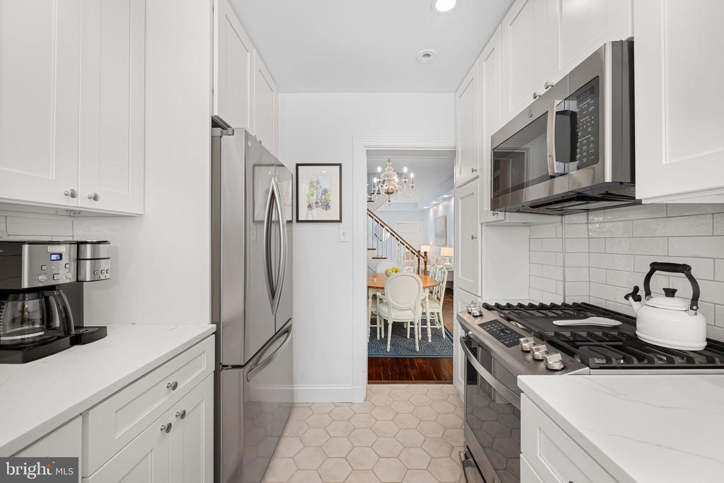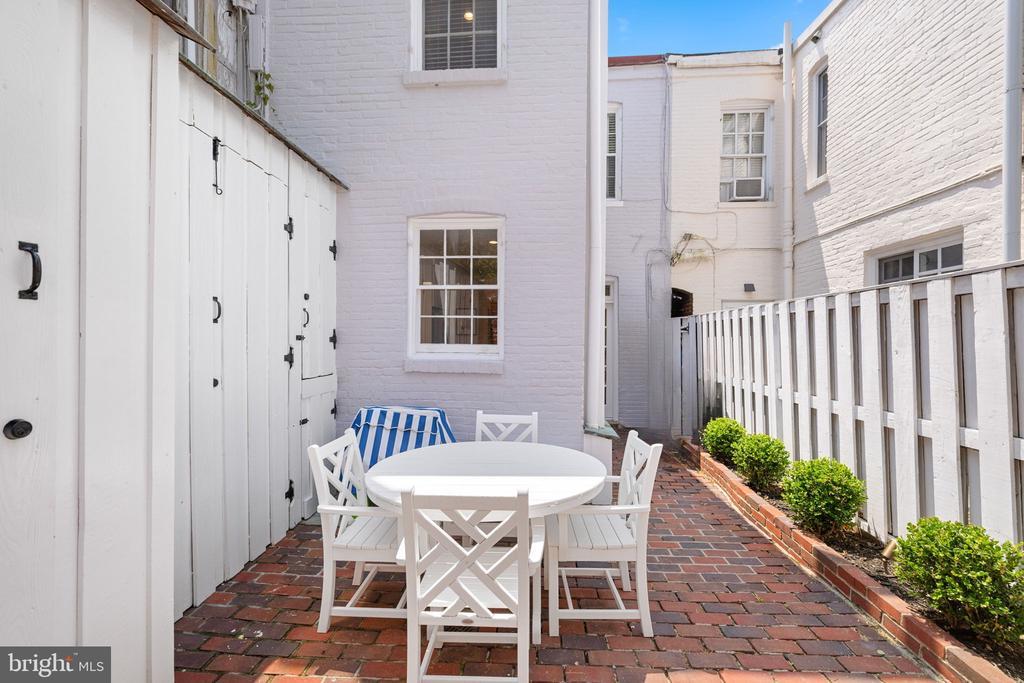 Tucked away on one of Georgetown’s most picturesque and historic cobblestone streets, this enchanting two-bedroom, two-bathroom residence seamlessly blends timeless charm with thoughtful, modern updates. With southern exposure, original hardwood floors, and beautifully curated designer interiors, every detail of this home has been carefully considered. The inviting front living room features soaring ceilings and a classic wood-burning fireplace, creating a warm and welcoming atmosphere. Beyond, the formal dining room offers expansive custom built-in cabinetry and a cleverly designed “Harry Potter” closet tucked beneath the stairs. The renovated kitchen boasts white quartz countertops, all-new stainless steel appliances, and a clean, elegant aesthetic that perfectly complements the home’s character. Upstairs, the sunlit primary suite features dual California Closets, while the second bedroom also includes a custom California Closet and Lutron electric shades for modern convenience. The hall bathroom shines with natural light from a skylight and has been updated with marble, new fixtures, and a modern vanity. The en suite bathroom features a timeless marble vanity and a high-capacity, top-of-the-line stackable washer and dryer. Significant system upgrades include a brand-new combination boiler and tankless hot water heater, full PVC re-plumbing, and a dual climate setup with central A/C, radiant heat, and Nest smart thermostats for year-round comfort. Outdoors, a private brick patio with professional landscape lighting and an outdoor TV console offers the perfect backdrop for relaxed evenings or weekend entertaining. A rare private breezeway from the sidewalk provides direct rear access to the patio—ideal for discreet trash bin storage or convenient entry, a highly coveted feature in Georgetown. Freshly painted inside and out, this move-in ready Georgetown gem is ideally located just steps from neighborhood shops, acclaimed restaurants, and only two blocks from Georgetown University—making it a rare find in one of DC’s most iconic neighborhoods.