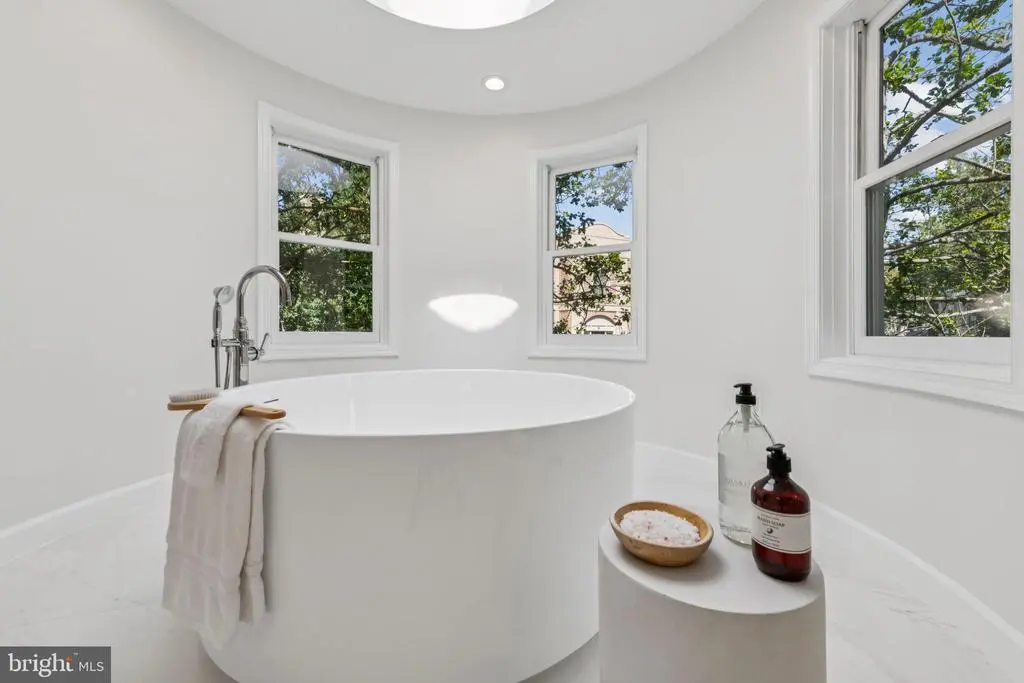 Welcome to this beautifully updated 4-bedroom, 4.5-bath brick home offering more than 4,500 square feet of light-filled living space on a quiet street in one of Washington’s most sought-after neighborhoods. Designed for both comfortable daily living and effortless entertaining, this residence combines timeless style with modern upgrades. The main level boasts a renovated eat-in kitchen featuring Neolith countertops, modern cabinetry, and new stainless-steel appliances. An elegant dining room, expansive sun-filled living room with dramatic floor-to-ceiling windows, and a convenient powder room create a seamless flow for gatherings both large and small. On the upper level, each of the three generously proportioned bedrooms enjoys a private en-suite bath. The luxurious primary suite includes two walk-in closets along with a spa-like bathroom complete with a soaking tub, walk-in shower, dual vanities with upgraded lighting, and polished nickel fixtures throughout. The walk-out lower level offers an expansive family room with a wall of windows overlooking the private garden and patio. This level also features a large bedroom with direct access to an updated bathroom, plus a versatile bonus room—ideal for a gym, office, or media space. A storage room and a spacious laundry room with custom built-ins add to the home’s exceptional functionality. Perfectly positioned just minutes from Georgetown, the C&O Canal, and Palisades shops and dining, this home offers the best of city living with a serene neighborhood setting.