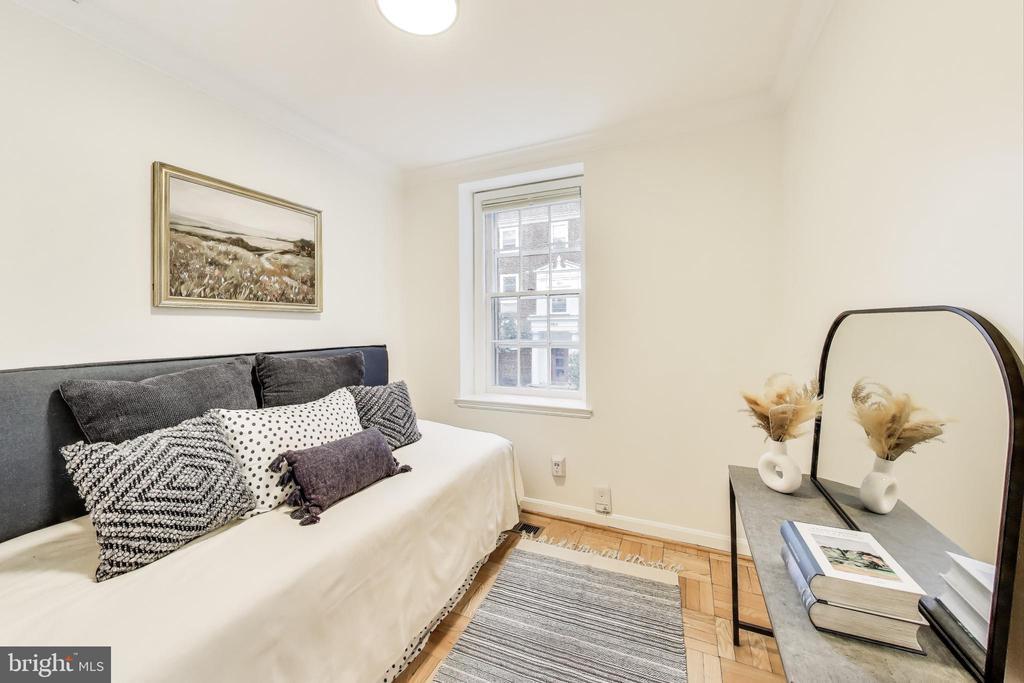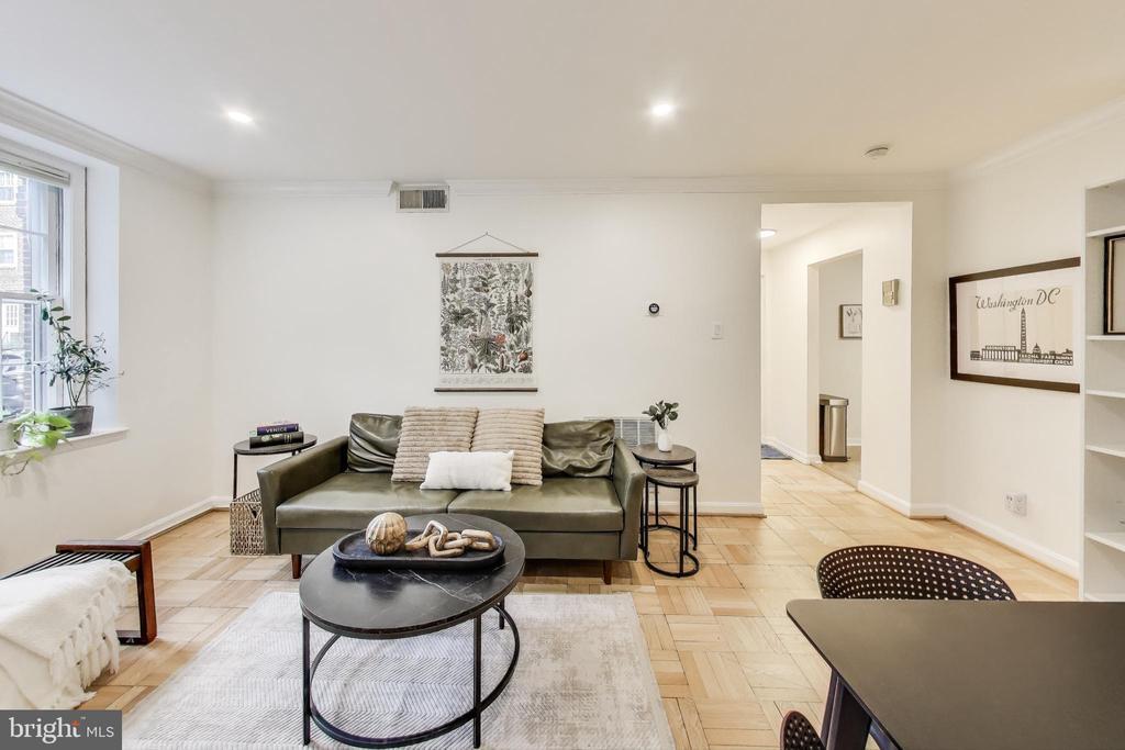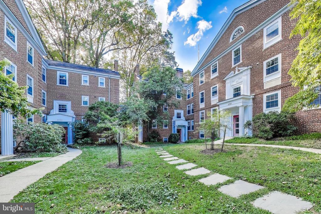 This is one of the most unique layouts in McLean Gardens - it's a must see! This is a two level unit current set up with a flex second bedroom/den and a separate office space - check out the floor plan! From the courtyard, you'll find two separate access points to this two story unit - one up a half flight of stairs to the living room level and one down a half flight of stairs to the primary bedroom level. Starting upstairs, this condo has a large sunlit kitchen with stainless steel appliances, white cabinets, and black granite countertops. A huge pantry space just off the kitchen adds tons of storage. Further in, you have a large living room/dining room space with newly refinished parquet floors, recessed lighting, and a sunlit view overlooking the Glover Archibald Park. Still on the main level, you have a spiral staircase to access the lower level primary suite, and then another flex space - perfect for a small office, with two additional closets, a full size washer/dryer and a large half bath. Downstairs, you have three entry points to the large primary bedroom suite - the internal spiral staircase, the building internal staircase to a separate, exterior door, and an external staircase on the parking lot/park side for easy entry from the parking area. The large bedroom area has new energy efficient LED lighting, 3 large closets in a dressing room area, and a large en suite bathroom. This unit is located just 3 blocks from City Ridge with access to DC's first Wegmans, Tatte coffee shop & Bakery, Equinox, Taco Bamba, Rooftop Kitchen, King Street Oyster House & More. Less than a mile from the Tenleytown Metro Stop, and just over a mile to the Van Ness stop, McLean Gardens are also located one block from the D82 bus that goes all the way through the city to Foggy Bottom metro. McLean Gardens is a pet friendly building.