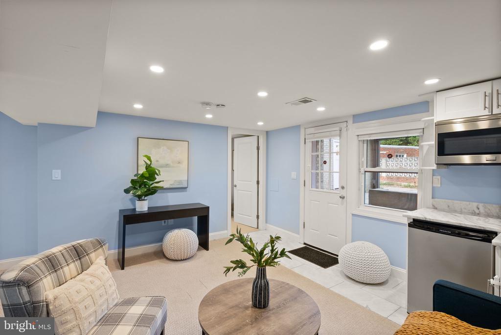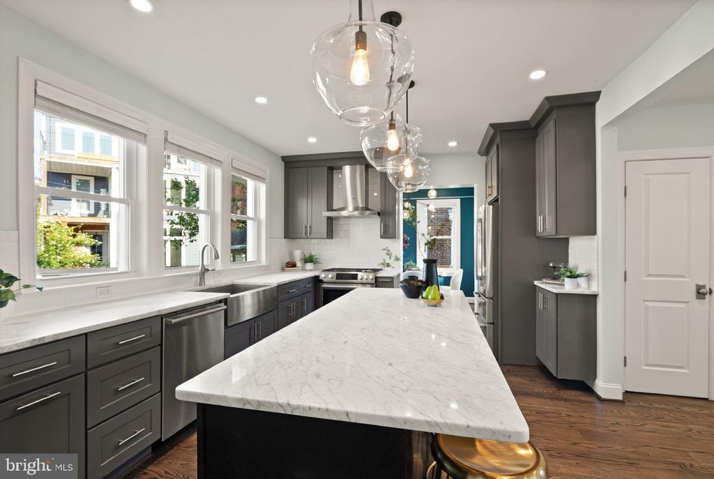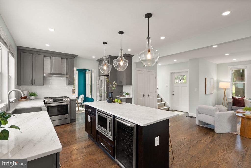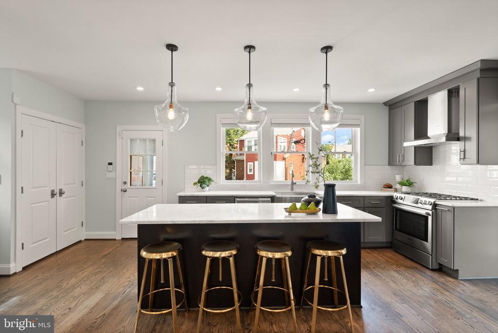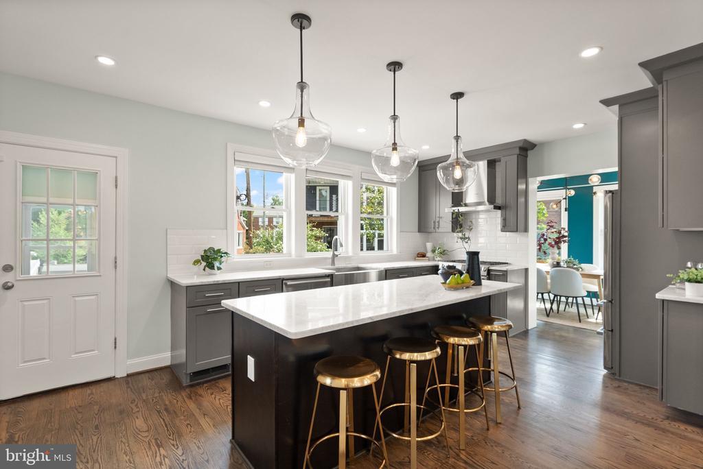 Newly Calibrated Price! House hunting got you feeling stuck? You’re in luck as this house enters the chat. Meticulously renovated in 2017 and cared for with intention, this four-bedroom, three-and-a-half-bath home spans over 2,000 square feet. Craftsmanship never goes out of style and this place still feels fresh as the day it was done. Step into a bright living room with a fireplace that sets the tone for slow mornings and easy nights. The kitchen is the hub. An oversized island anchors the space, Bosch appliances keep everything dialed, and the layout rolls into a comfortable family area. Hosting is simple here. Lay out a buffet on the island, keep the game or a movie on, and stay in the mix while you prep. A separate dining room sits along three walls of Pella windows, giving full “sunroom” energy without the label. It feels intimate and private for dinner, and it converts cleanly to an office when life calls for it. Upstairs, the vaulted primary suite delivers a true retreat with a large walk-in closet and a spa-style bath with a dual vanity and stone finishes. The two additional bedrooms are real bedrooms, not the afterthoughts you’ve grown accustomed to seeing in DC homes. A full hall bath handles the rest. The lower level adds range. A flexible living area, a proper bedroom, a full bath, laundry, and a kitchenette. Set it up for long-term guests, an au pair, focused work that needs its own corner, or weekend watch parties. Out back, a flagstone patio and private yard extend daily life outdoors. The detached garage solves storage and hobby space. Driveway parking keeps arrivals simple. Storage throughout means everyday living stays organized. Location is the quiet strength. Walk to Zeke’s Coffee for your morning fix and Rita’s Italian Ice for a late dessert. Woodridge favorites on Rhode Island Avenue are close, with Brookland’s restaurants, the Arts Walk, Catholic University, and Metro just minutes away. Turnkey, flexible, and thoughtfully finished. Ready for its next steward.