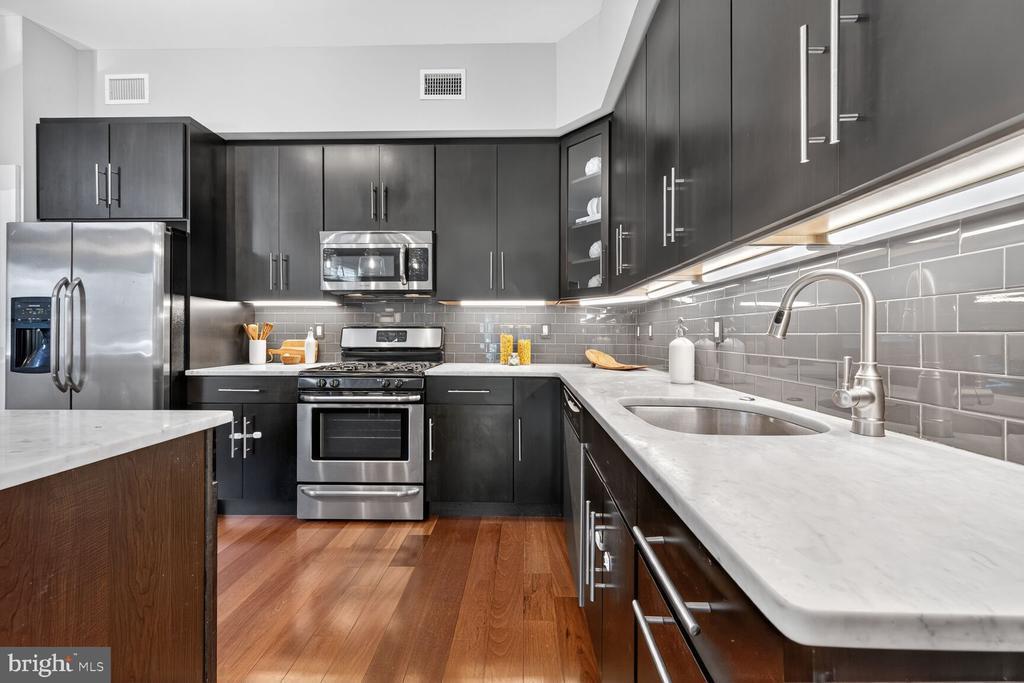 A truly UNICORN find in Columbia Heights — this STAND-ALONE SINGLE FAMILY "HOUSE"....Yes...HOUSE...no shared walls whatsoever.... sits within a private courtyard in a modern condo community between Park Road and Morton Street. With three exposures and three entrances, the 2 story home is filled with natural light and offers a sense of openness rarely found in a condo community. TWO AMAZING PRIVATE PATIOS Inside, wide-plank hardwood floors and ten-foot ceilings flow across two levels. At the heart of the home is a designer kitchen with espresso cabinetry, Carrara marble countertops, and stainless steel appliances, opening to a spacious living/dining area designed for easy entertaining. A powder room completes the main floor. Upstairs, two large bedrooms include an owner’s suite with a custom walk-in closet and en-suite bath with dual vanities. The second bedroom is equally bright and generous, served by a marble-tiled full bath with a glass walk-in shower. Contemporary light fixtures and hardware, and recessed lighting add to the modern appeal. Residents also enjoy access to the main building's shared roof deck with sweeping views of the city — including the Washington Monument. Location Highlights Foodies will love the proximity to some of DC’s top dining spots, including The Coupe, El Chucho, Queen’s English, Hook Hall, Call Your Mother Deli, Sonny’s Pizza, and more. Daily errands are a breeze with Giant, Lidl, Safeway, Yes! Organic Market, Target, Odd Provisions, and Whole Foods (just 1 mile) all nearby. Two Metro stations — Columbia Heights and Georgia Ave/Petworth (Green & Yellow Lines) — are each just 0.5 miles away, making commuting simple. Pet-friendly, investor-friendly