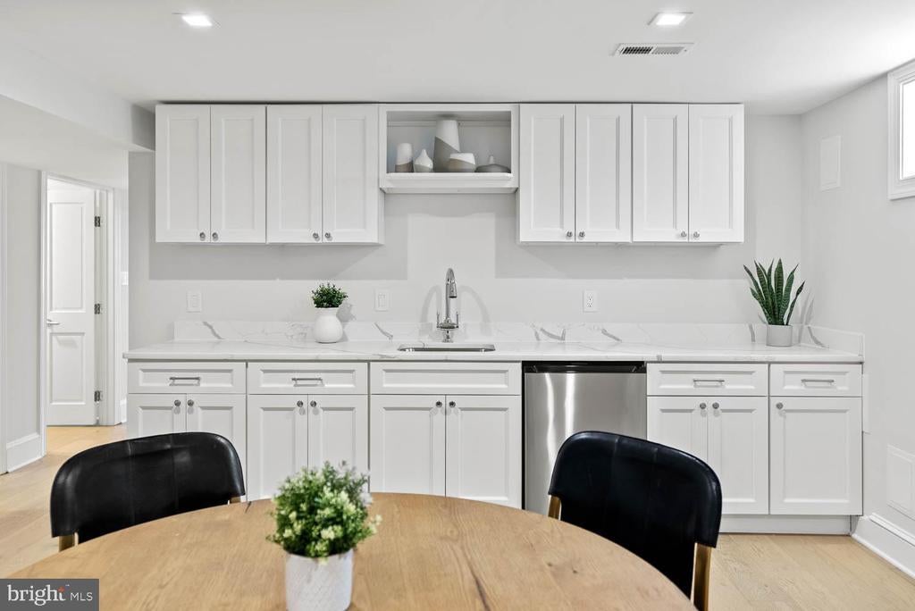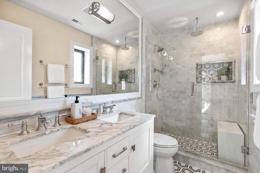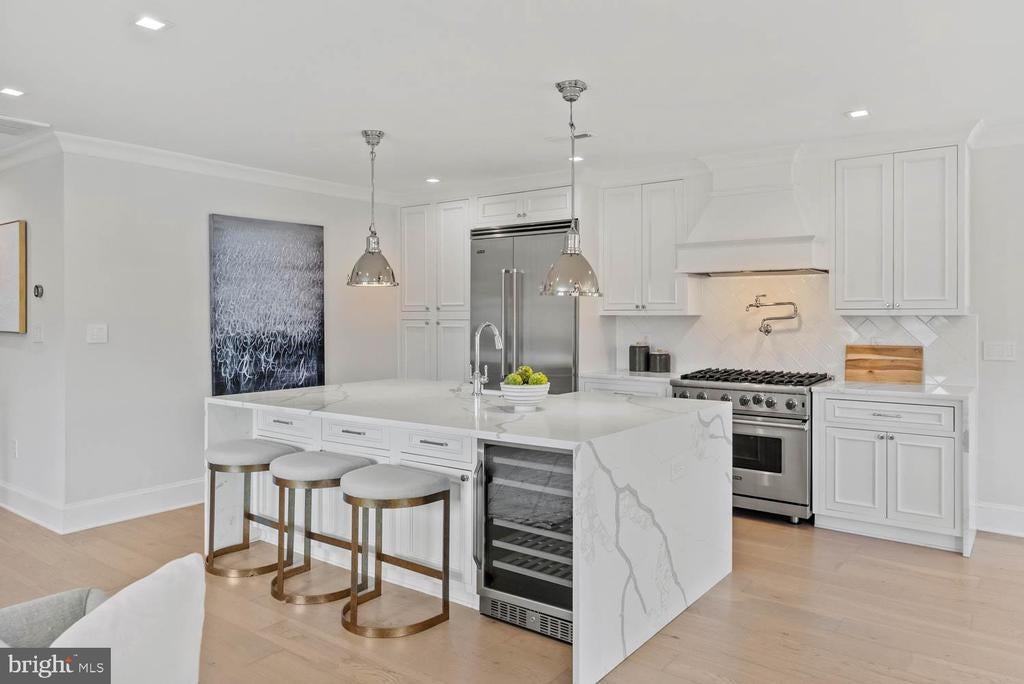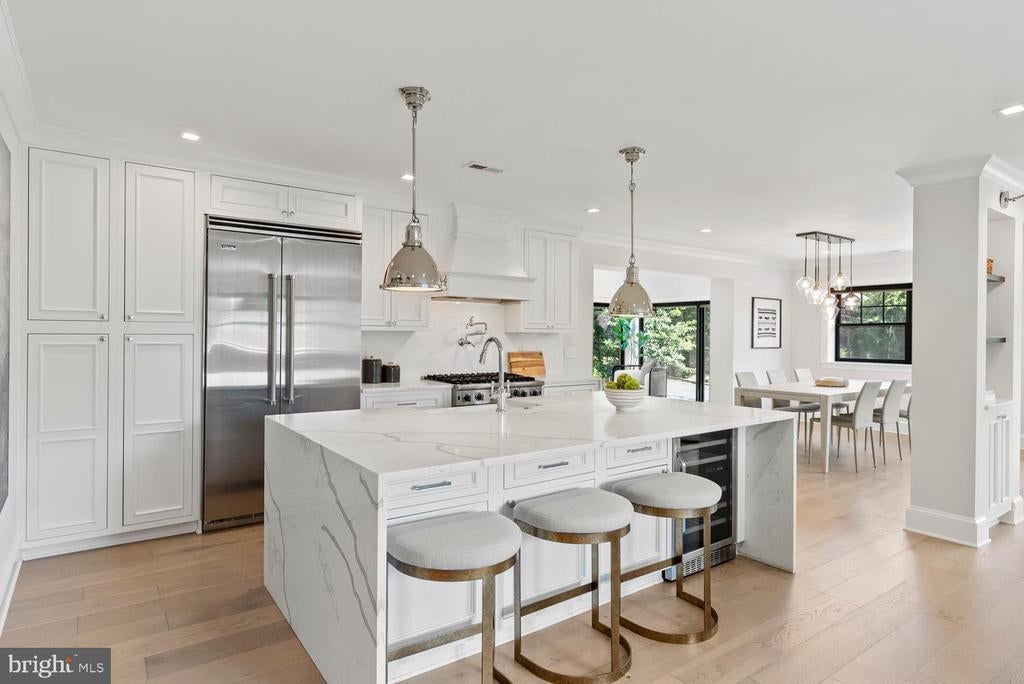 Another Beautiful Home Developed by Dilan Homes | 5 Bed | 3 Bath | 3,758 Sf | 6,380 Sf Lot | Large Fenced Backyard w/ Patio & Grill Station | 2-Car Garage & Driveway | Home: Full Gut Renovation in 2021, Large Open Living Layout, 41 Solar Panels, 2 Wood Burning Fireplaces w/ Mantles & Screens, Custom Columns w/ Built-Ins for Designated Dining & Living Spaces, Additional Sunroom w/ Floor-to-Ceiling Windows & Access to Backyard Patio, Large Windows Throughout w/ Lots of Natural Light & Window Shades, Recessed LED Lighting Throughout w/ Lutron Caseta Wireless Smart Dimmer Switches, Nest Smart Thermostat, White Oak Wide Plank Flooring, 2 Full Size Washers & Dryers, Native Plant Garden, 2 Car Garage w/ Electric Car Charger | Kitchen: Massive Careara Marble Waterfall-Edge Island w/ Ample Storage & Seating for 4, Ample Built-In Cabinetry w/ Soft-Close Hardware, Tiled Backsplash, Viking Stainless Steel Appliances, French Door Refrigerator, 6-Burner Gas Range, Full-Size Viking Dishwasher, 24” Wine Fridge, Built-In Pot Filler, Polished Nickel Pulls | Baths: Frameless Glass Enclosed Shower w/ Bench & Double Sink Vanity w/ Storage in Primary Suite, Marble Topped Vanities w/ Storage, Marble Tiled Shower Walls & Floors, Kohler Toilets | Basement: 2 Beds | 1 Bath | Separate Private Entrance, Additional Family Room w/ Kitchenette & Beverage Fridge, Mud Room w/ Built-In Storage & Access to Garage, White Oak Flooring