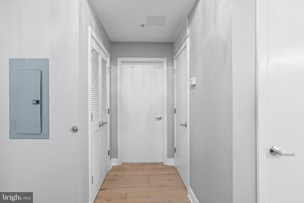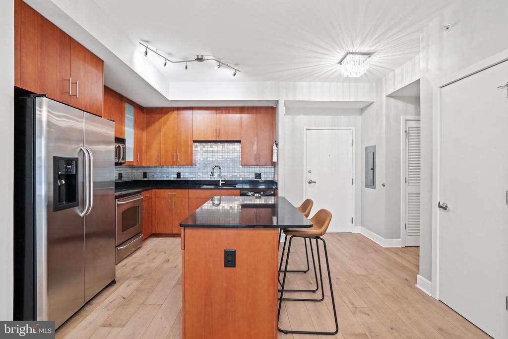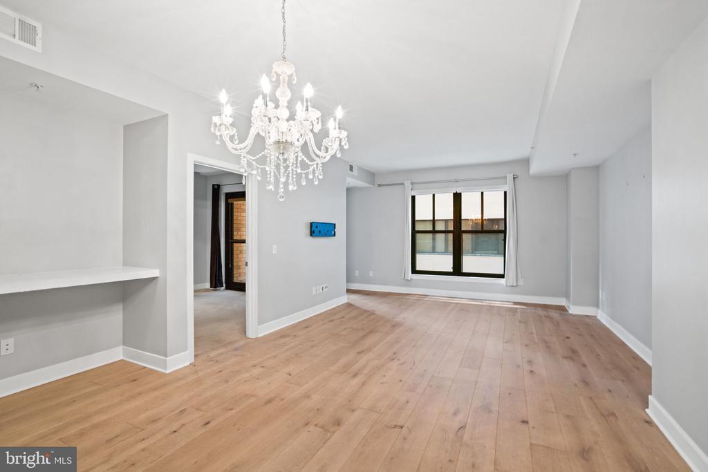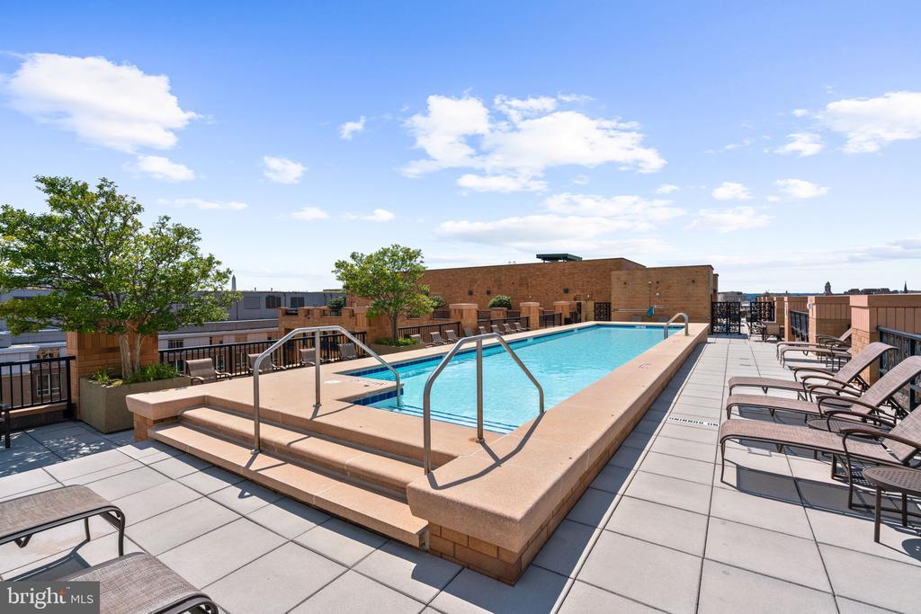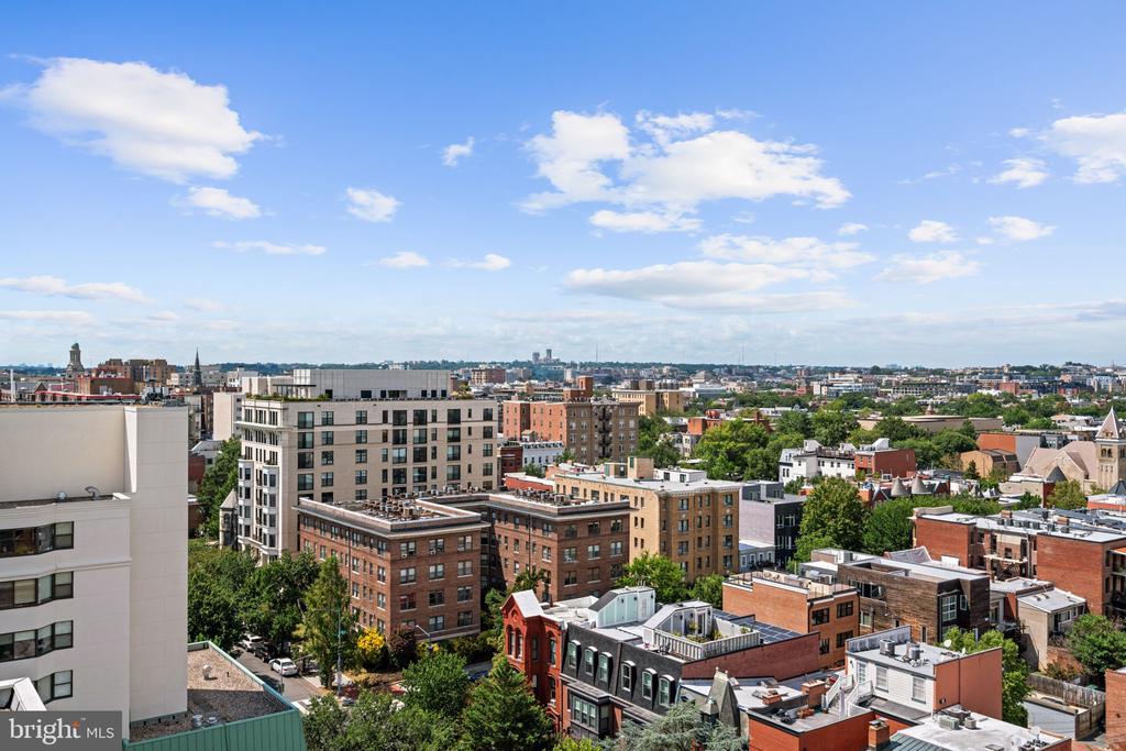 Welcome to this inviting and modern one bedroom / one bathroom in the amenity-rich Whitman condominium, offering a seamless blend of historic charm and modern convenience and ideally located near Mt. Vernon Square, Logan Circle, Shaw, and Bladgen Alley. Residence #407 has a spacious, open-concept layout, enhanced by beautiful hardwood floors, custom light fixtures and an in-unit washer / dryer. Perfect for everyday living and entertaining, the well-appointed kitchen features a breakfast bar, custom backsplash, stainless steel appliances, and a built-in desk area ideal for casual meals or working from home. The kitchen is open to the elegant living room highlighted by gorgeous oversized windows with city views. The well-proportioned bedroom enjoys a private balcony, a ceiling fan, and an en suite full bath. This luxury full-service building features a 24-hour front desk, dedicated parking, a recreation room, a fitness center, and a spectacular rooftop deck with a pool and gas grills - as well as views of the Washington Monument and Capitol. With its prime location mere steps away from Logan Circle and DuPont Circle, the Metro, as well as the Convention Center and downtown D.C., this warm and inviting residence presents an unparalleled opportunity to experience the best of urban living in our nation’s capital with the many surrounding restaurants, shops, and culture.