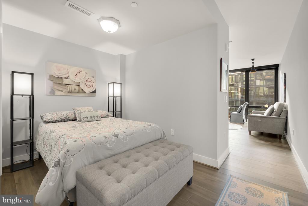 Step into the epitome of chic city living at The Bower—Navy Yard’s premier destination for style, sophistication, and convenience. This barley lived-in dazzling 1-bedroom, 1-bath residence is bathed in natural light from floor-to-ceiling windows and showcases sleek modern design, luxe finishes, and an airy open flow perfect for today’s lifestyle. The perfect in town pad for those not wanting to commute from VA or MD. The chef-inspired kitchen shines with Bosch appliances and quartz countertops, while the private bedroom nook easily fits a queen bed and boasts a custom Elfa closet system. A spa-worthy bath, in-unit laundry, and smart storage make every detail feel effortless. Optional garage parking ($50,000) and the ability to purchase fully furnished elevate this condo into the ultimate turnkey opportunity—whether as a primary home or pied--terre. Life at The Bower means 24-hour concierge service, a state-of-the-art fitness center, lush courtyard, and a rooftop lounge with jaw-dropping city views. Outside your door? The buzz of Navy Yard—Nationals Park, the waterfront, award-winning restaurants, Whole Foods & Harris Teeter, District Winery and endless entertainment—all just steps away. Enjoy Yards Park as your back yard. With Metro nearby, the entire city is at your fingertips. This is more than a condo. It’s a lifestyle. And it’s waiting for you.