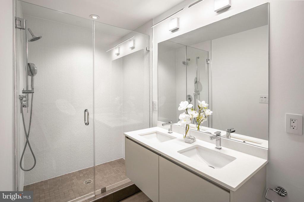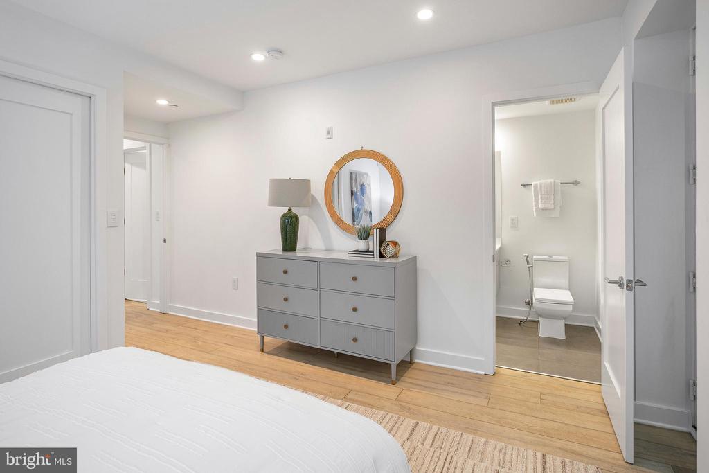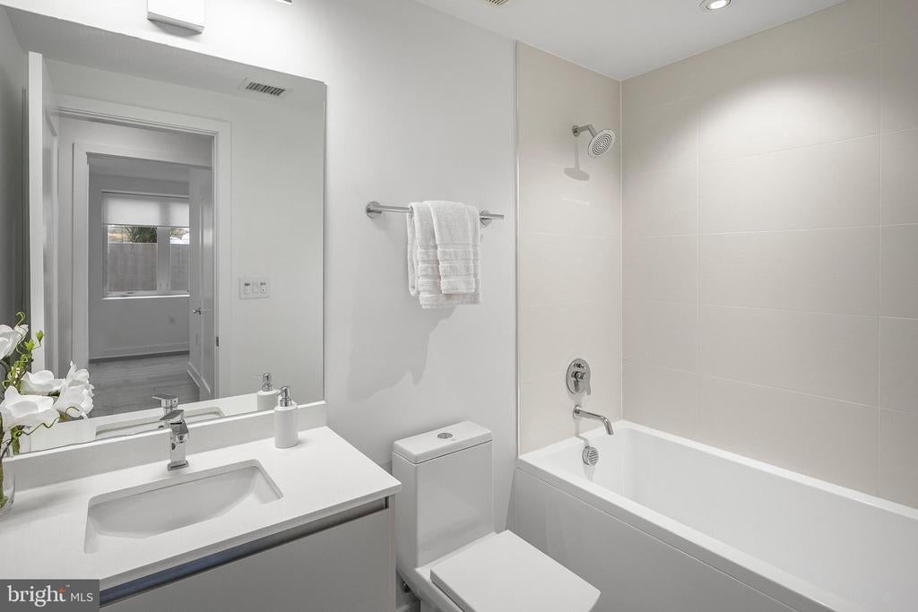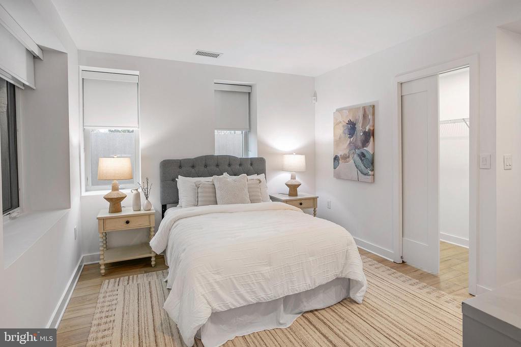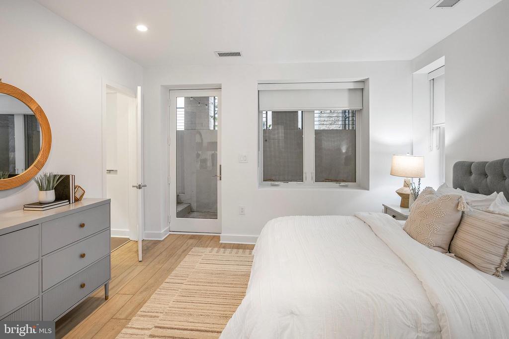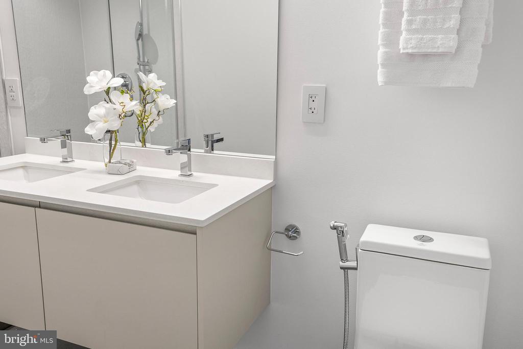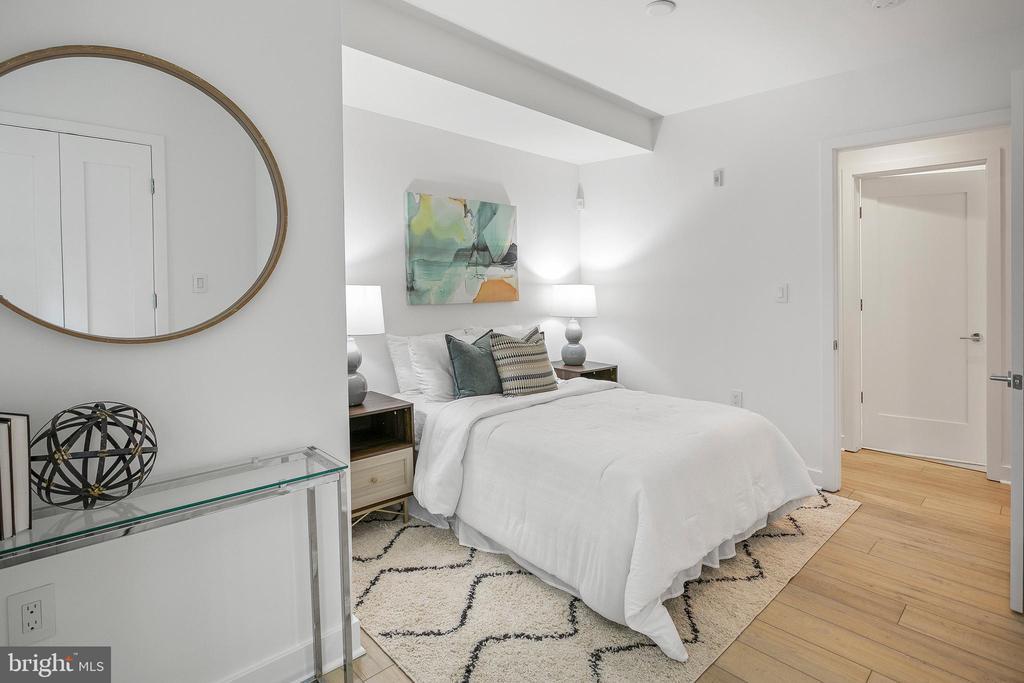 Welcome to 11 | Q, a boutique luxury condominium, in Logan Circle. Unit 103 is a rare corner unit with ample natural light and is on the market for the first time since 2019. This spacious and bright two bedroom, two bath features high-end finishes throughout, 9-ft ceilings, and private outdoor space. Modern touches are everywhere you look from the wide-plank flooring, to stainless steel appliances, custom cabinetry, and quartz counters. The serene color palette, custom window treatments, and recessed lighting add elegance to the open floor plan, which is accessible through a convenient private entrance. Both the living and dining areas feature architectural insets that make the spaces feel more defined. There is an additional nook that could be used as an in-home office. The modern kitchen features an expansive island with ample seating and cabinet space. The primary bedroom includes an en-suite bathroom with double vanity and walk-in shower and large closet for plenty of storage. Bedroom two offers a closet with double doors, and access to the second full bathroom. In-unit laundry completes this perfect package. 11 | Q, built in 2019, features low condo fees and is pet-friendly. Located on coveted Q Street, NW which is a one way tree-lined street. Metro is less than 0.5 miles away, and the park is only one short block. Enjoy close proximity to Whole Foods, Le Diplomate, and some of the best restaurants and shops in the city.
