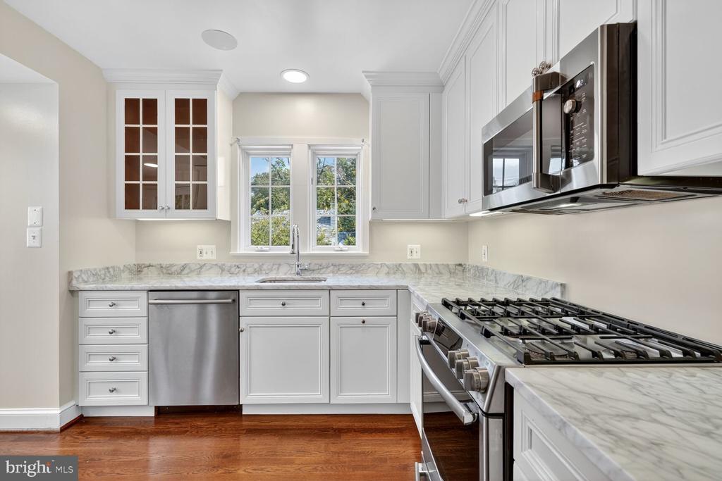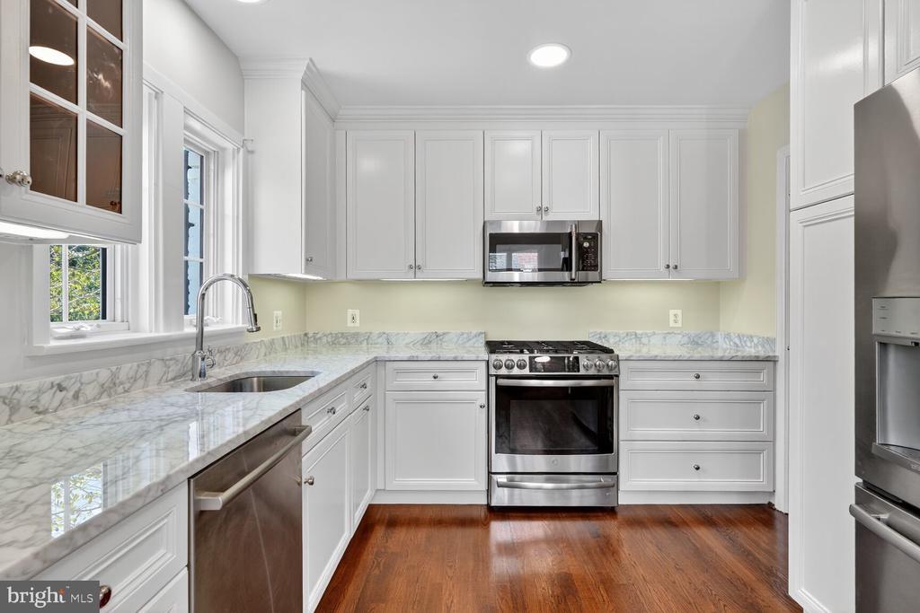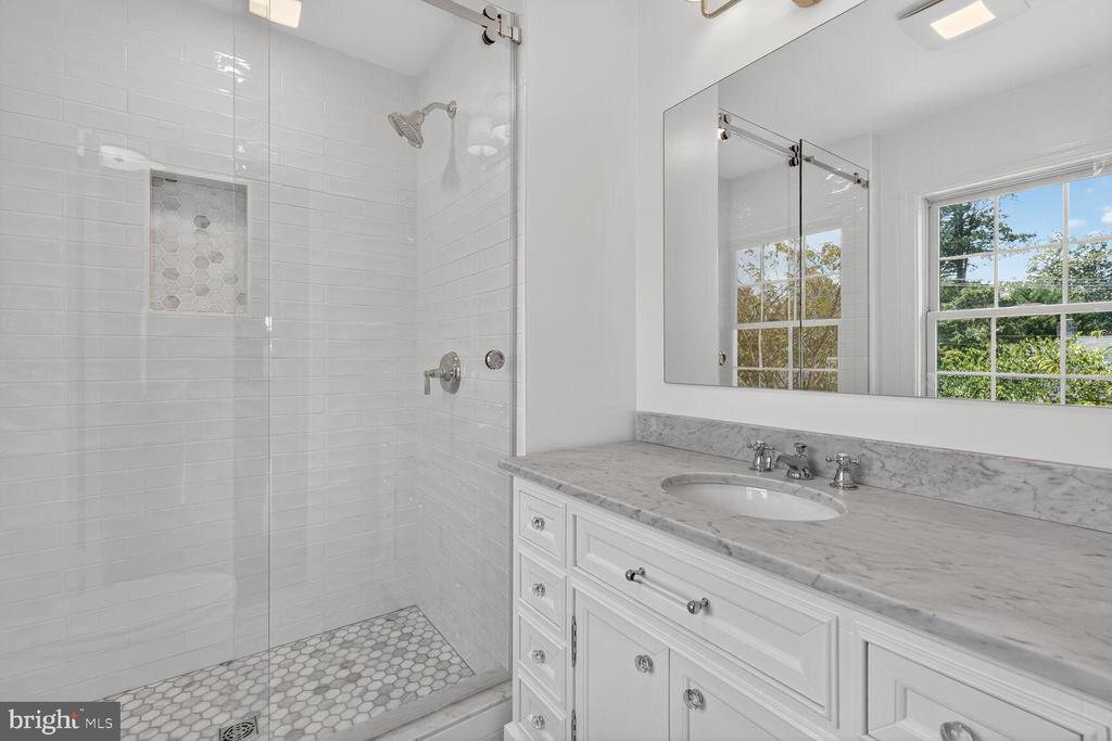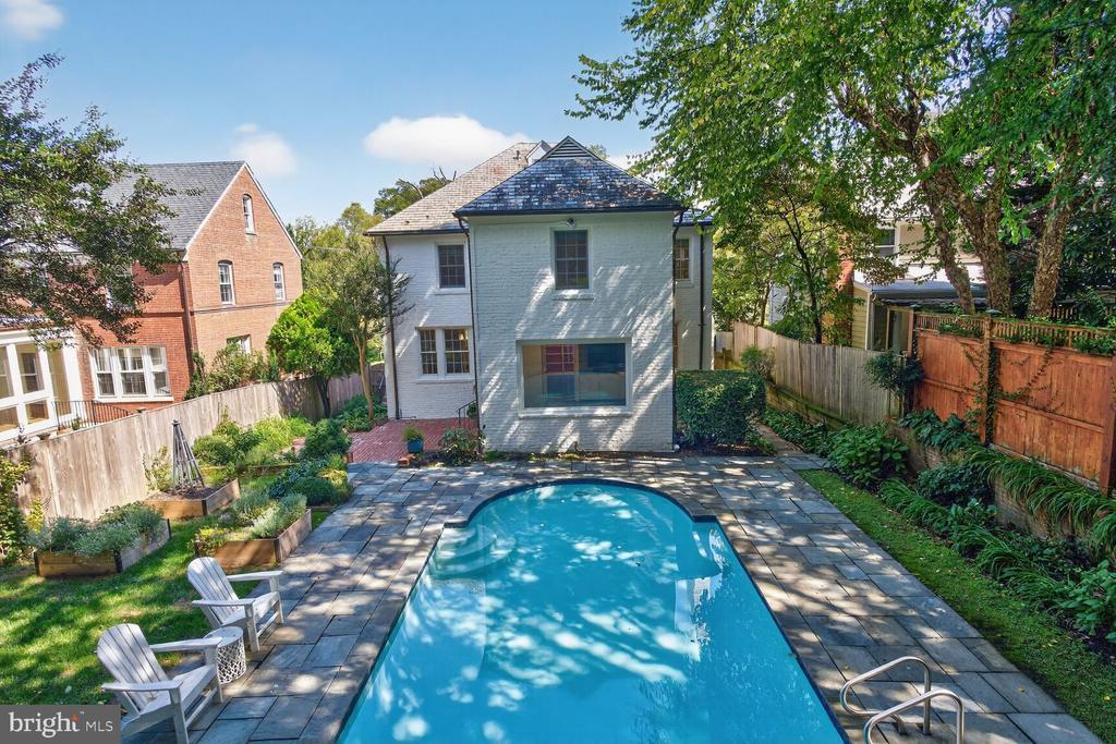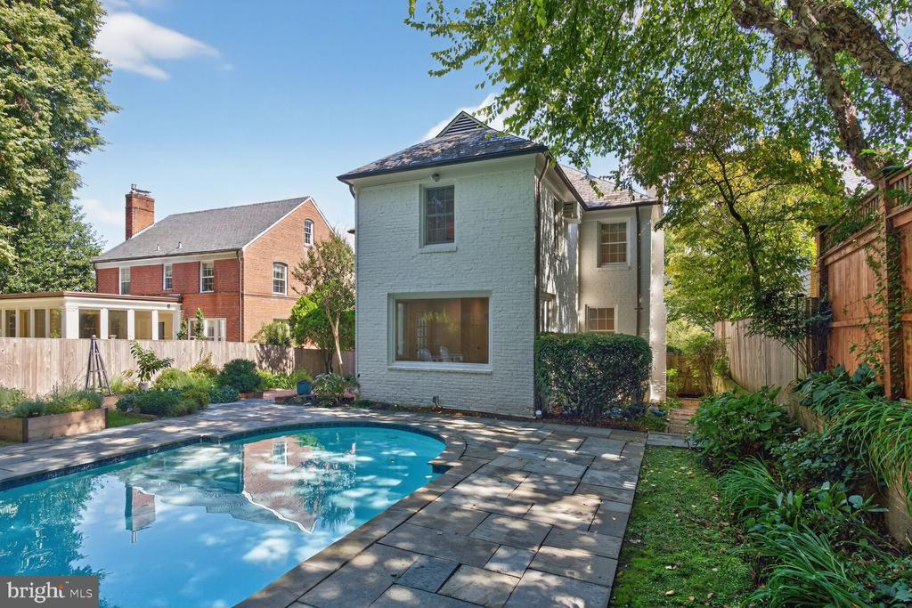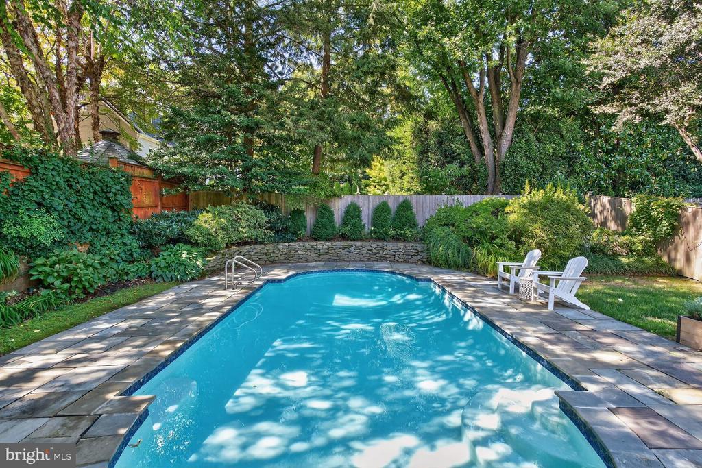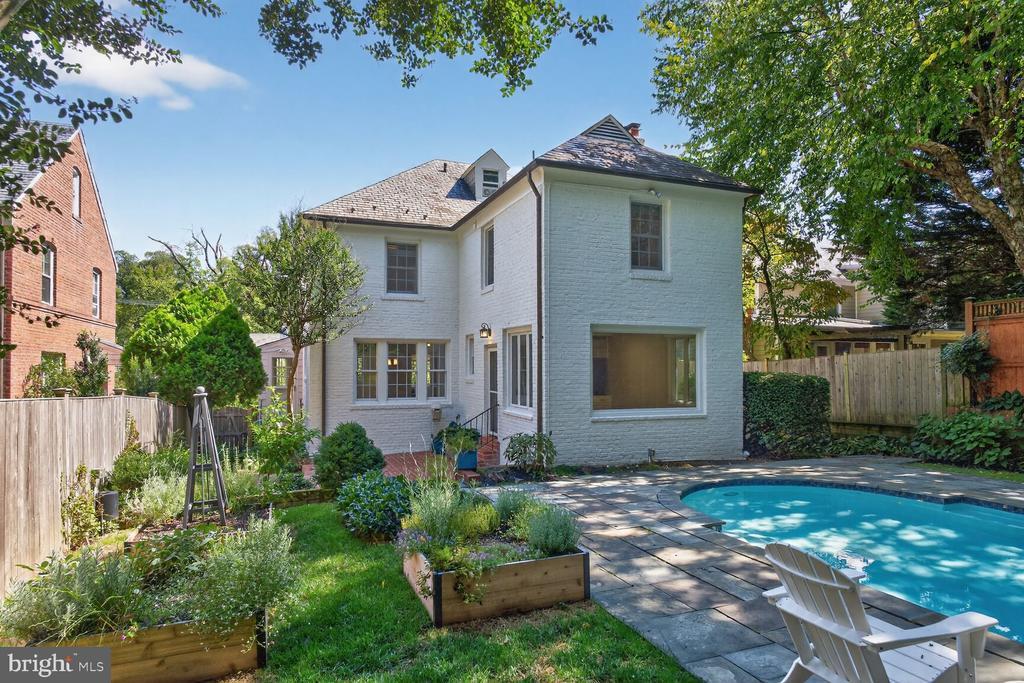 Elegant Spring Valley Colonial with Pool & Gardens: Fantastic four bedroom colonial in the prestigious Spring Valley neighborhood. Spanning 3,025 square feet across three thoughtfully designed levels, this exceptional home blends classic character with modern updates. Enter through the gracious foyer into a traditional layout featuring a living room with fireplace, formal dining room, and library with custom built-ins. The recently updated kitchen showcases beautiful marble countertops, premium stainless steel appliances, and gleaming new hardwood floors. The second floor has three generously sized guest bedrooms sharing a full bath, plus an expansive primary suite. The primary bedroom features a luxurious newly updated bathroom with striking hexagon marble flooring, classic subway tile, and an elegant glass-enclosed shower. The lower level provides features a spacious recreation room, half bath and a separate shower. Step outside to your private backyard featuring a large swimming pool, professionally landscaped gardens, and charming brick terraces ideal for outdoor dining and entertaining. The property also has a garage and a driveway for two cars. This beautiful home offers the perfect combination of Spring Valley's coveted location, timeless architecture, and modern amenities.