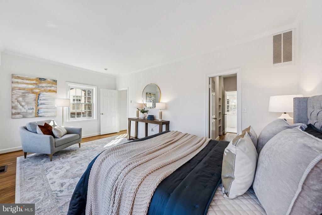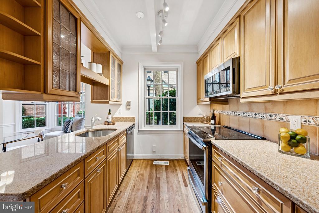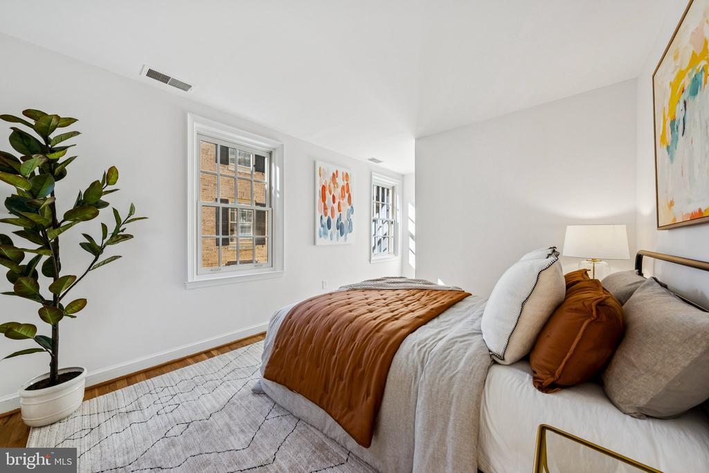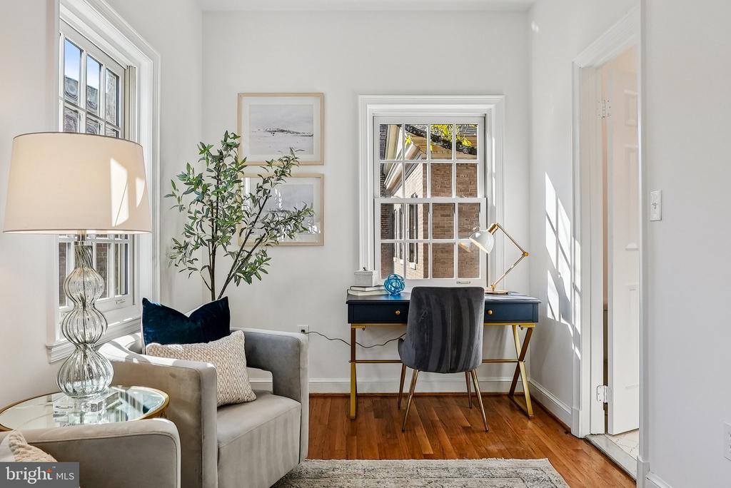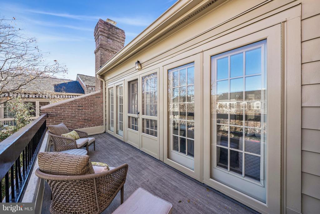 Lovingly-maintained end-row "Decatur" model at perennially popular gated community Westover Place in Wesley Heights, held by same family for over 30 years! This home is flooded with fabulous light on all three sides. Recent updates include refinished hardwood floors, new suite of GE Profile stainless steel appliances, a brand new HVAC system (2025), fresh paint, new light fixtures, new LVP flooring in lower level. Upon entry, you are welcomed by a graciously-proportioned step-down living room with wood burning fireplace with marble surround with two sets of glass French doors leading to a large, private fenced bluestone patio. The updated kitchen with new stainless appliances and silestone counters is open to the warm & inviting dining room which enjoys bright light through a bay window. A powder room & storage closet are present on main level. Second level offers two generous bedrooms with a dual-entry bath and ample closet space. The main bedroom suite occupies the entire third level with a grand bedroom with private balcony overlooking mature trees. A large walk in closet offers exceptional storage. Spacious main bathroom features tub/shower combo. A private chamber adjacent to the bedroom can be purposed as a sitting room, home office or art studio. The lower level offers a spacious utility room with washer/dryer and plenty of storage as well as a finished den perfect for a media room or flex bedroom as well as a cedar closet and another full bathroom. Westover Place is a pet-friendly gated community with 24/7 security and surveillance cameras. Each residence has an assigned parking space. Guest parking spaces are available on a first-come basis. This professionally-landscaped community has frequent events (coffees, Halloween parades, ice cream trucks, holiday celebrations). Snow shoveling included in HOA fee. Steps to convenient restaurants and retail - Chef Geoff's, Wagshal's, Al Dente, Starbucks, Walgreens, Ace Beverage, Core Strength, medical offices and more. Coveted location is convenient to universities, hospitals, DCA, I-495, Bethesda and downtown DC.