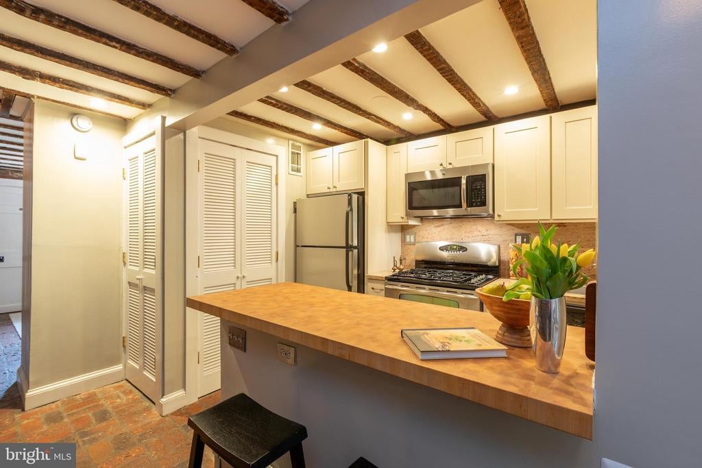 ****** PRICE IMPROVEMENT ***** Quintessential Eastern Market charmer oozing with historical details and original character circa mid-1800s. Impeccably restored with original exposed wood cross beams, brick floors and walls, large windows, original hardwood floors, multiple fireplaces, and a recently renovated bath and kitchen. Escape the hustle and bustle of DC life in the gorgeous rear garden complete with ponds and beautiful trees that lead to a detached 1-car garage, freshly painted, new roof/electric - a blank canvas for more (e.g., separate ADU!). Three gracious levels with a bonus den/nursery/walk-in just off the primary bedroom and storage galore in the attic. A must see and a perfect fit for the history-loving home buyer. Located in the heart of Eastern Market - shopping, dining, transportation options are boundless. Just steps from Marion Park.