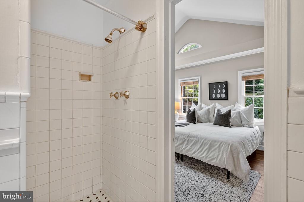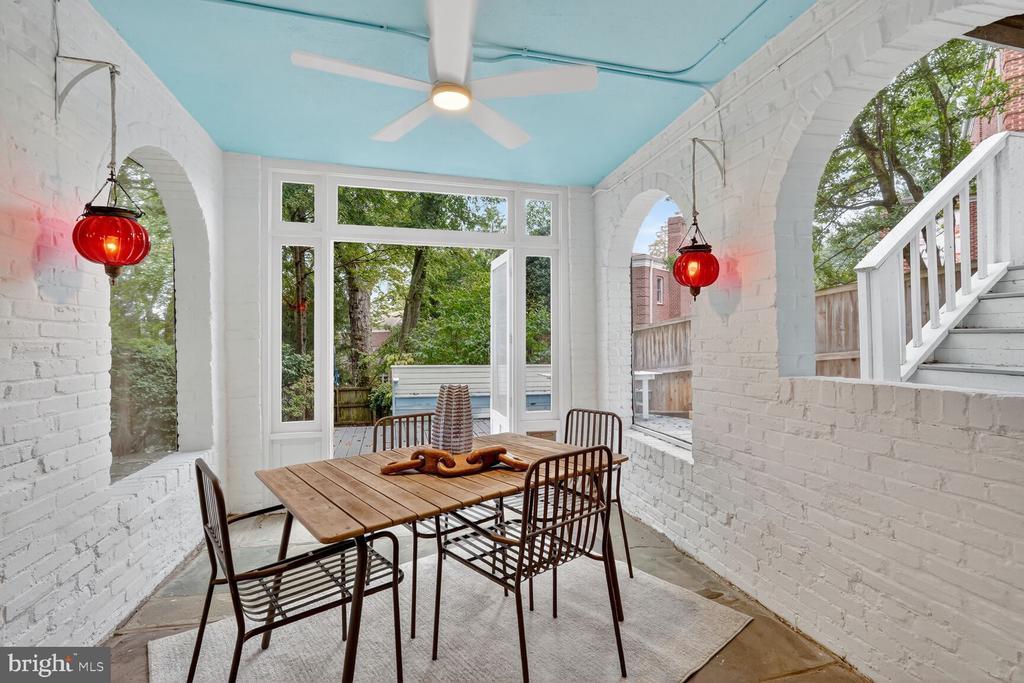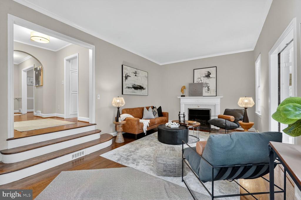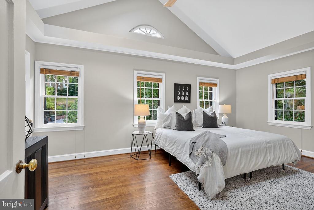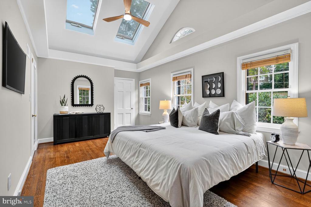 Classic storybook 1941 Federal with nearly 2600 sq ft of charming living spaces! Wonderful chef’s kitchen with good counter & cabinet space and an open breakfast or dining area flooded with light from large bay window. Step down a few steps a spacious living room with high ceilings which leads out to a wonderful 3 sided windowed sun room flooded with light! There is a powder room and access directly into the garage as well. Upstairs there is a spacious and dramatic primary suite with skylit vaulted ceilings and an en-suite bath, 2 additional well sized bedrooms and a full hall bath! The basement provides an optional 4th bedroom guest suite or home office/den with a full bath, a large laundry & utility room, and a grand family room with a wood-burning fireplace and access to a screened 3 season porch leading to a grand party deck & rear yard! Other fine features include warm hardwood floors, high ceilings, a quite cul-de-sac location, and easy access to all our nation’s Capitol has to offer! Solar cuts electricity to under $50/mo. on average!!! A rare find for under 1.5 million in the sought after Berkeley subdivision!