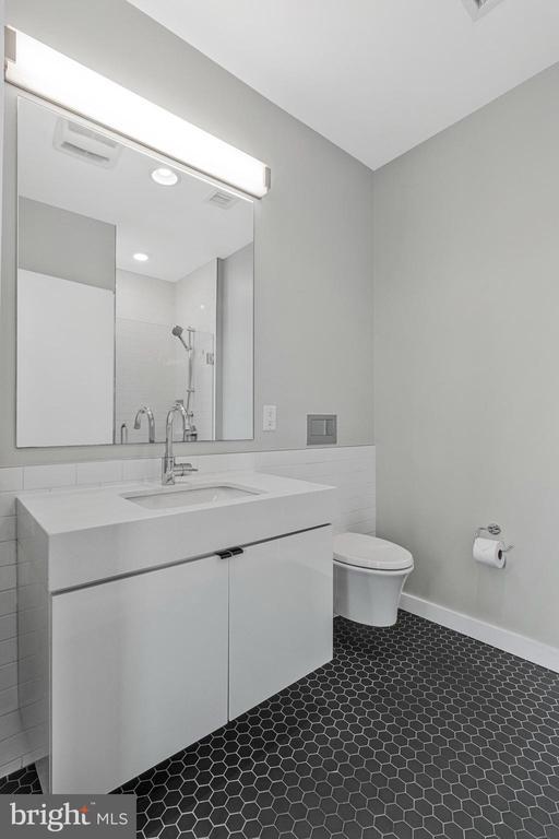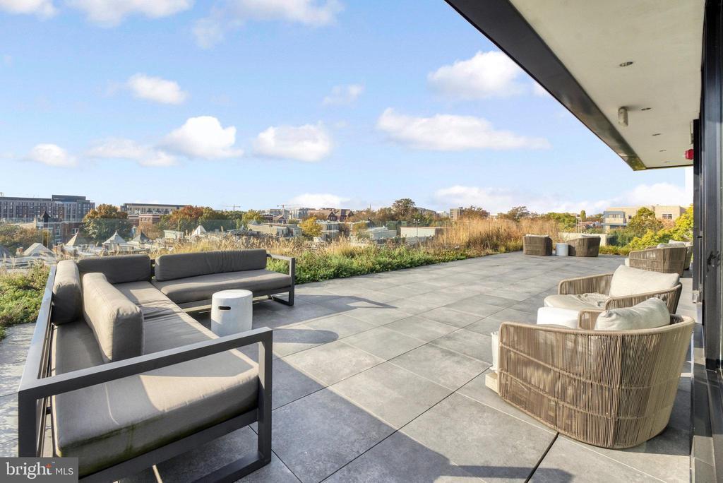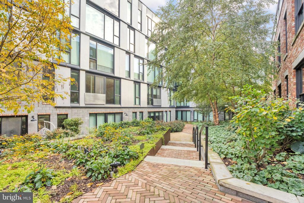 Welcome to Chapman Stables! This beautiful building is listed on the National Register of Historic Places and the DC Inventory of Historic Sites and was completely renovated in 2018 to become a stunningly beautiful urban oasis. Complete with exposed brick and iron accents highlighting it's history, eco friendly green roof, manicured courtyard, and luxurious rooftop terrace with community lounge and kitchen. Step inside this secure building and you are greeted by the friendly on-site management and a trendy and inviting lobby with soaring ceilings and views to the courtyard. This modern gem features an open floor plan, wide plank hardwood floors, high ceilings and floor to ceiling windows with custom window dressings. Incredible natural light keeps the home open and airy. The kitchen features sleek high gloss cabinetry, quartz countertops and stainless steel Bosch appliances. In-unit laundry is hidden behind a custom feature wood plank door. The bedroom has a step-in closet with custom organization and a spa-like en-suite bathroom. Set in the heart of Truxton Circle and blocks to the NoMa Metro, visit incredible restaurants and experience all DC has to offer. Chapman Stables is a true blend of modern convenience and historic charm, creating a city retreat with soul.