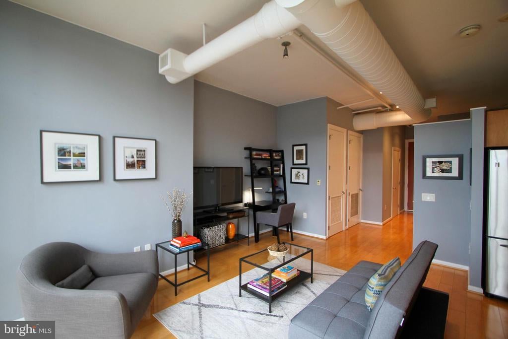 Loft-Style 1BR with Stunning Views in the Heart of Chinatown Experience vibrant city living in this modern 700 sq. ft. loft-style one-bedroom, one-bath residence, perfectly located in the dynamic Chinatown neighborhood. With floor-to-ceiling windows offering sweeping city views, this home blends style, convenience, and comfort in one of DC’s most sought-after locations. Just steps from the Chinatown Metro station, you’ll enjoy unmatched access to groceries, dining, cafés, retail shopping, and lively beer gardens. For commuters, the underground entrance to I-395 on Massachusetts Ave NW is only moments away. Inside, the spacious living and dining area is bathed in natural light from expansive east-facing windows. A thoughtfully designed chef’s kitchen provides the perfect setting for culinary creations, while ample closet space helps keep your home organized and clutter-free. Residents of this secure, full-service building enjoy an expansive rooftop deck with panoramic views of the DC skyline, including the Washington Monument and July 4th fireworks. The building also features a fitness center, 24/7 front desk with secured entry, three elevators, and an in-unit washer and dryer. With its location on the 8th floor, this home offers both privacy and breathtaking perspectives of the city. Whether entertaining guests or enjoying quiet evenings, this condo provides the perfect backdrop for downtown living.