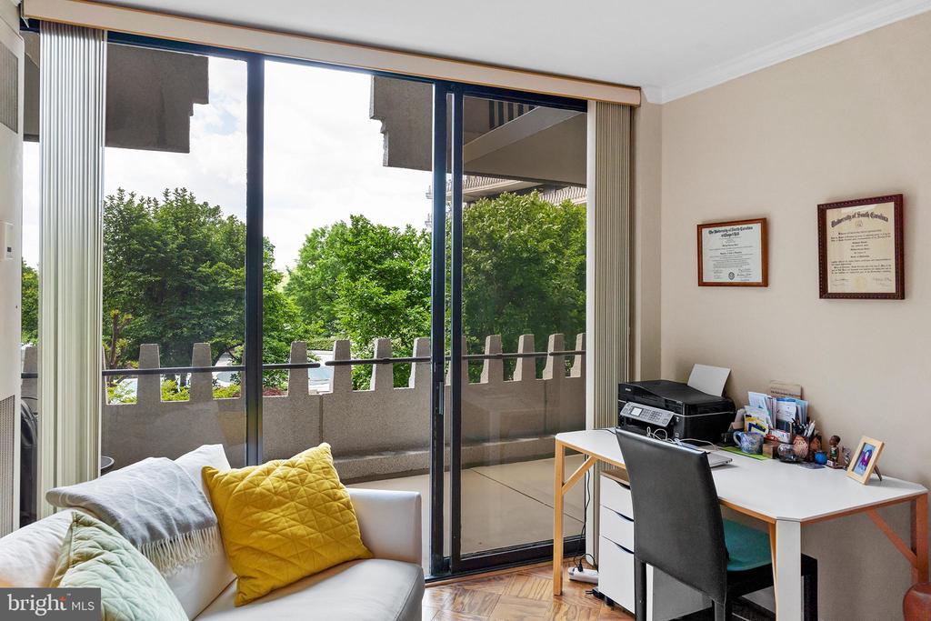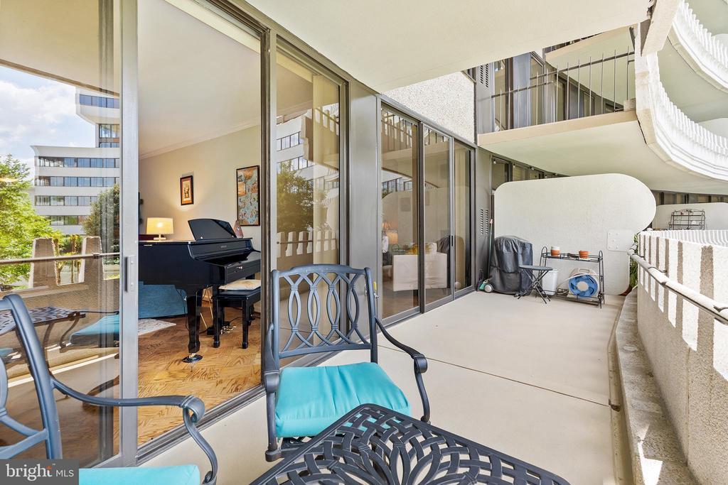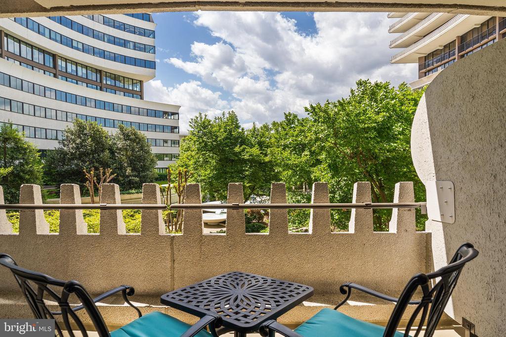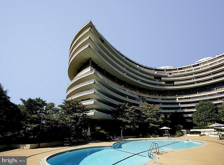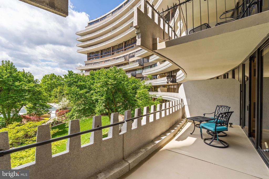 Large one bedroom with long and wide balcony. 941 sq ft interior in excellent condition. Beautiful and quiet setting with view of the Kennedy Center, gardens and fountains, and outdoor pool facing the Potomac river. Stunning view of the blossoms in spring! Gleaming parquet flooring. Large marble entry foyer. Living room even has space for a piano! Floor-to-ceiling windows & balcony along the entire perimeter. Entry onto the balcony from both the living room and bedroom. Refinished oak parquet floors throughout. Chef's kitchen with stainless steel appliances, deep stainless steel undermount sink, plentiful wood cabinetry, lots of counter space including breakfast bar, plus convenient service entrance. Bath with wide vanity, plenty of storage space, and walk-in shower with glass enclosure. Excellent closet space throughout, plus additional storage room. Garage parking space included! All inclusive Co-op fee includes property taxes, utilities, internet/cable, maintenance of HVAC, and underground garage parking. Watergate South amenities include 24-hour front desk service, salt-water outdoor pool & gas grill, new fitness center, pet spa, roof terrace, community room with kitchen, plus on-site shops and restaurants. Walking distance to the Kennedy Center, Georgetown Waterfront, Foggy Bottom Metro, Watergate Hotel & Spa, and restaurants.