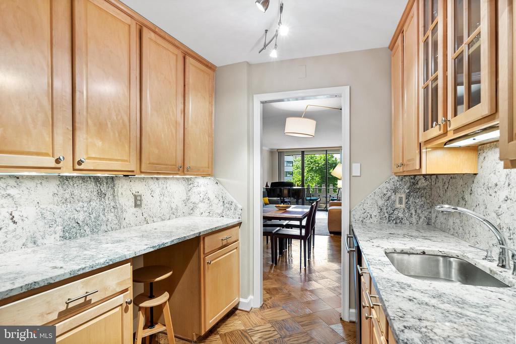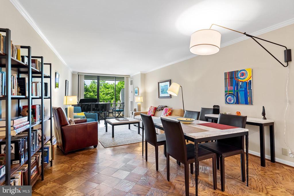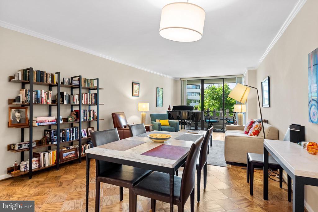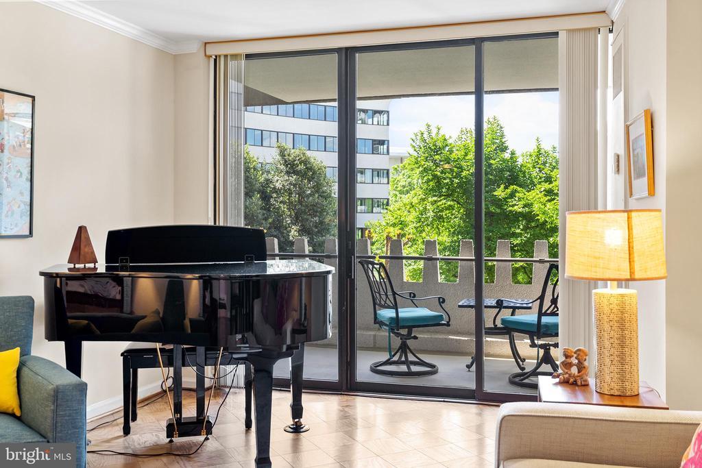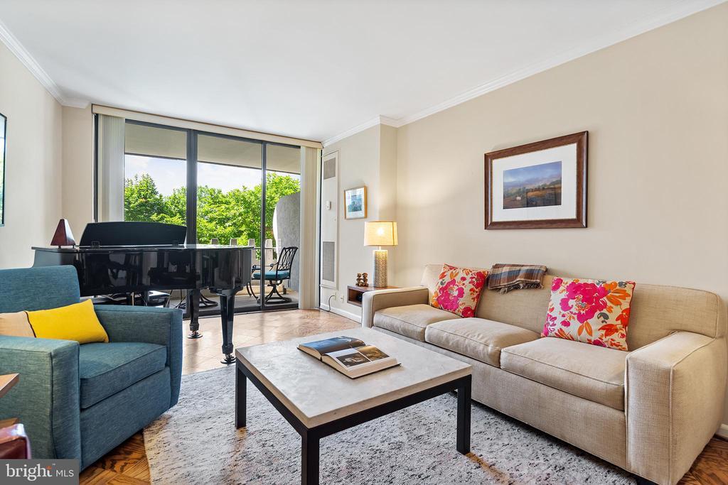 Large one bedroom with long and wide balcony. 941 sq ft interior in excellent condition. Beautiful and quiet setting with view of the Kennedy Center, gardens and fountains, and outdoor pool facing the Potomac river. Stunning view of the blossoms in spring! Gleaming parquet flooring. Large marble entry foyer. Living room even has space for a piano! Floor-to-ceiling windows & balcony along the entire perimeter. Entry onto the balcony from both the living room and bedroom. Refinished oak parquet floors throughout. Chef's kitchen with stainless steel appliances, deep stainless steel undermount sink, plentiful wood cabinetry, lots of counter space including breakfast bar, plus convenient service entrance. Bath with wide vanity, plenty of storage space, and walk-in shower with glass enclosure. Excellent closet space throughout, plus additional storage room. Garage parking space included! All inclusive Co-op fee includes property taxes, utilities, internet/cable, maintenance of HVAC, and underground garage parking. Watergate South amenities include 24-hour front desk service, salt-water outdoor pool & gas grill, new fitness center, pet spa, roof terrace, community room with kitchen, plus on-site shops and restaurants. Walking distance to the Kennedy Center, Georgetown Waterfront, Foggy Bottom Metro, Watergate Hotel & Spa, and restaurants.