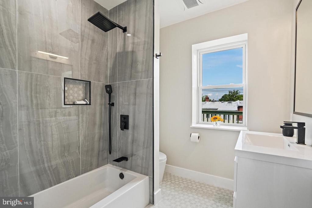 Solid investment in Columbia Heights/Petworth generating $8800/month rental income, tenant pays all utilities! Welcome to 719 Quebec Place NW, a breathtaking residence that exudes timeless charm and contemporary sophistication. This remarkable home offers an exceptional living experience with its impeccable design, over-sized doors, luxurious finishes, and thoughtfully curated spaces. The exterior showcases a harmonious blend of white and green stucco with elegant architectural details and large windows that flood the interior with natural light. Inside, you'll be greeted by an open and airy floor plan, accentuated by high ceilings, designer LED lighting fixtures, and gleaming earth friendly bamboo flooring that spans through-out the property. The living room features an elegant gas fireplace and generous proportions and abundant natural light, perfect for entertaining guests. The adjacent dining area seamlessly connects to the gourmet kitchen, boasting 42-inch cabinetry, top-of-the-line stainless steel appliances, an enormous center island with quartz countertops. The upper levels of the home feature an impressive layout, with a total of five well-appointed bedrooms and three full baths. The primary suite is a private retreat, offering it’s own private deck, a generous walk-in closet and a luxurious en-suite bathroom featuring a double floating vanity and soaking tub. The second bedroom on this level spans across the width of the entire building with multiple oversized south facing windows. There is a convenient full bath down the hall with rain shower and gleaming porcelain tiles. Three more bedrooms on the top floor are equally spacious and feature ample closet space, while the well-appointed bathroom exudes elegance and provides every modern convenience. On this level, there is also a walk-out deck with breathtaking Cathedral views. There is a fully finished lower-level apartment with private front and rear entrances featuring two bedrooms, full kitchen and a modern bathroom. A rear deck provides an idyllic setting for outdoor dining, relaxation, or hosting summer barbecues. The two private parking spaces offer convenient access home from the rear. This residence benefits from its prime location in Columbia Heights/Petworth neighborhoods which offer an array of amenities, including trendy restaurants, boutique shops, vibrant nightlife and easy access to public transportation (Just one short block to the Petworth metro station). With nearby parks, green spaces and community attractions, you'll enjoy a balanced urban lifestyle.
