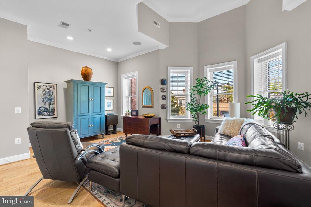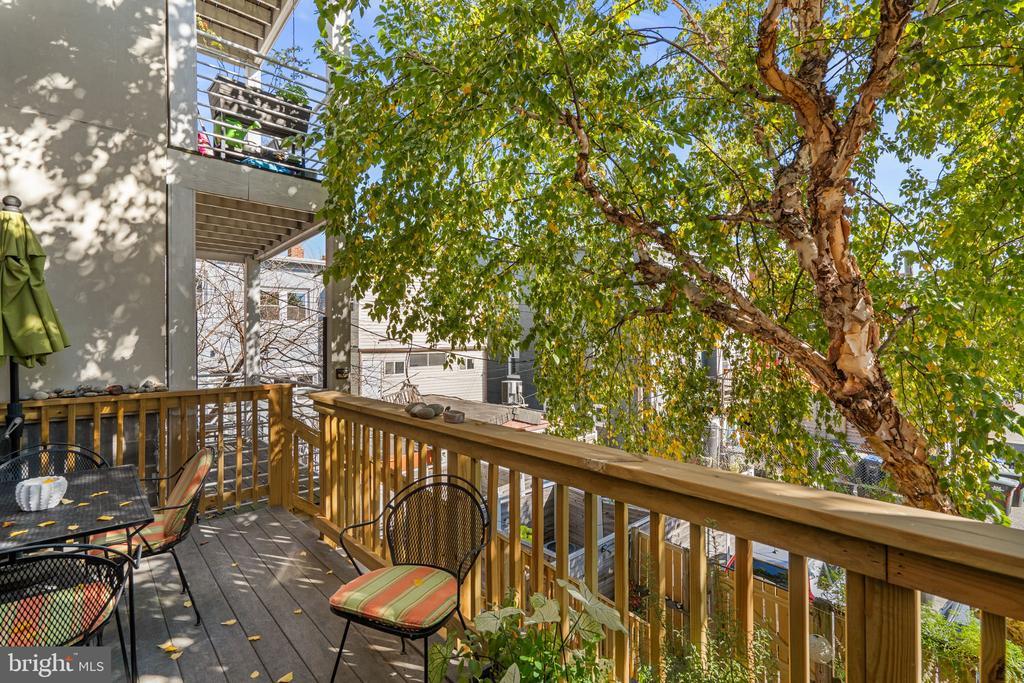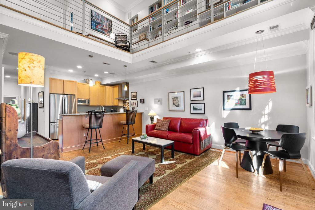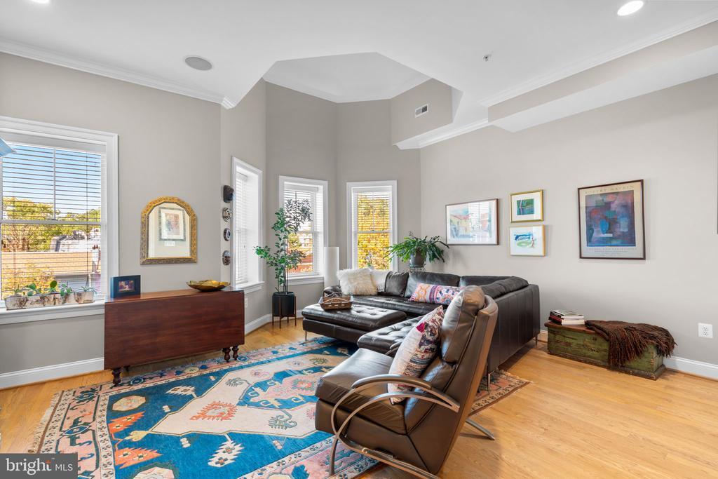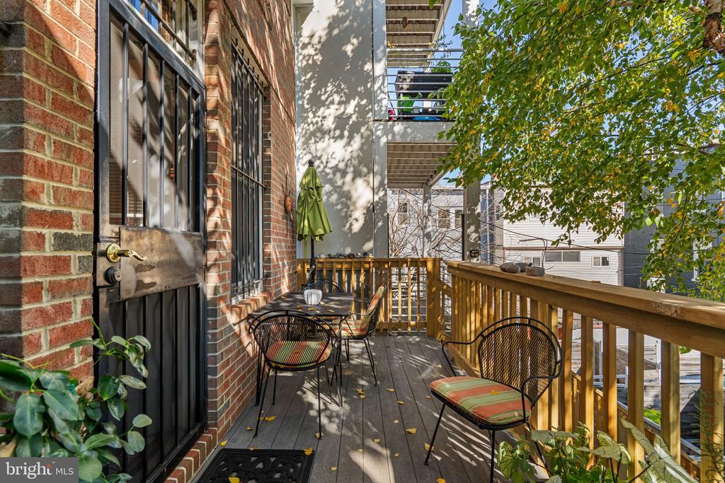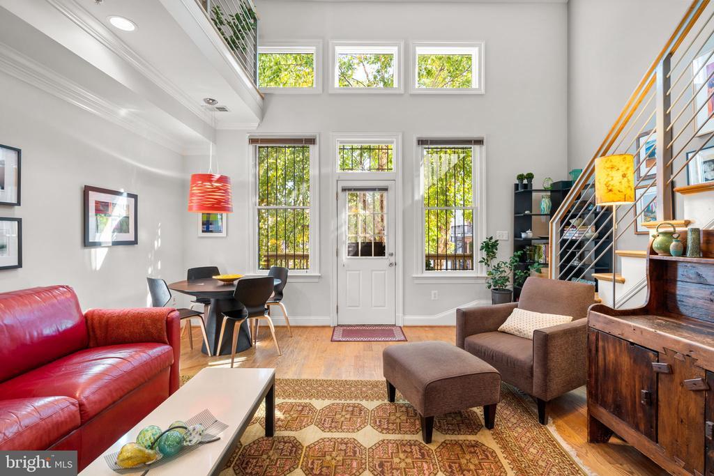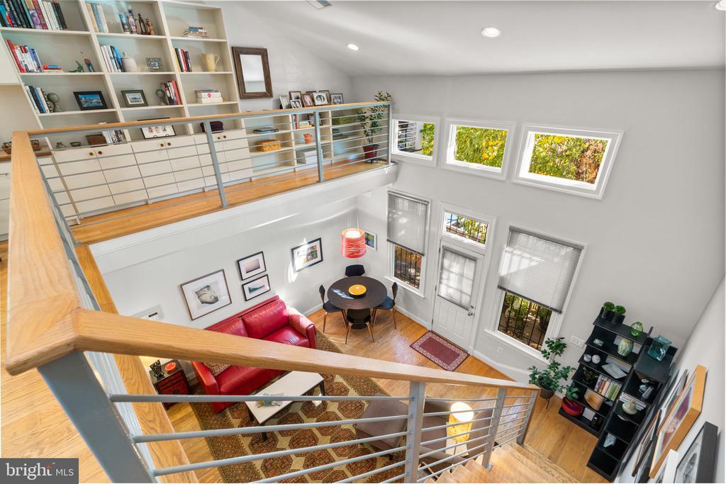 Welcome to 1831 1st Street NW #3, an exquisite two-level residence that blends the timeless character of early 1900s Victorian architecture with modern elegance. Perched on the upper two floors of a beautifully restored rowhome in the heart of Bloomingdale, this home sits at the vibrant crossroads where Truxton Circle, Eckington, and Bloomingdale meet, steps from beloved neighborhood gems like The Red Hen right across the street, Big Bear Café, and Boundary Stone. Enjoy easy access to Crispus Attucks Park, the Bloomingdale Farmers Market, and the nearby Shaw and Union Market areas. Inside, an open and expansive main level welcomes you with double-story ceilings and abundant natural light. The soaring living room, kitchen, and dining areas flow seamlessly together, with a striking mezzanine above that adds both volume and architectural charm. Hardwood floors run throughout, complemented by large windows and skylights that fill the home with a soft, warm glow. The main level includes a spacious front bedroom with an ensuite bath and the home’s signature turret, a beautiful reminder of its 1909 Victorian origins. A well-appointed powder room adds convenience, while the kitchen and living areas open to a newer composite & wood rear balcony with stairs leading to a peaceful shared garden and a private parking space. Upstairs, the second bedroom suite offers privacy and character, complete with a modern full bath and views of mature trees that create a tranquil retreat-like setting. The mezzanine is ideal as a reading nook, office, or artful overlook to the living area below. Every detail of this home has been carefully preserved and enhanced to capture the best of both eras, combining historic beauty with contemporary comfort. This is city living at its finest, where architecture, light, and location come together in perfect harmony.