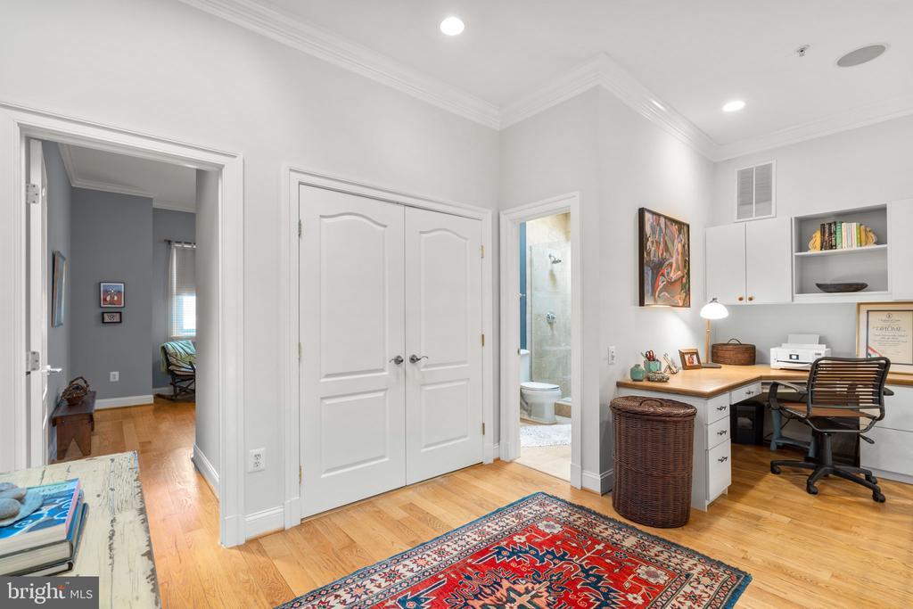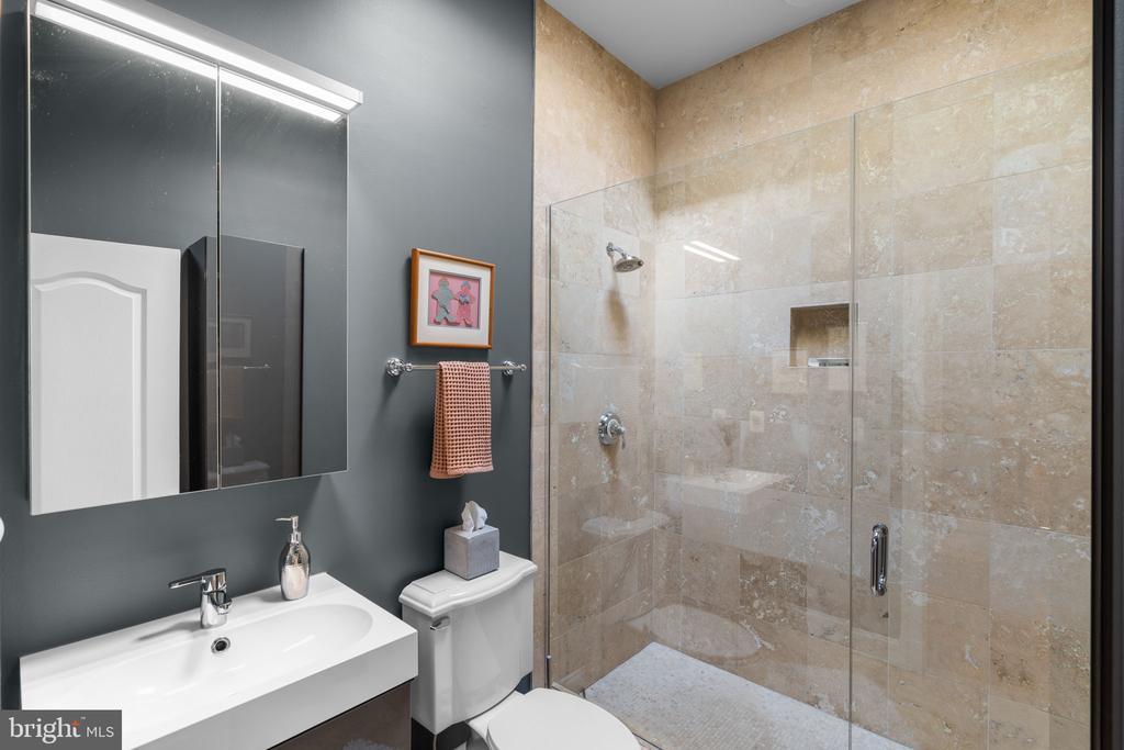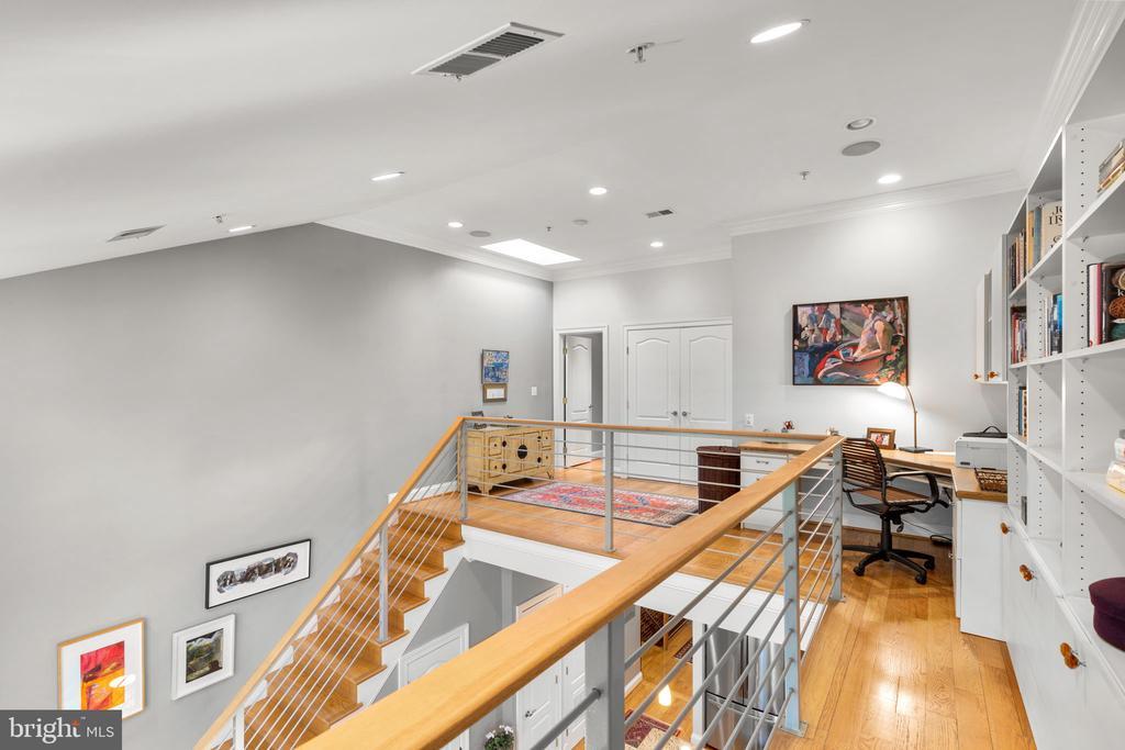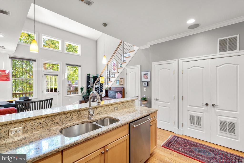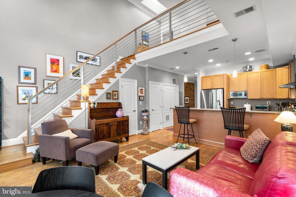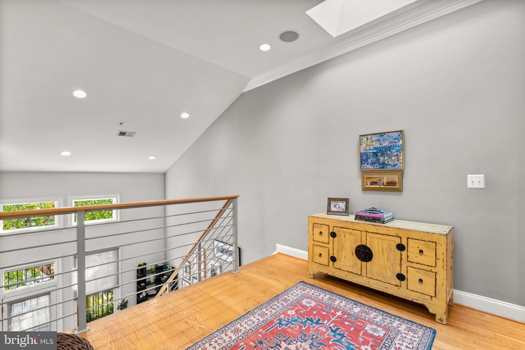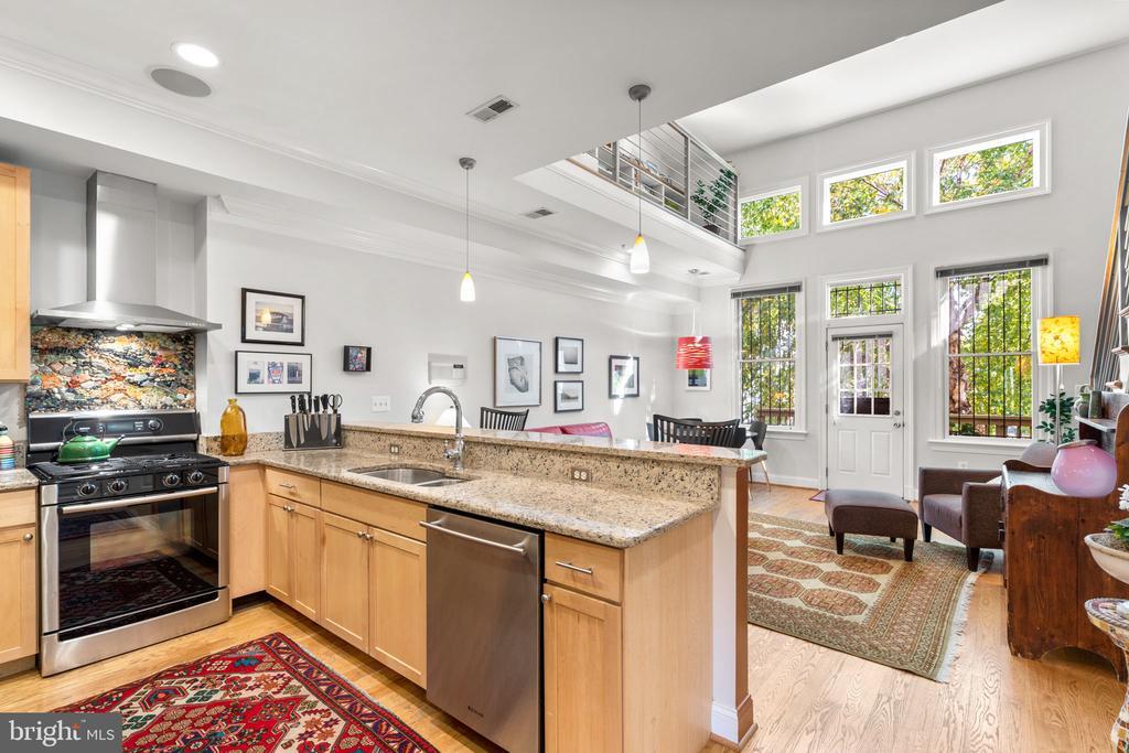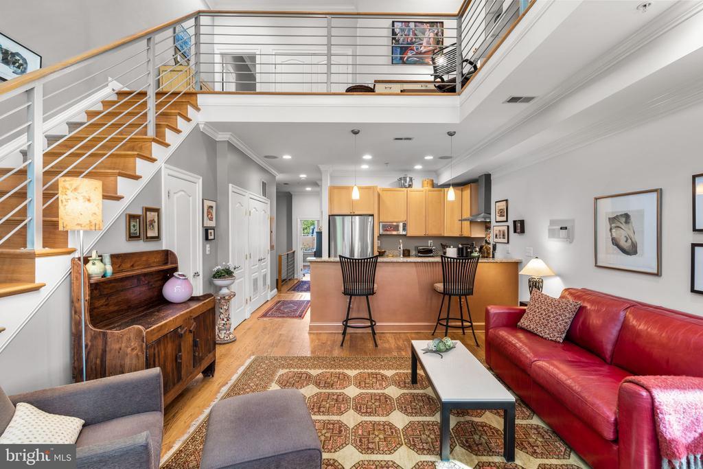 Welcome to 1831 1st Street NW #3, an exquisite two-level residence that blends the timeless character of early 1900s Victorian architecture with modern elegance. Perched on the upper two floors of a beautifully restored rowhome in the heart of Bloomingdale, this home sits at the vibrant crossroads where Truxton Circle, Eckington, and Bloomingdale meet, steps from beloved neighborhood gems like The Red Hen right across the street, Big Bear Café, and Boundary Stone. Enjoy easy access to Crispus Attucks Park, the Bloomingdale Farmers Market, and the nearby Shaw and Union Market areas. Inside, an open and expansive main level welcomes you with double-story ceilings and abundant natural light. The soaring living room, kitchen, and dining areas flow seamlessly together, with a striking mezzanine above that adds both volume and architectural charm. Hardwood floors run throughout, complemented by large windows and skylights that fill the home with a soft, warm glow. The main level includes a spacious front bedroom with an ensuite bath and the home’s signature turret, a beautiful reminder of its 1909 Victorian origins. A well-appointed powder room adds convenience, while the kitchen and living areas open to a newer composite & wood rear balcony with stairs leading to a peaceful shared garden and a private parking space. Upstairs, the second bedroom suite offers privacy and character, complete with a modern full bath and views of mature trees that create a tranquil retreat-like setting. The mezzanine is ideal as a reading nook, office, or artful overlook to the living area below. Every detail of this home has been carefully preserved and enhanced to capture the best of both eras, combining historic beauty with contemporary comfort. This is city living at its finest, where architecture, light, and location come together in perfect harmony.